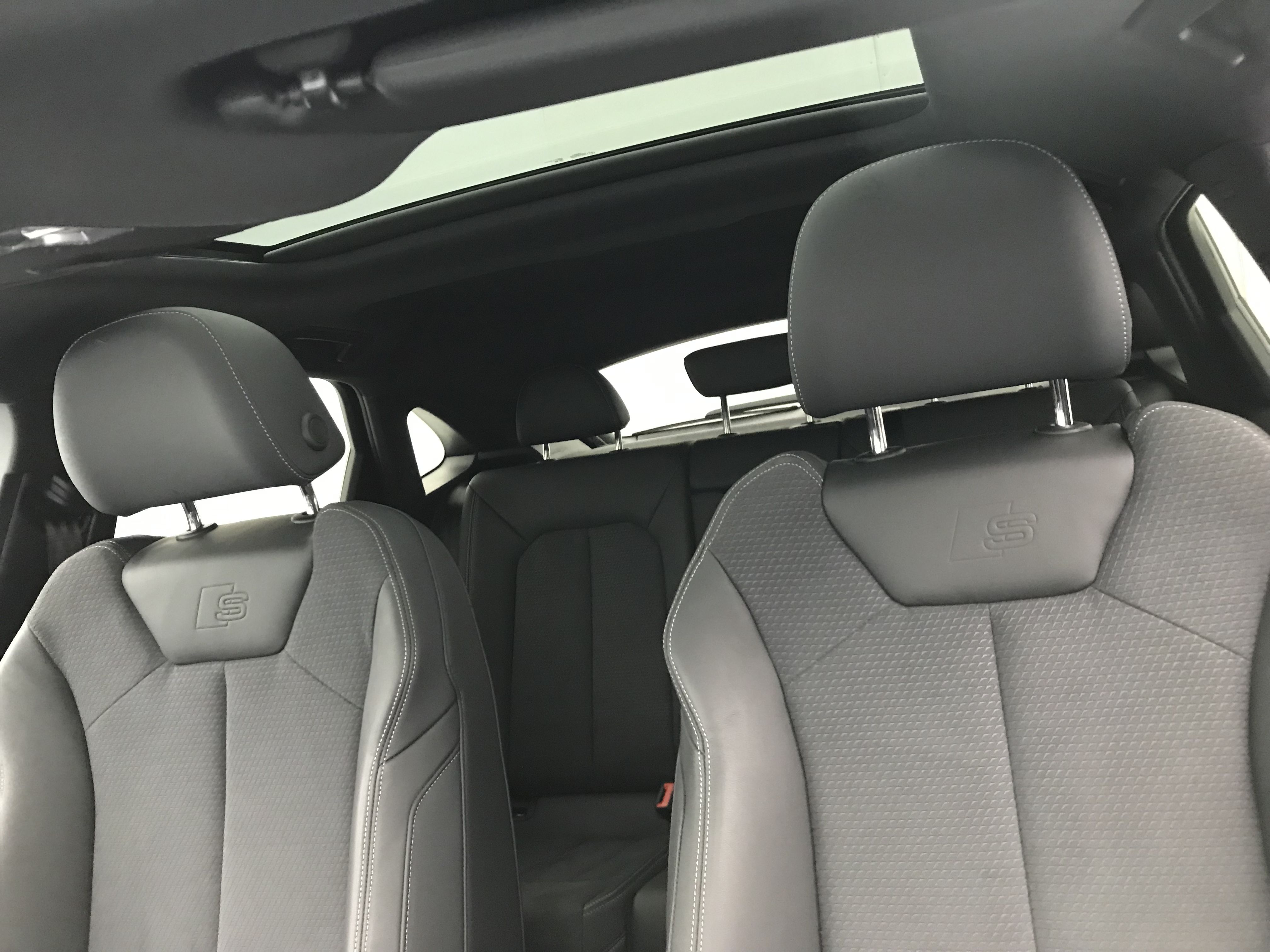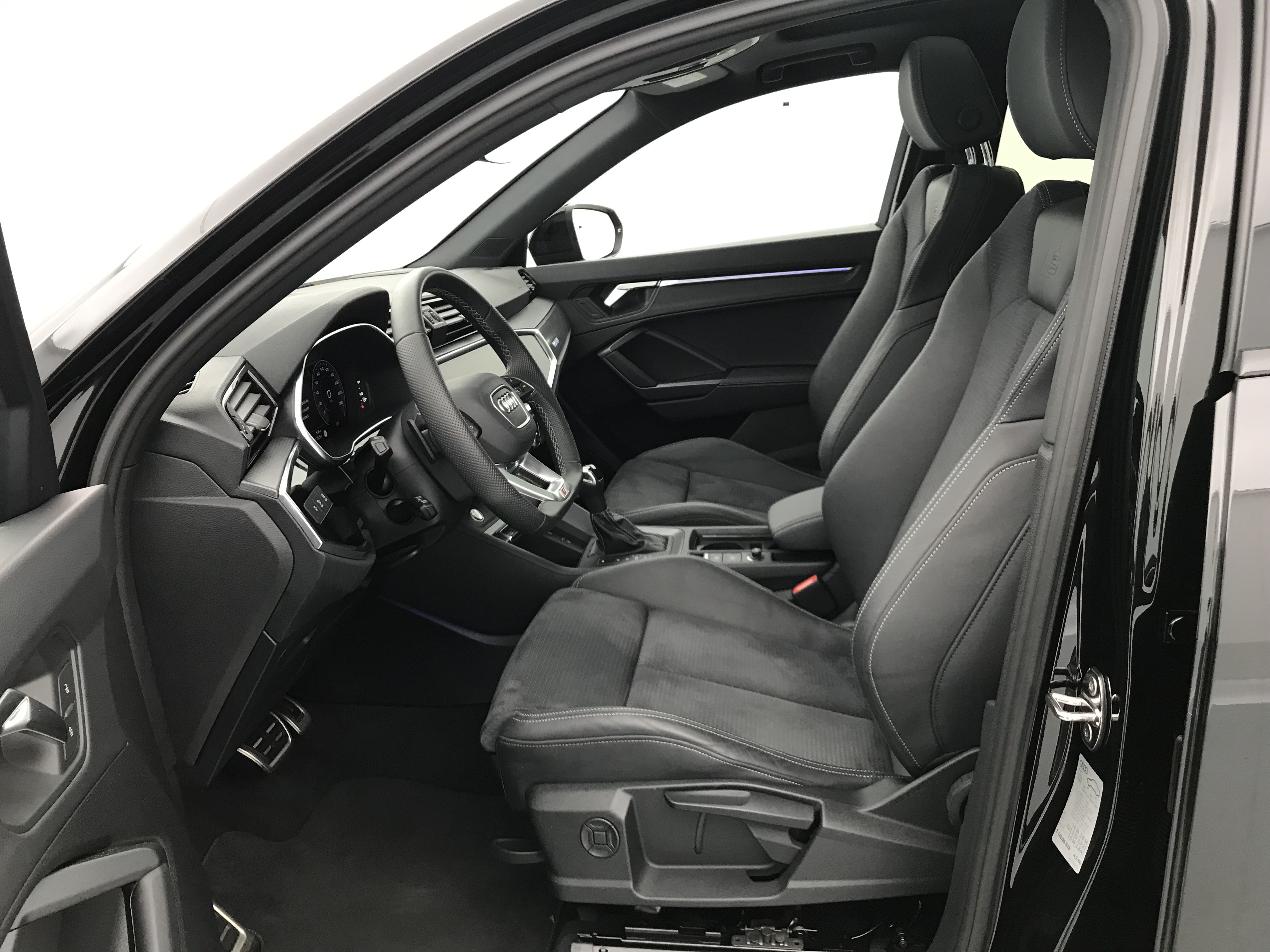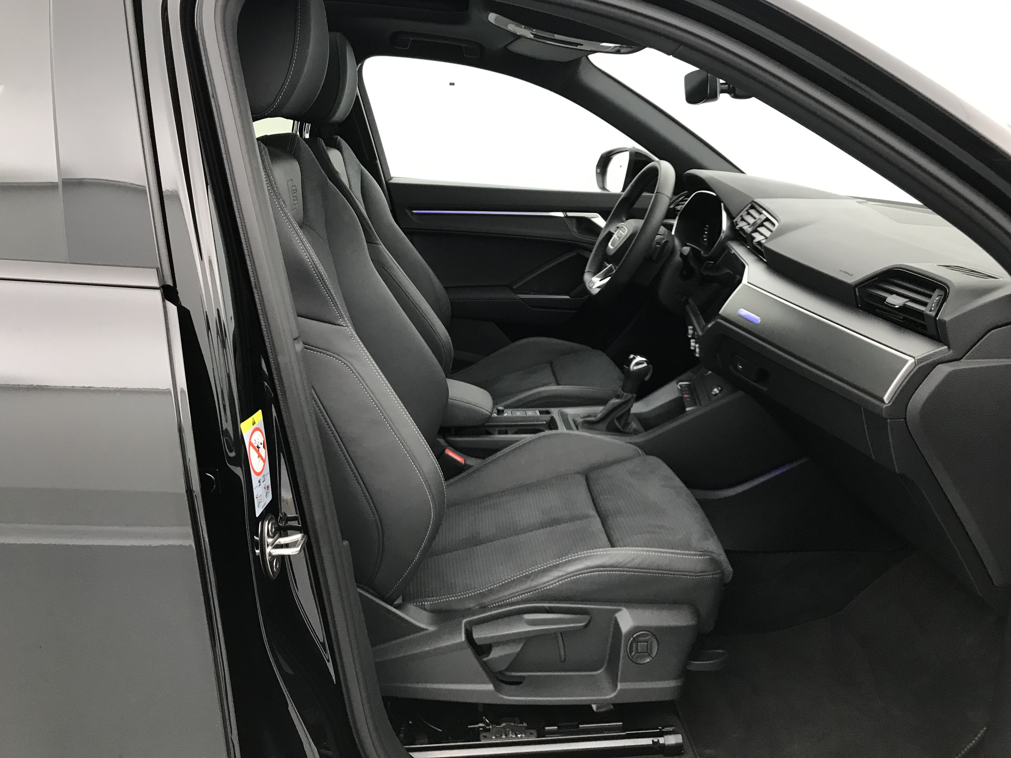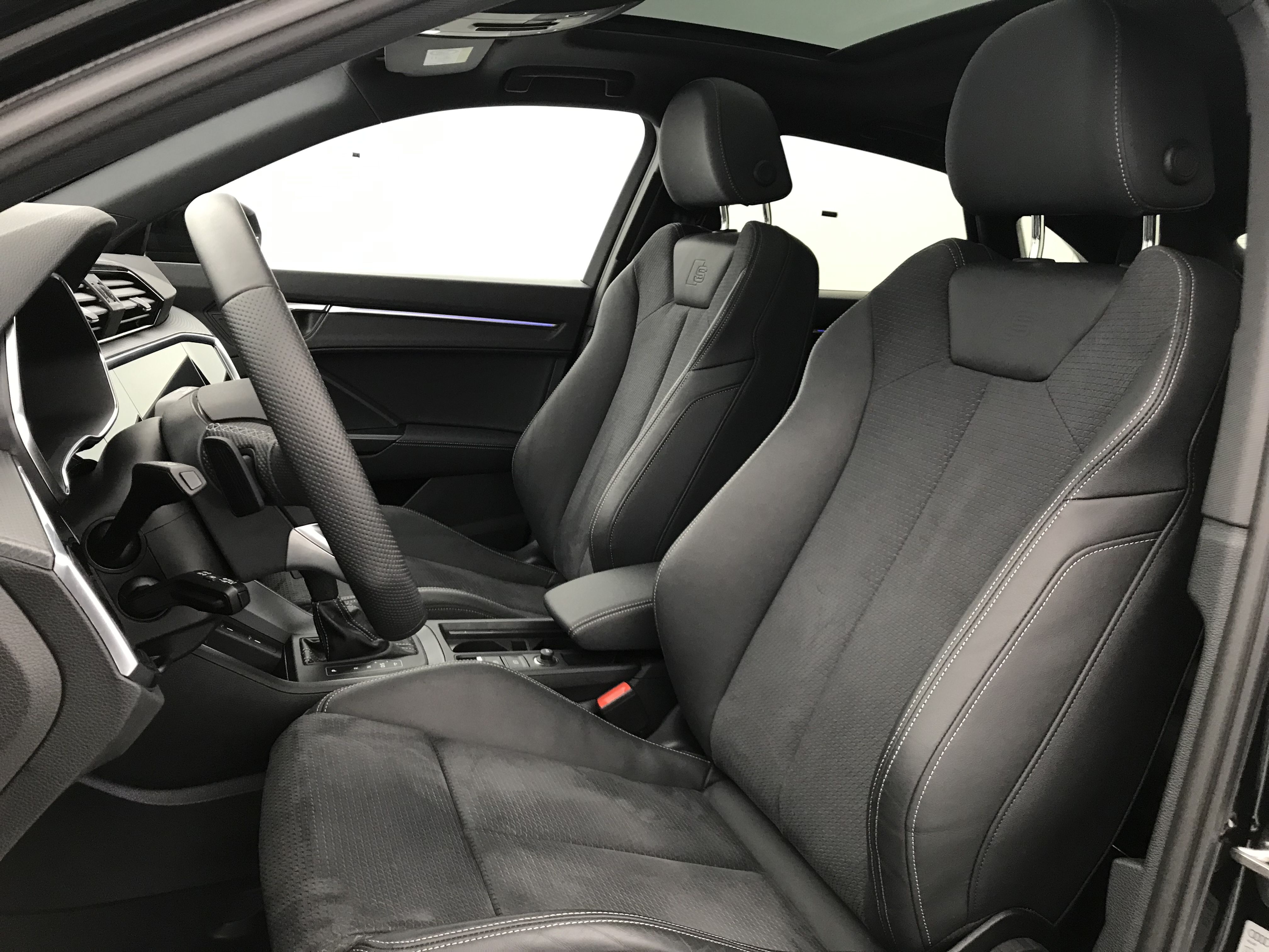 - Pack S line intérieur - Sièges Sport AV - Sellerie en tissu/matériaux synthétiques monopur 550 et estampillage S line sur le dossier des sièges AV - Frein à main avec surpiqûres contrastées