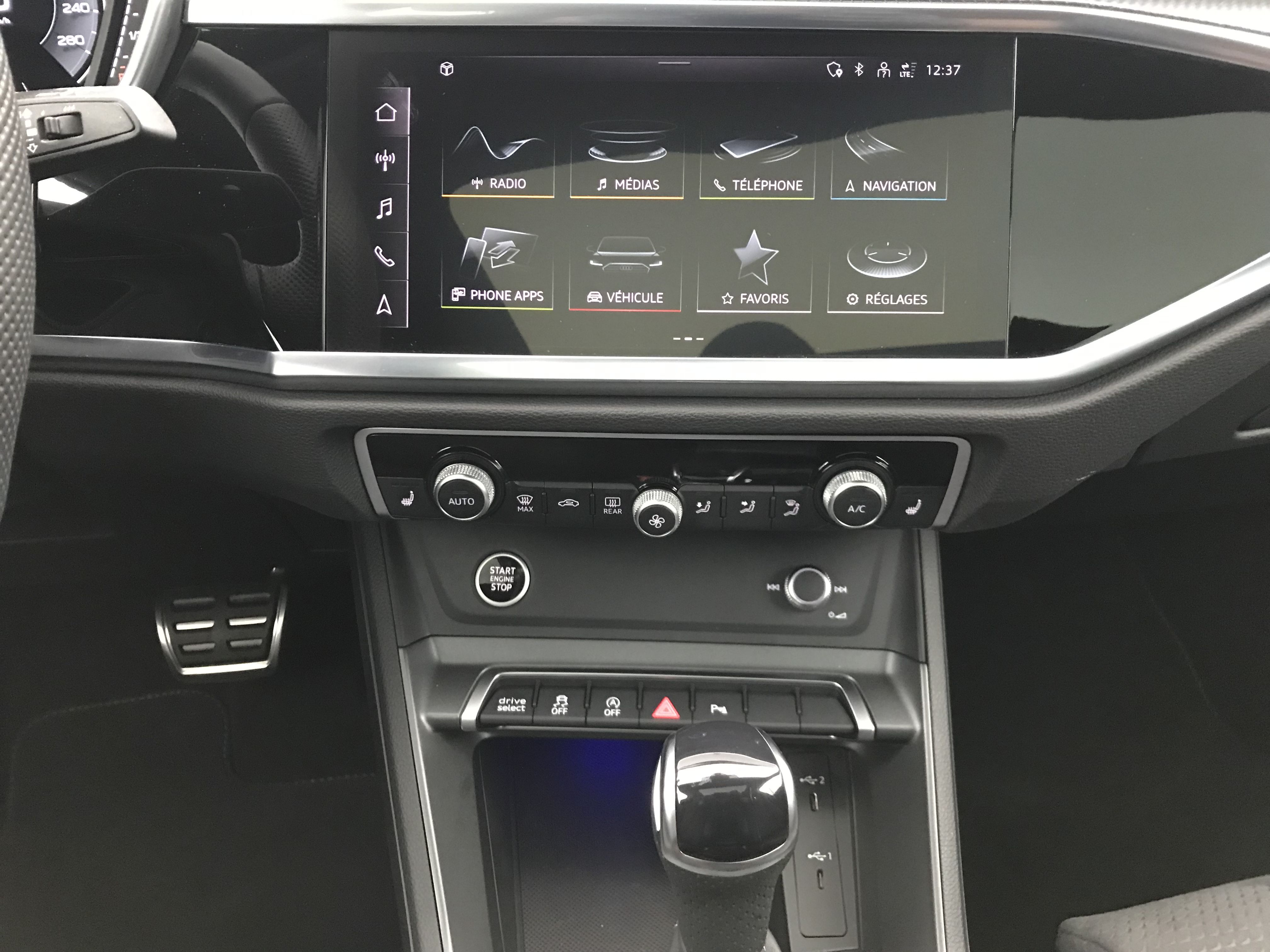 - 2 prises USB AR (type-C) et prise 12V dans la console centrale AR
