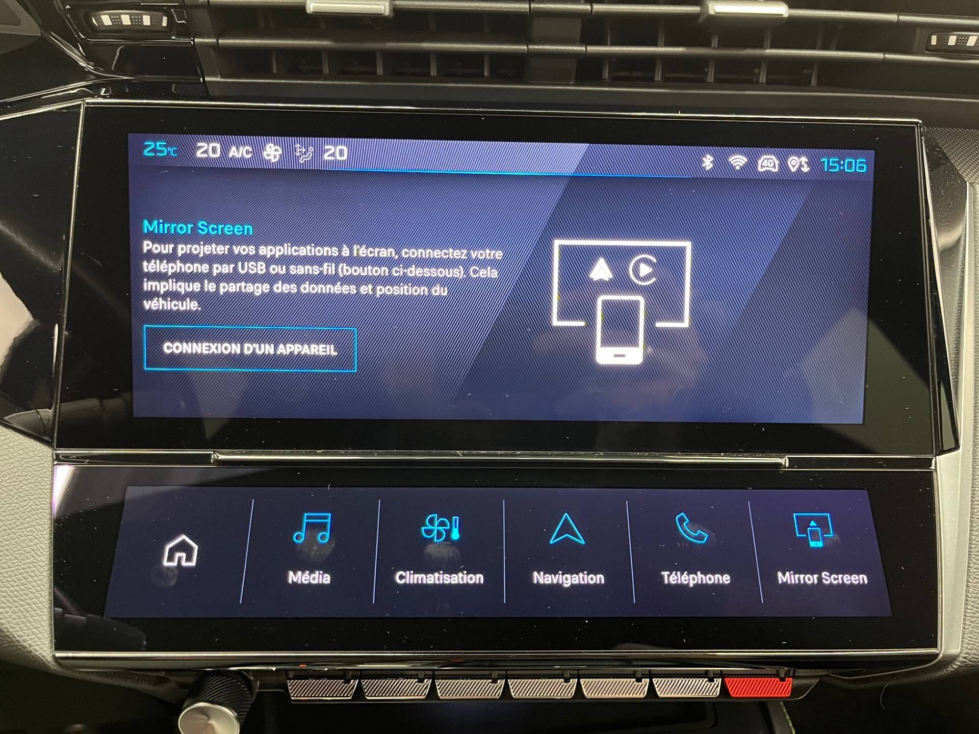 - Fonction Mirror Screen (Apple CarPlay/Android Auto) sans fil