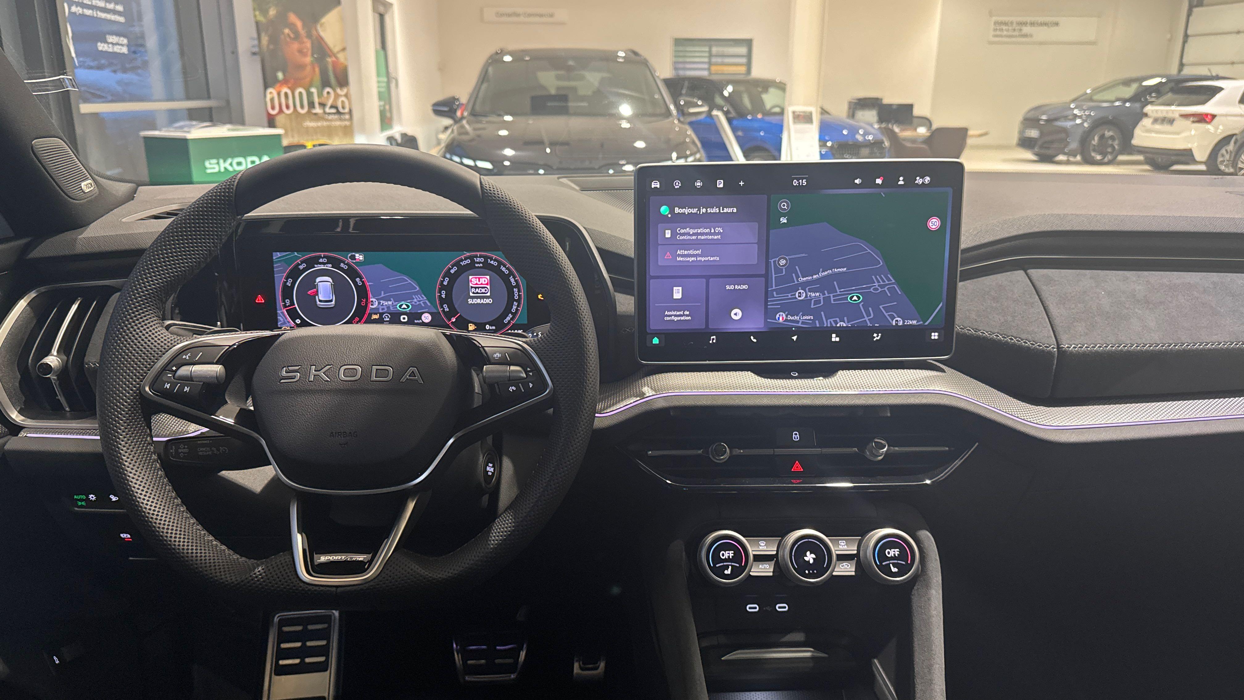 - Pack d'Ambiance Intérieur à LED incluant le logo d'accueil SKODA projeté sous les portes AV