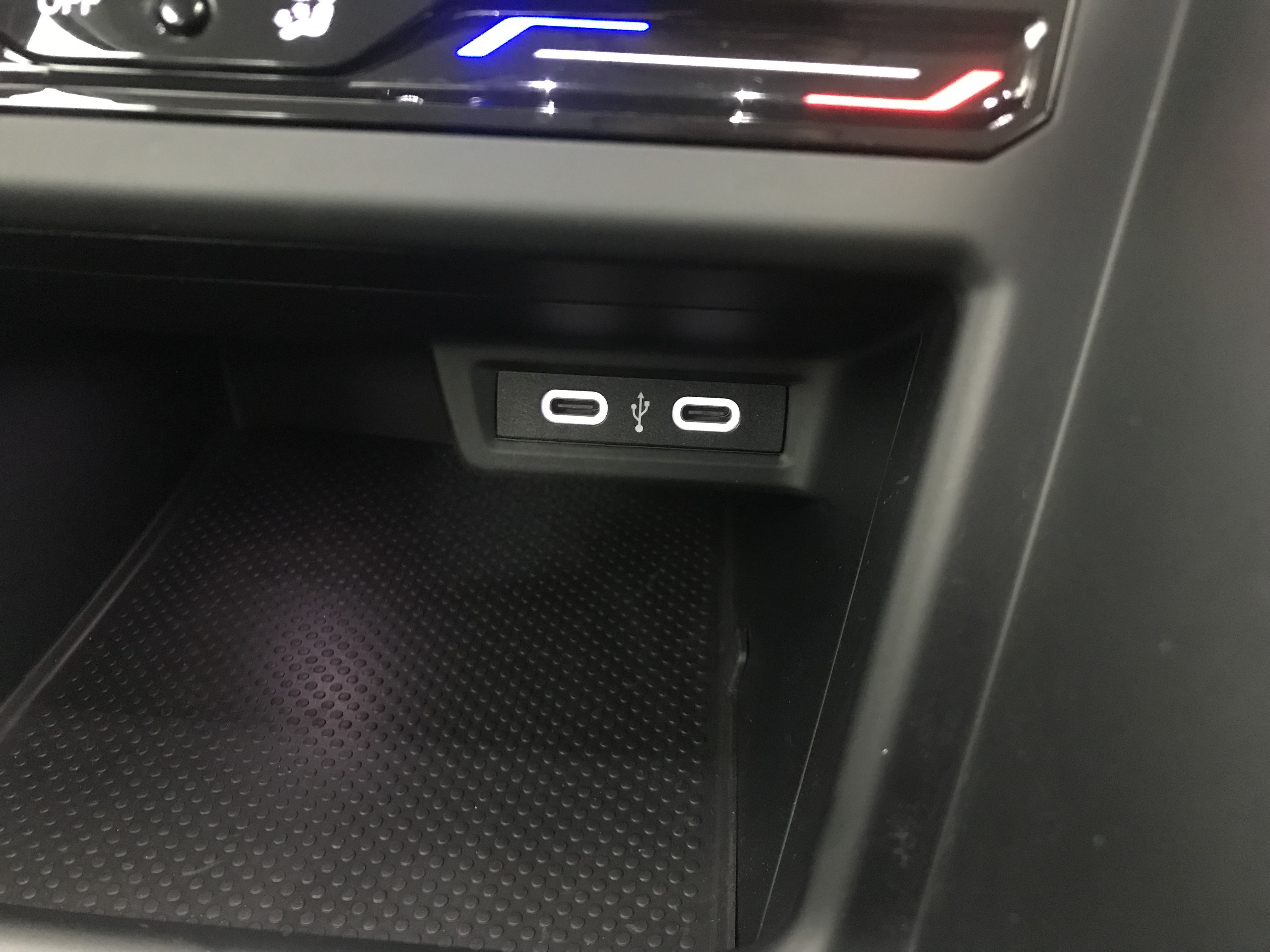 - Accoudoir central AV réglable en longueur avec compartiment de rangement et 2 ports USB-C de recharge AR