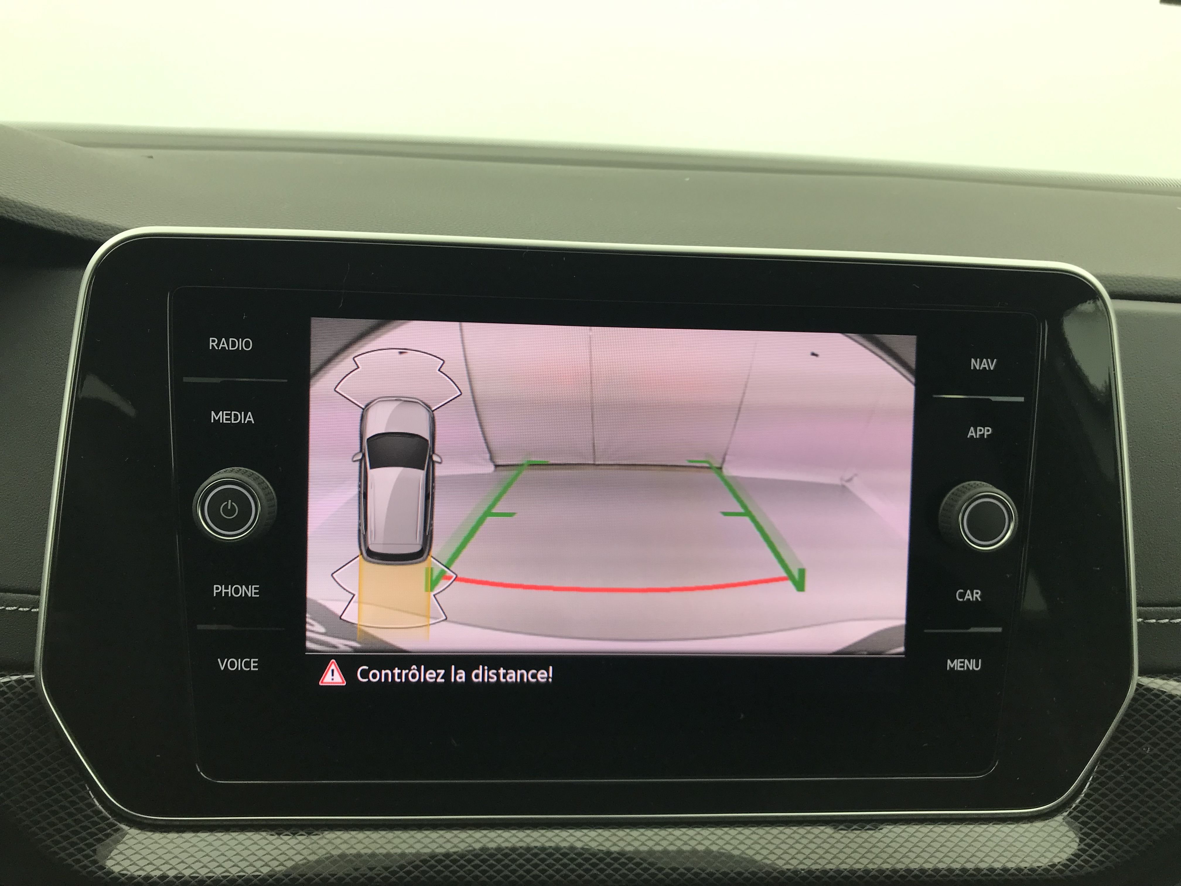 - elle affiche des indications visuelles sur l'écran central pour vous faciliter les manoeuvres de recul et de stationnement