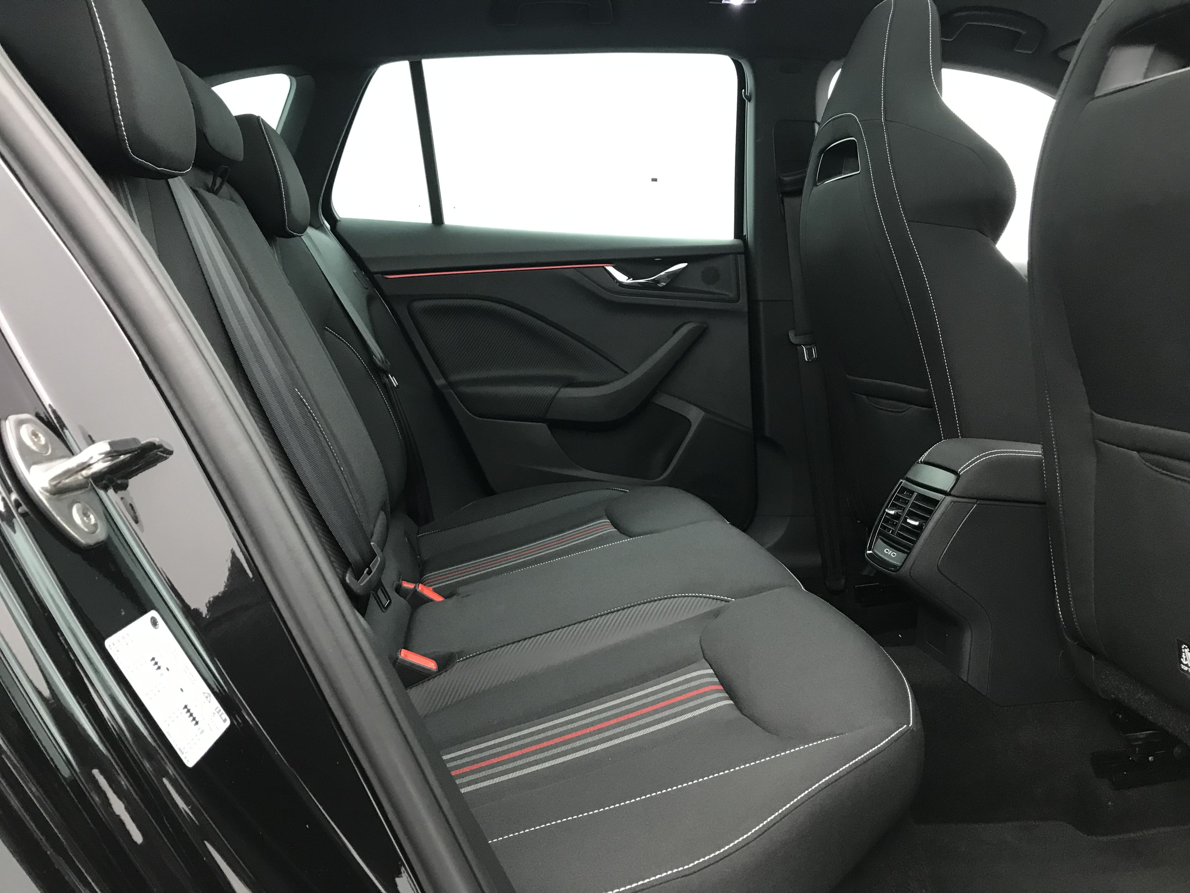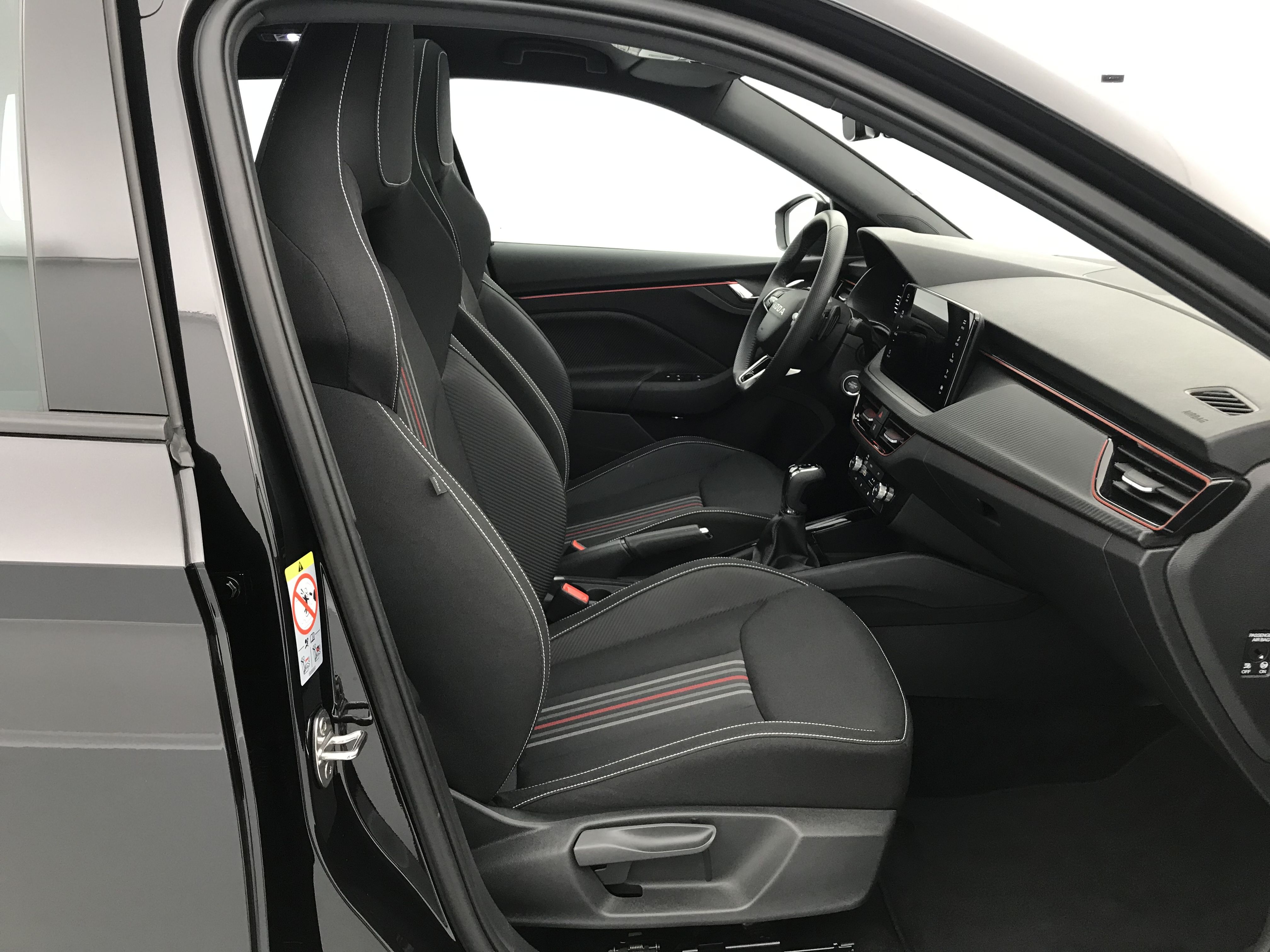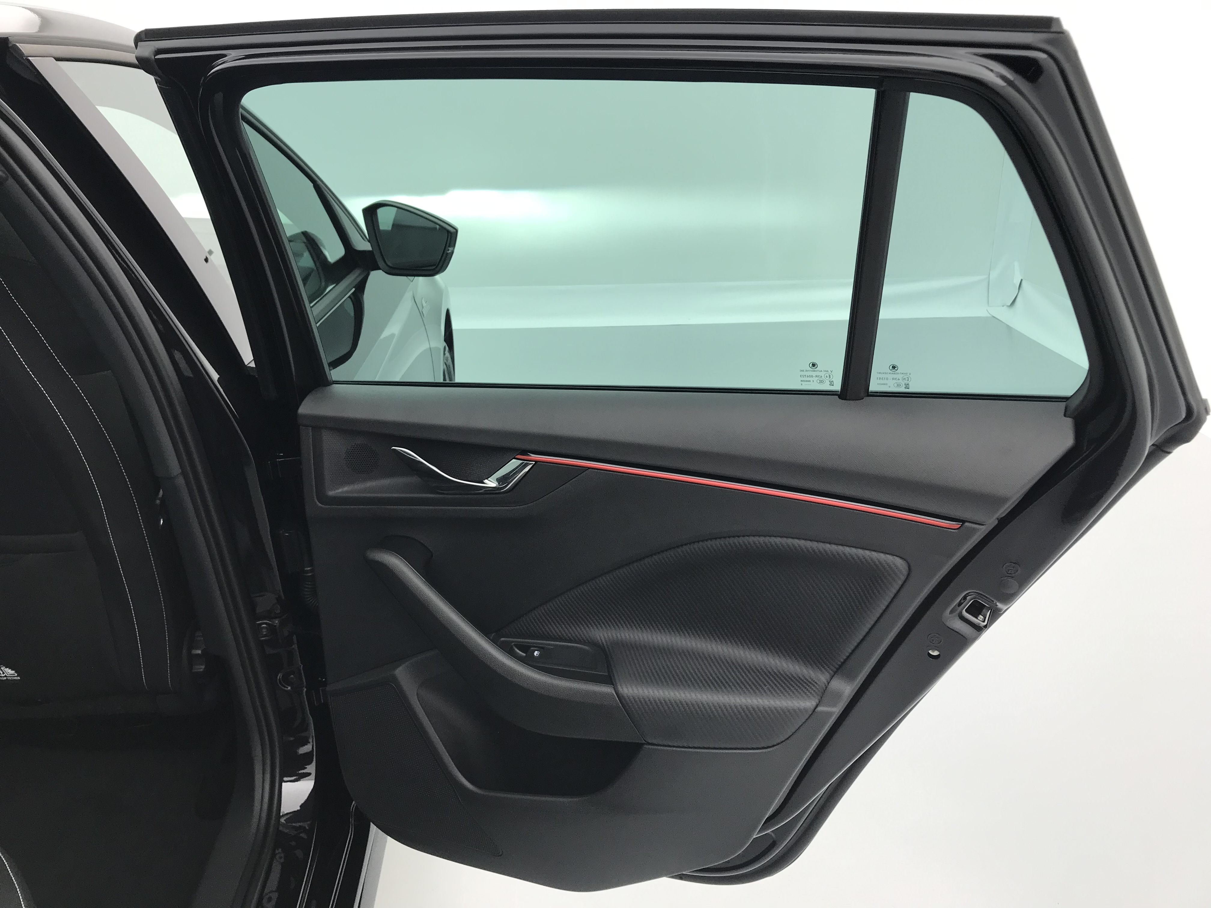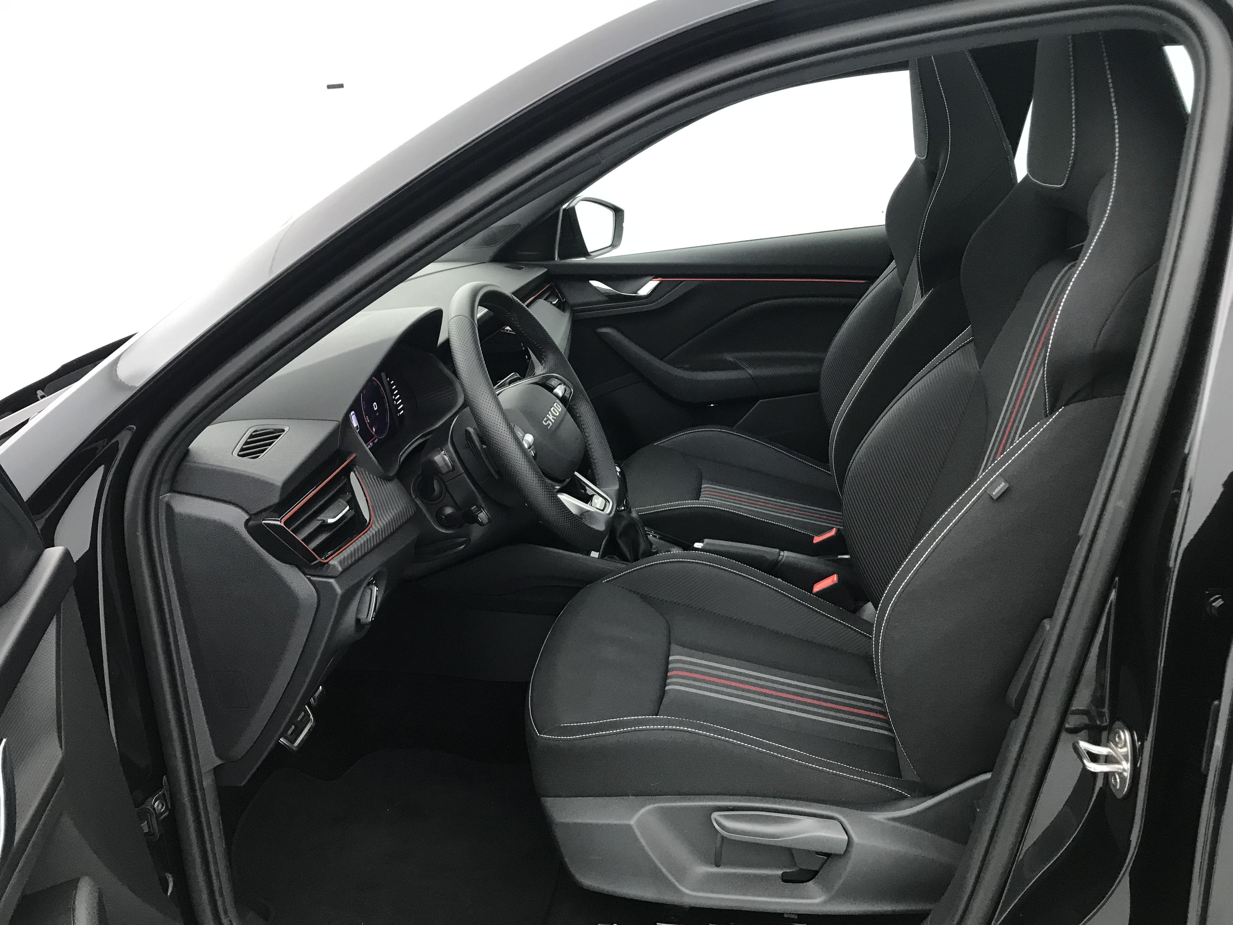 - Insert décoratif sur la planche de bord effet Carbone avec liseré rouge et inserts de porte matériau synthétique effet carbone