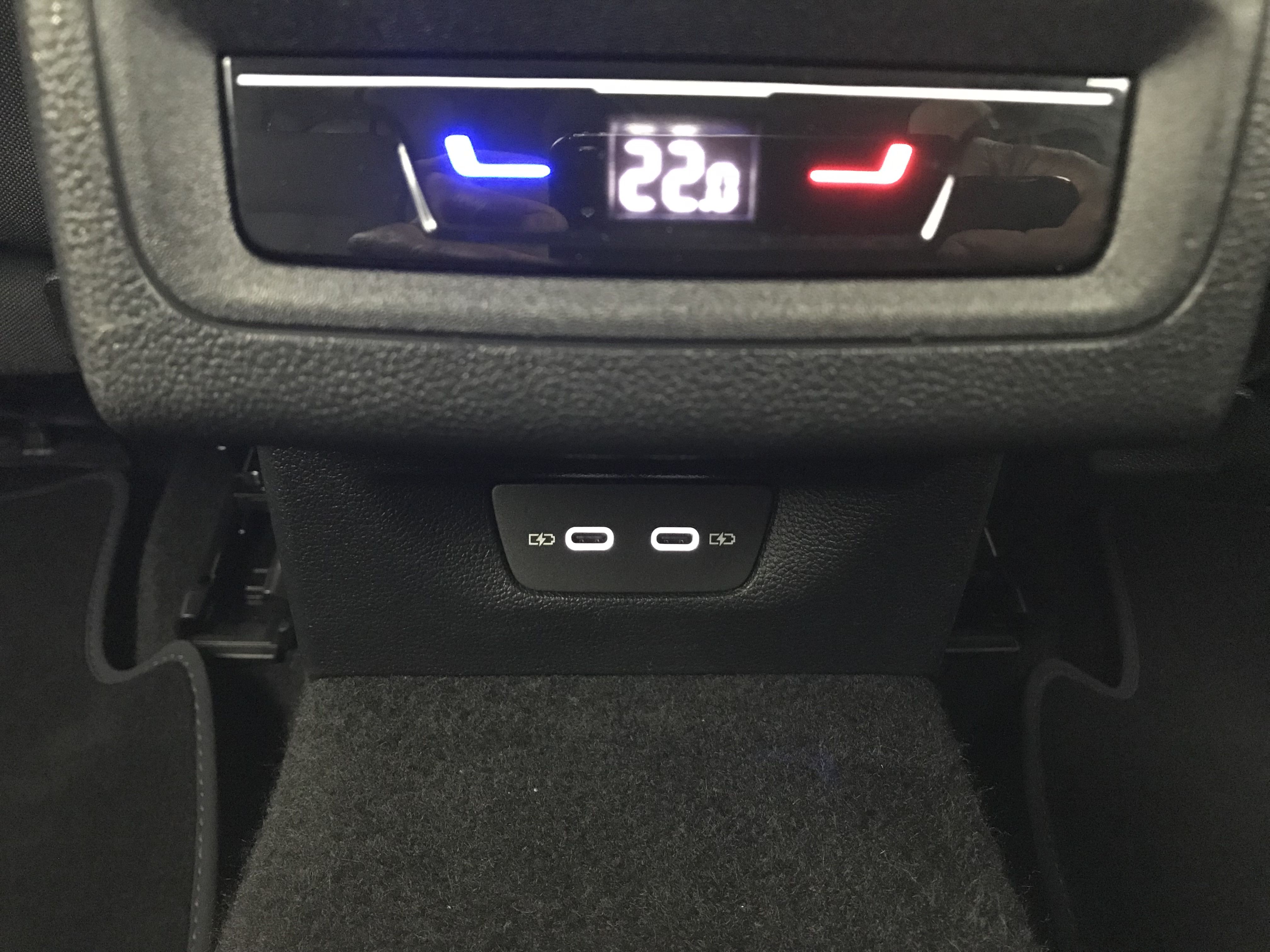 - 2 prises de chargement USB-C derrière l'accoudoir pour les passagers AR