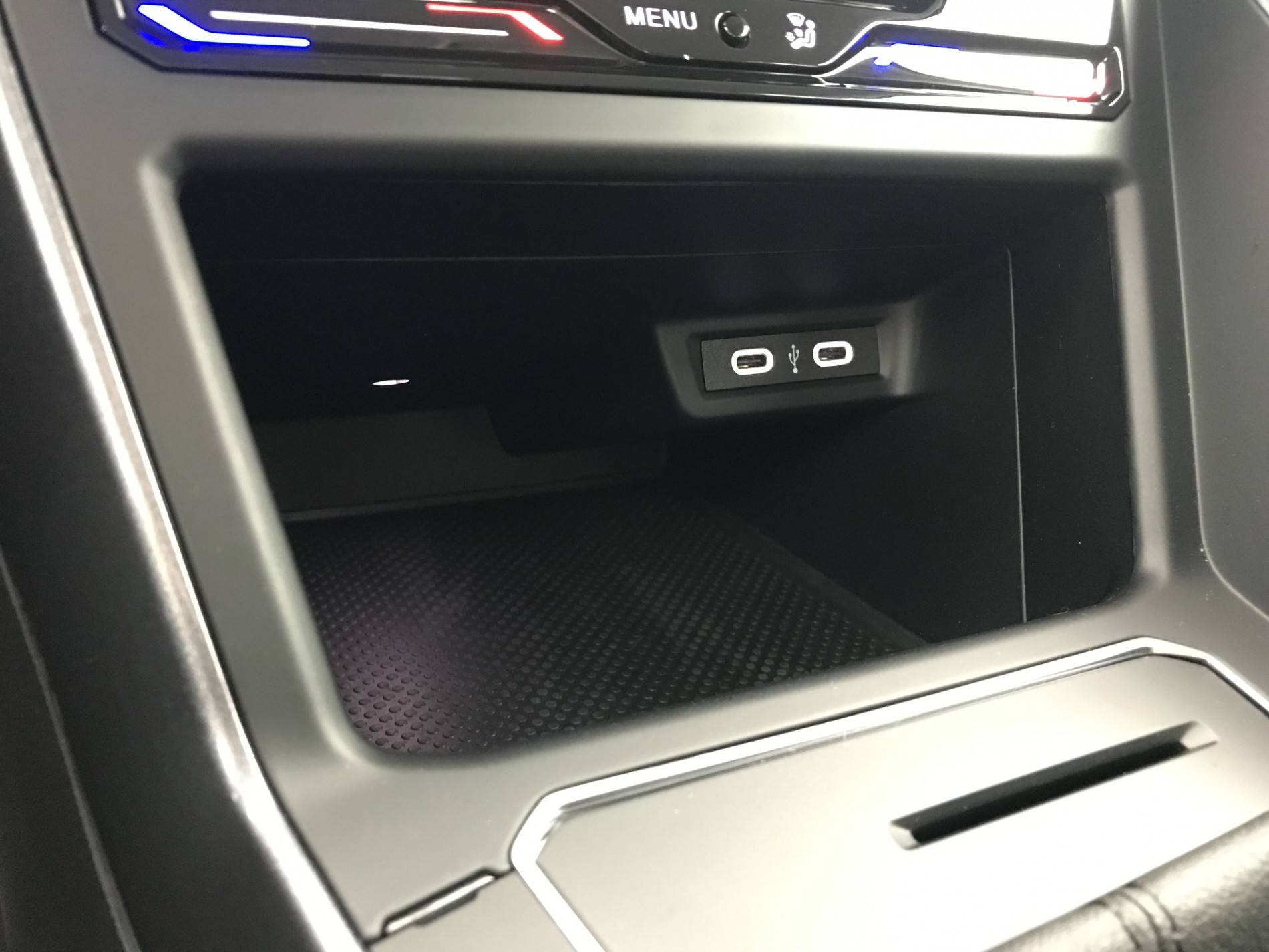 - Accoudoir central AV réglable en longueur avec compartiment de rangement et 2 ports USB-C de recharge AR
