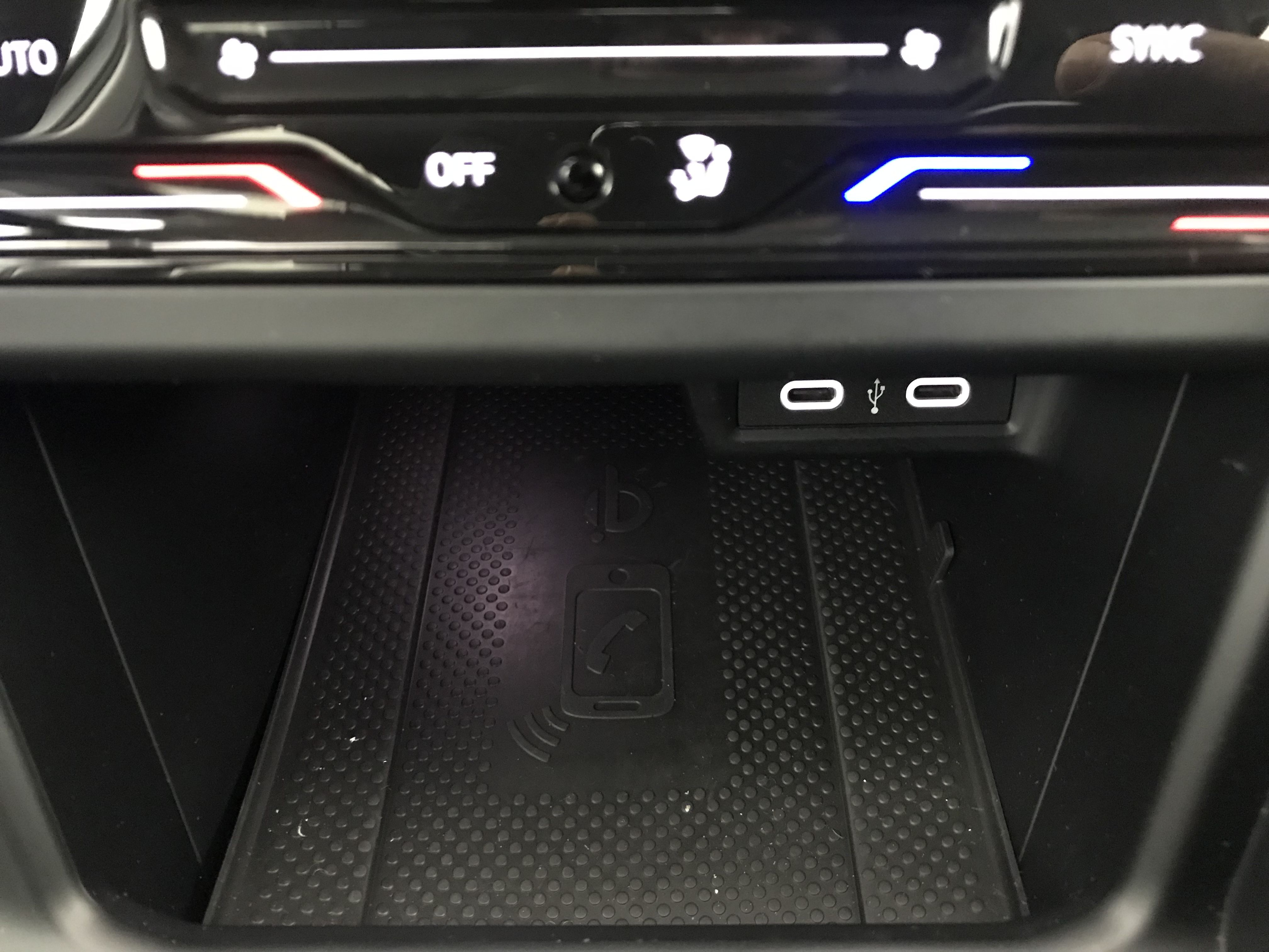 - Accoudoir central AV réglable en longueur avec compartiment de rangement et 2 ports USB-C de recharge AR