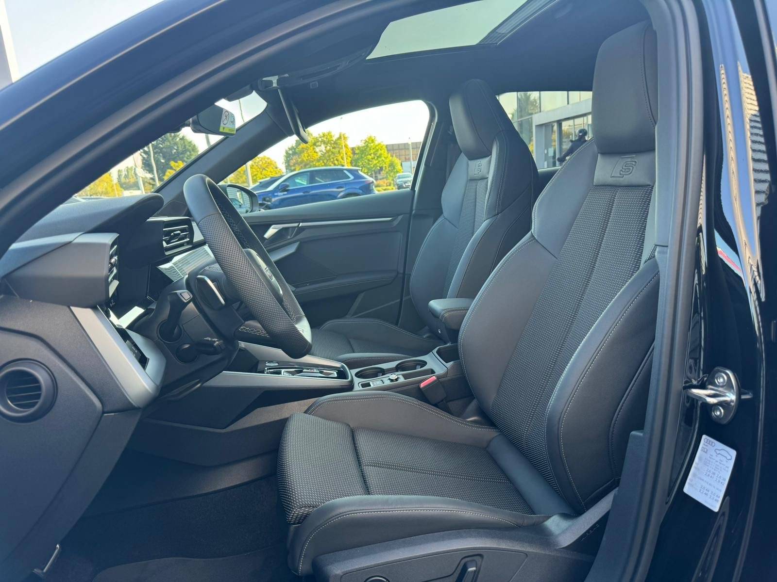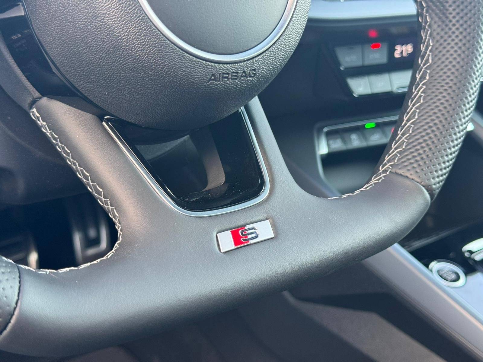 - Pack Esthétique Noir Plus Anneaux Audi en noir sur AV/AR du véhicule et identification du modèle/moteur en noir