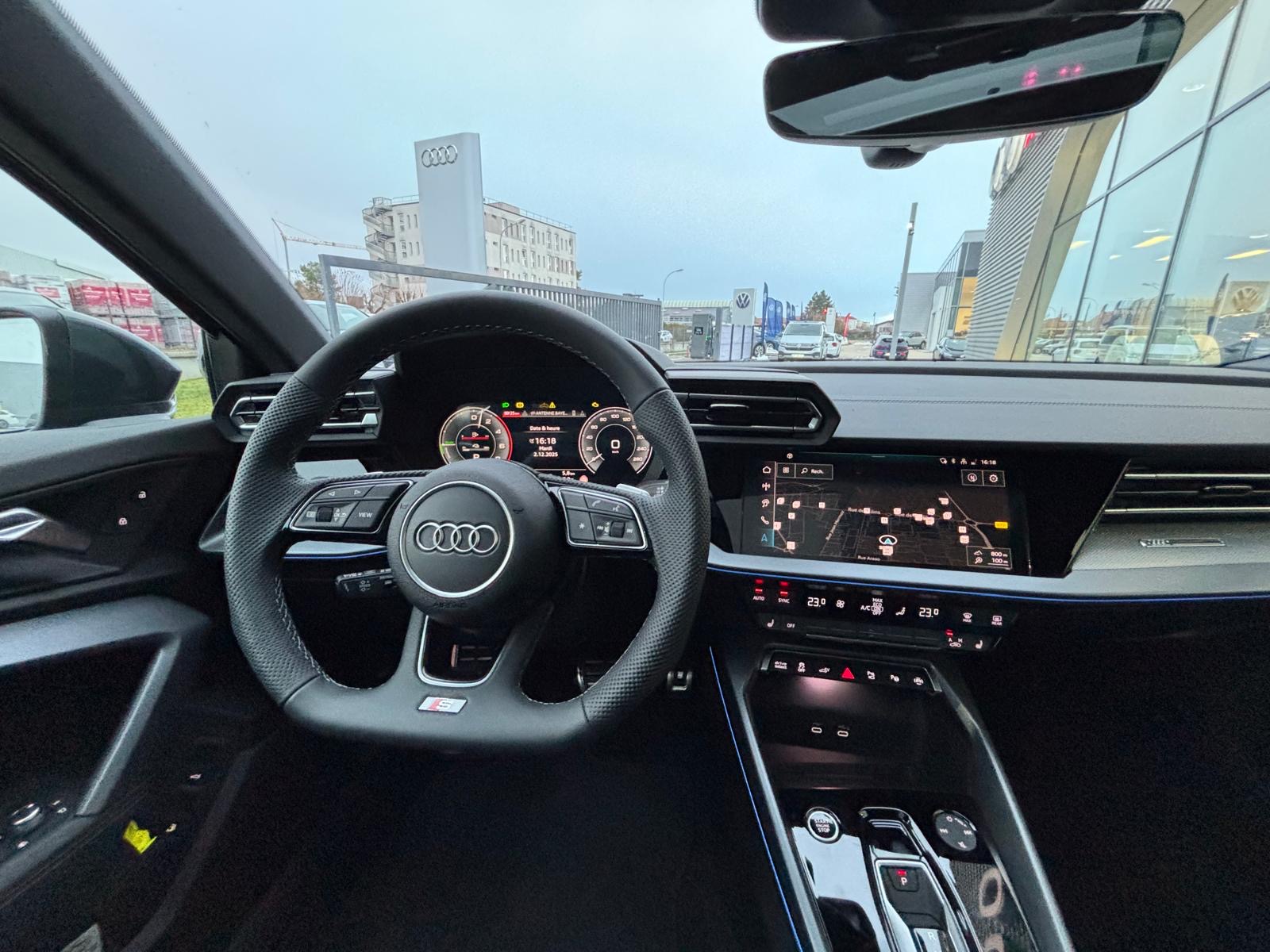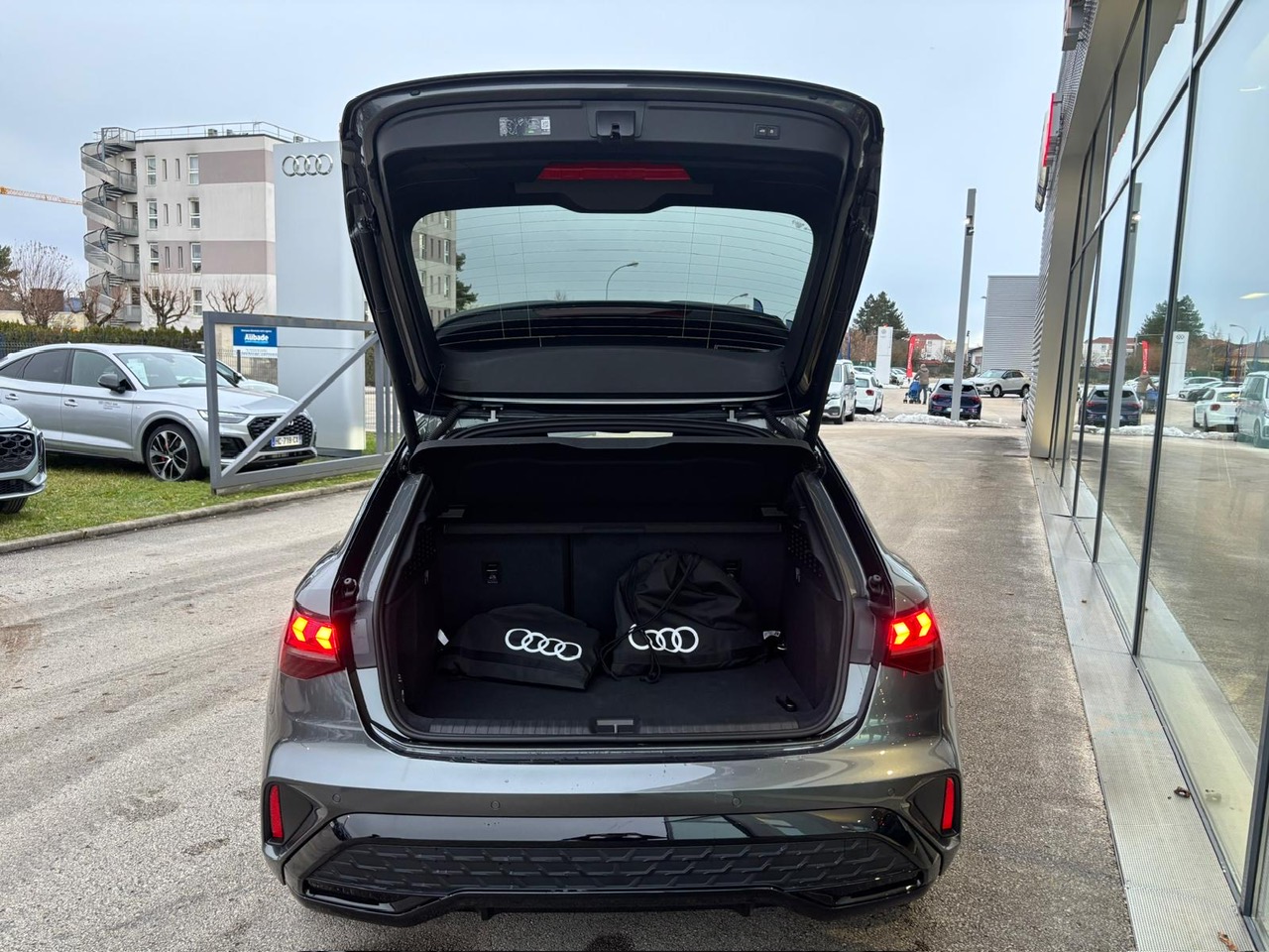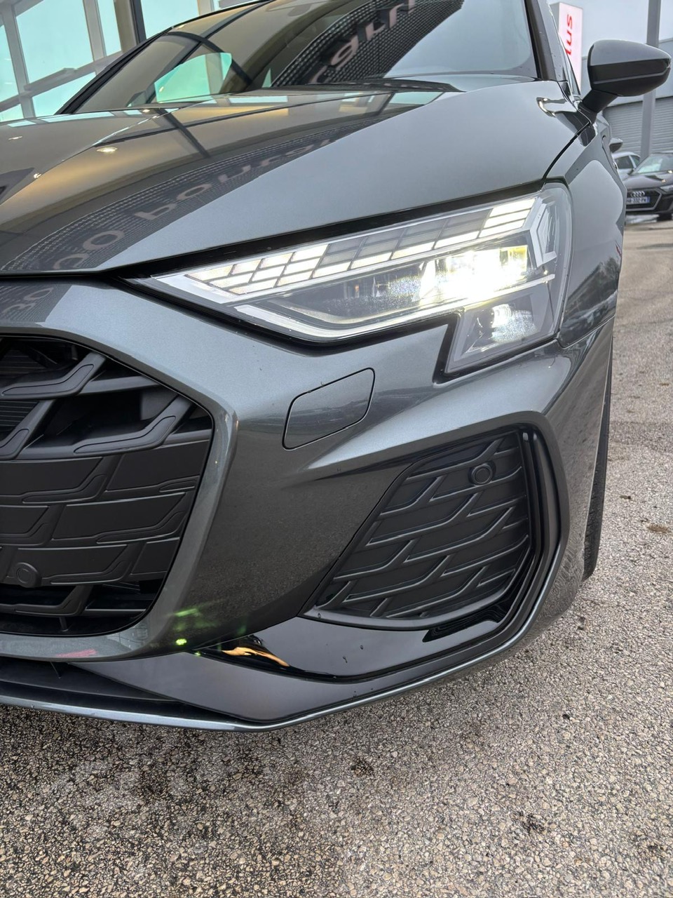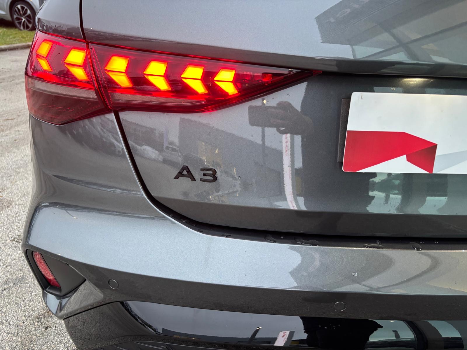 - Pack Esthétique Noir Plus Anneaux Audi en noir sur AV/AR du véhicule et identification du modèle/moteur en noir