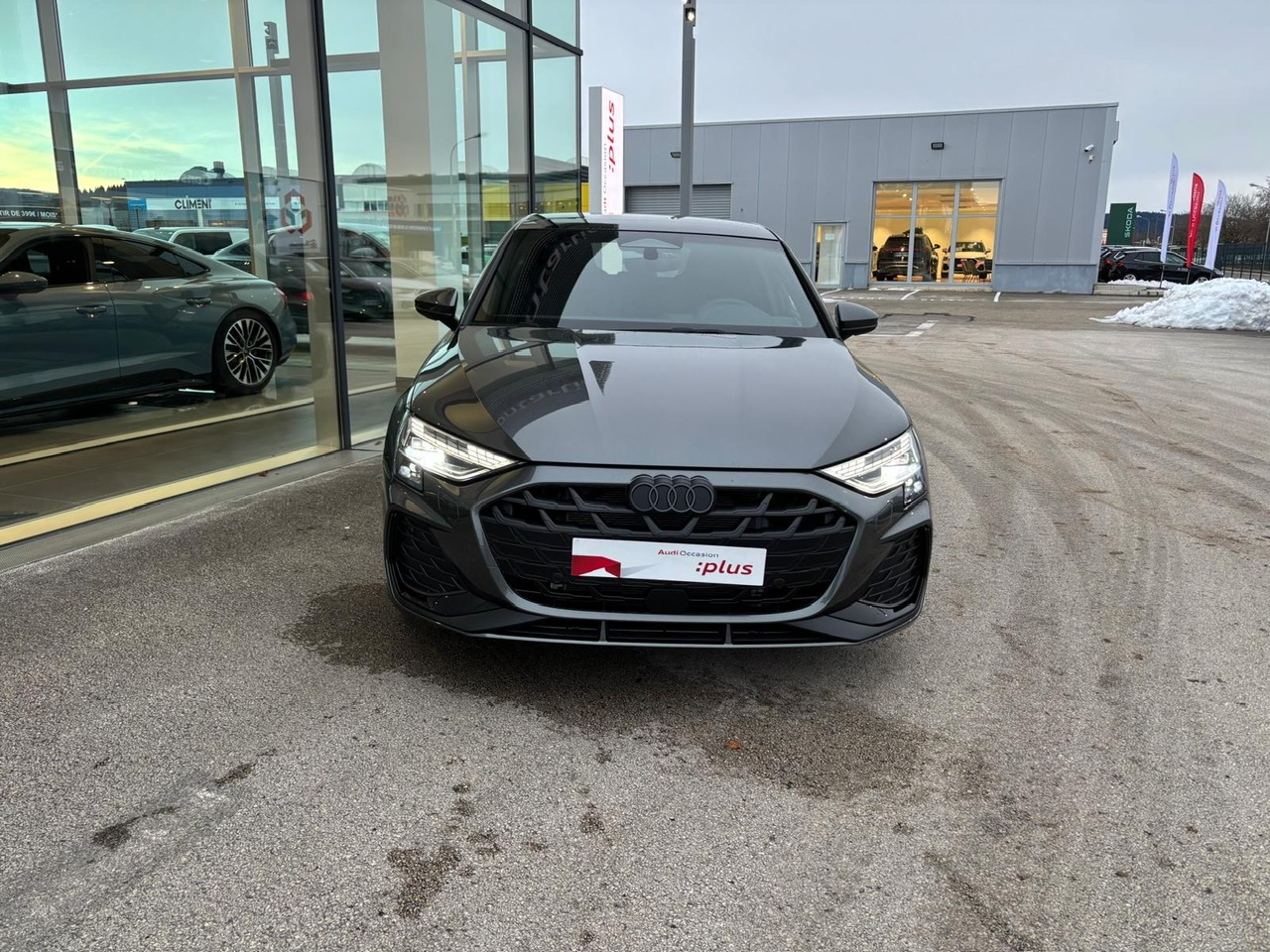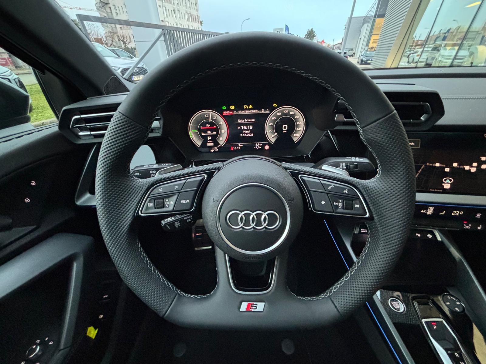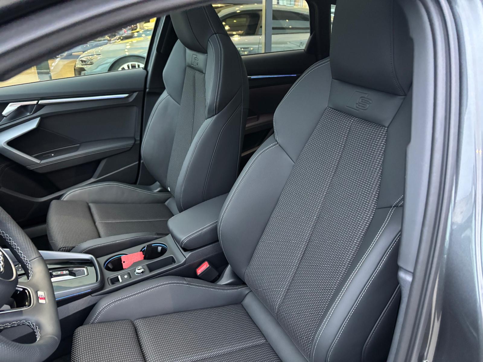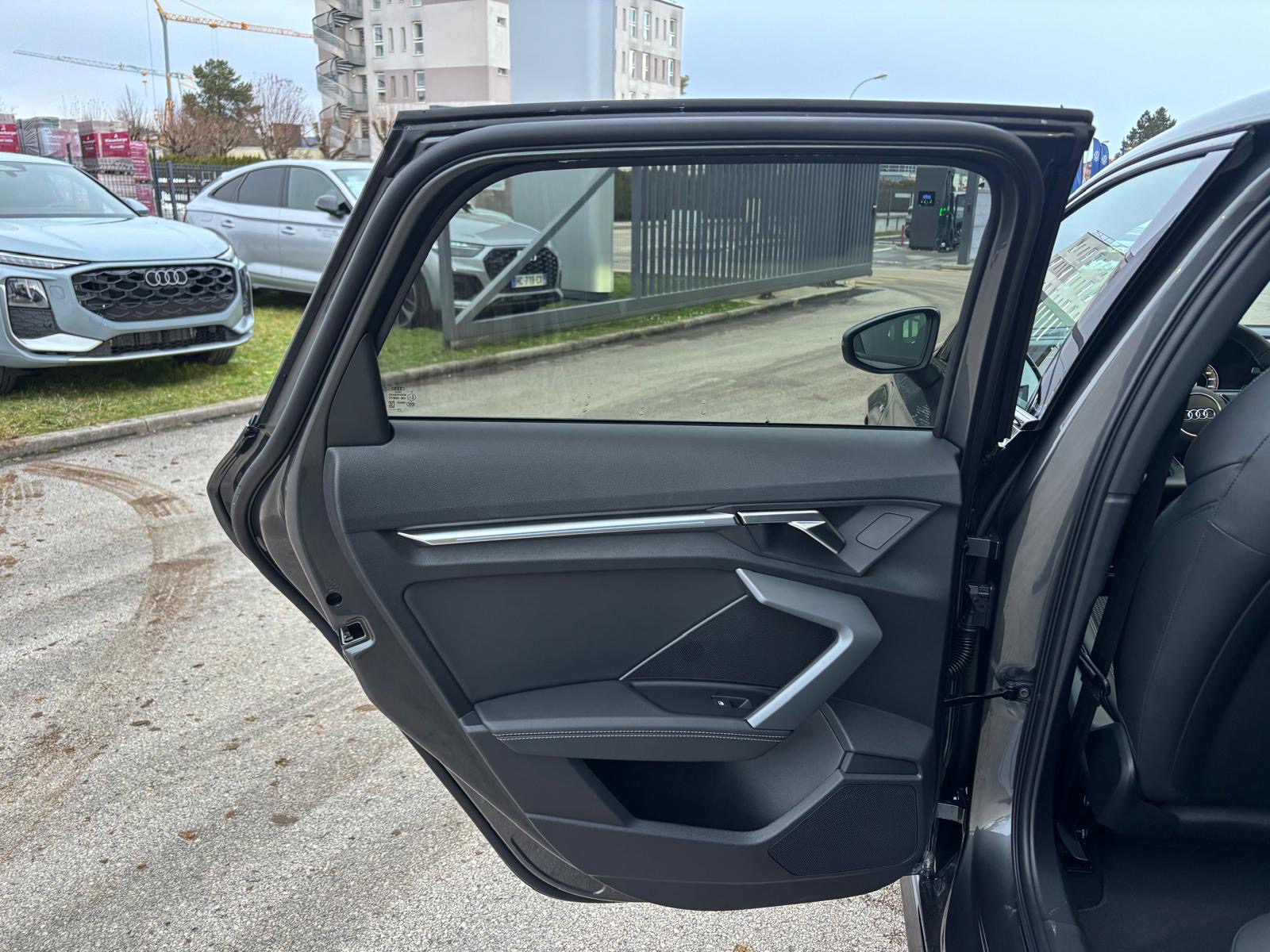 - Pack Esthétique Noir Plus Anneaux Audi en noir sur AV/AR du véhicule et identification du modèle/moteur en noir