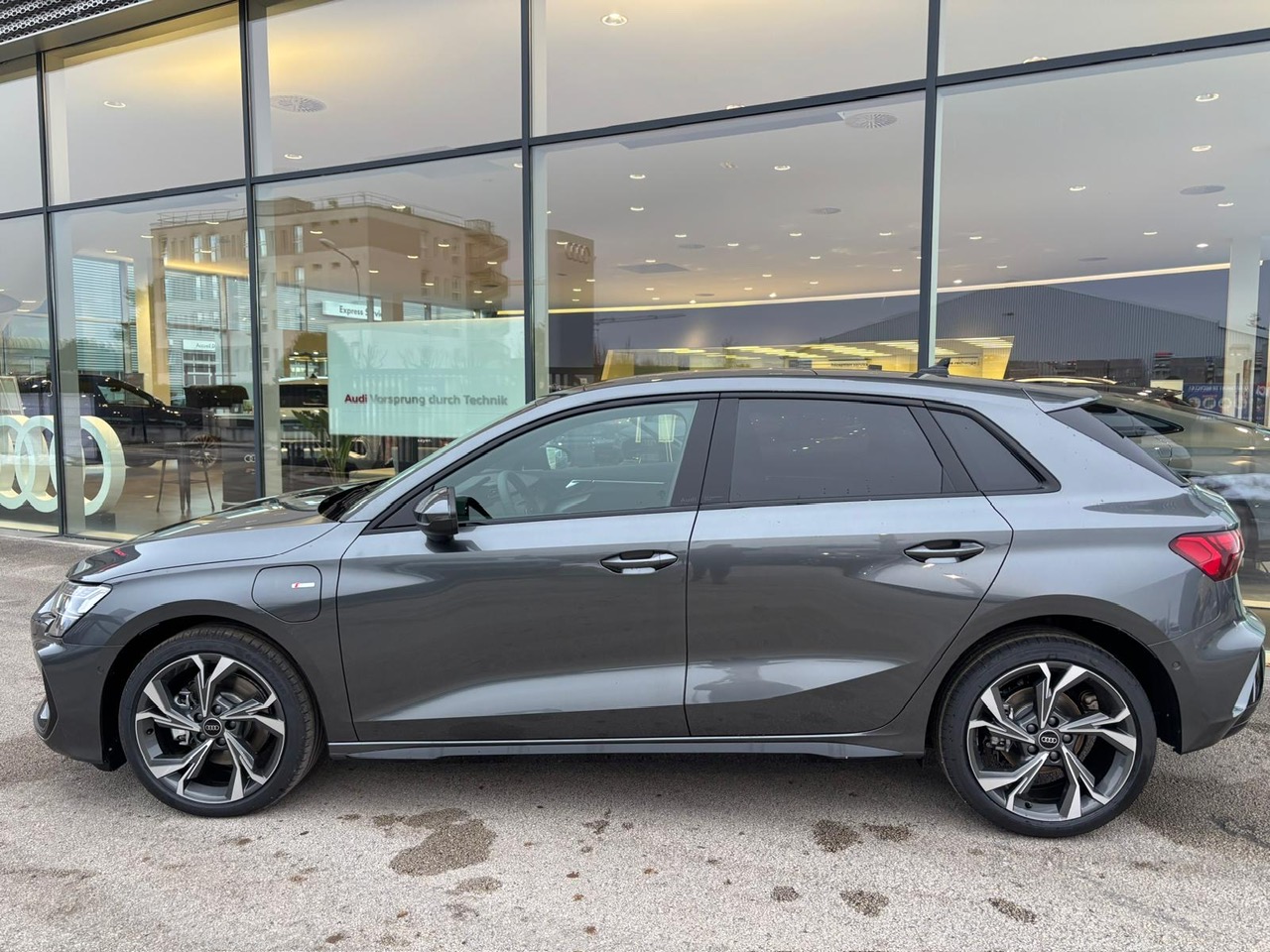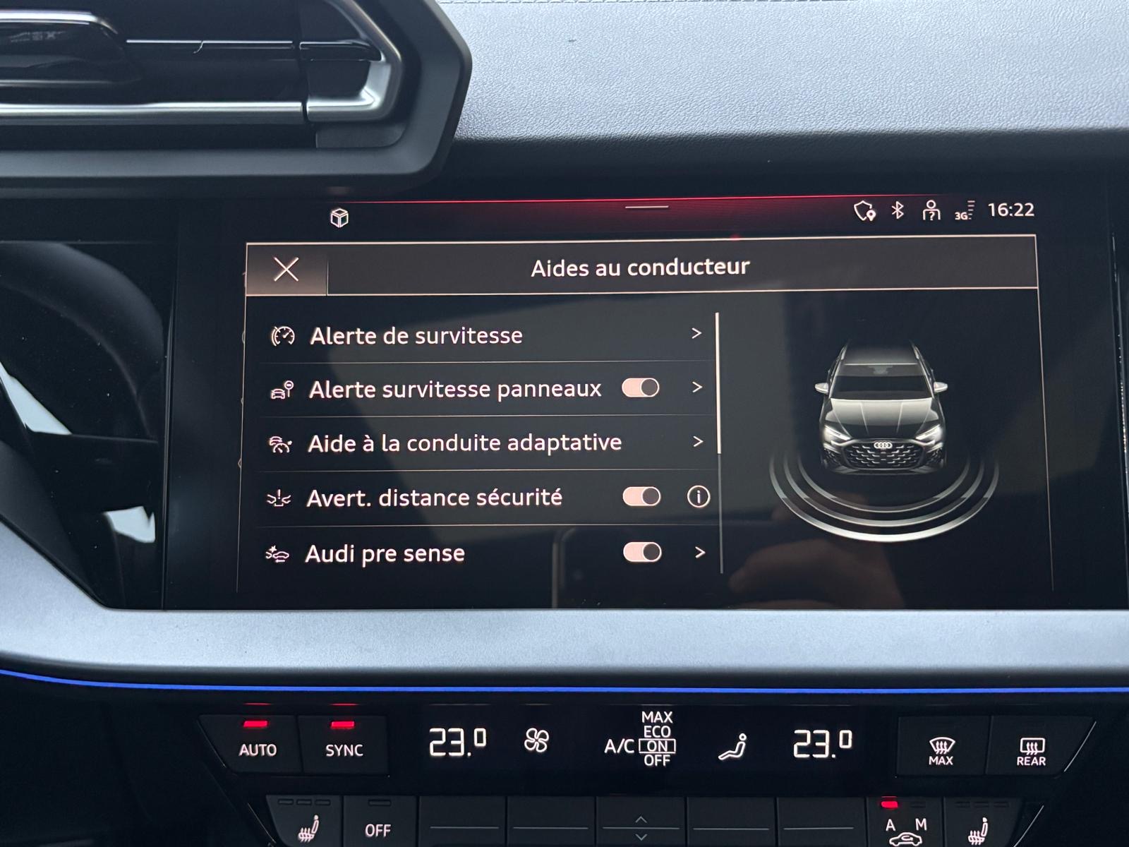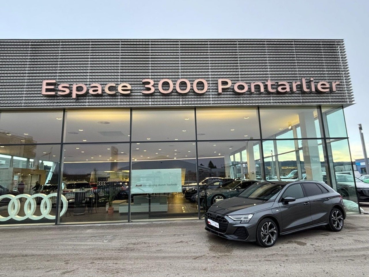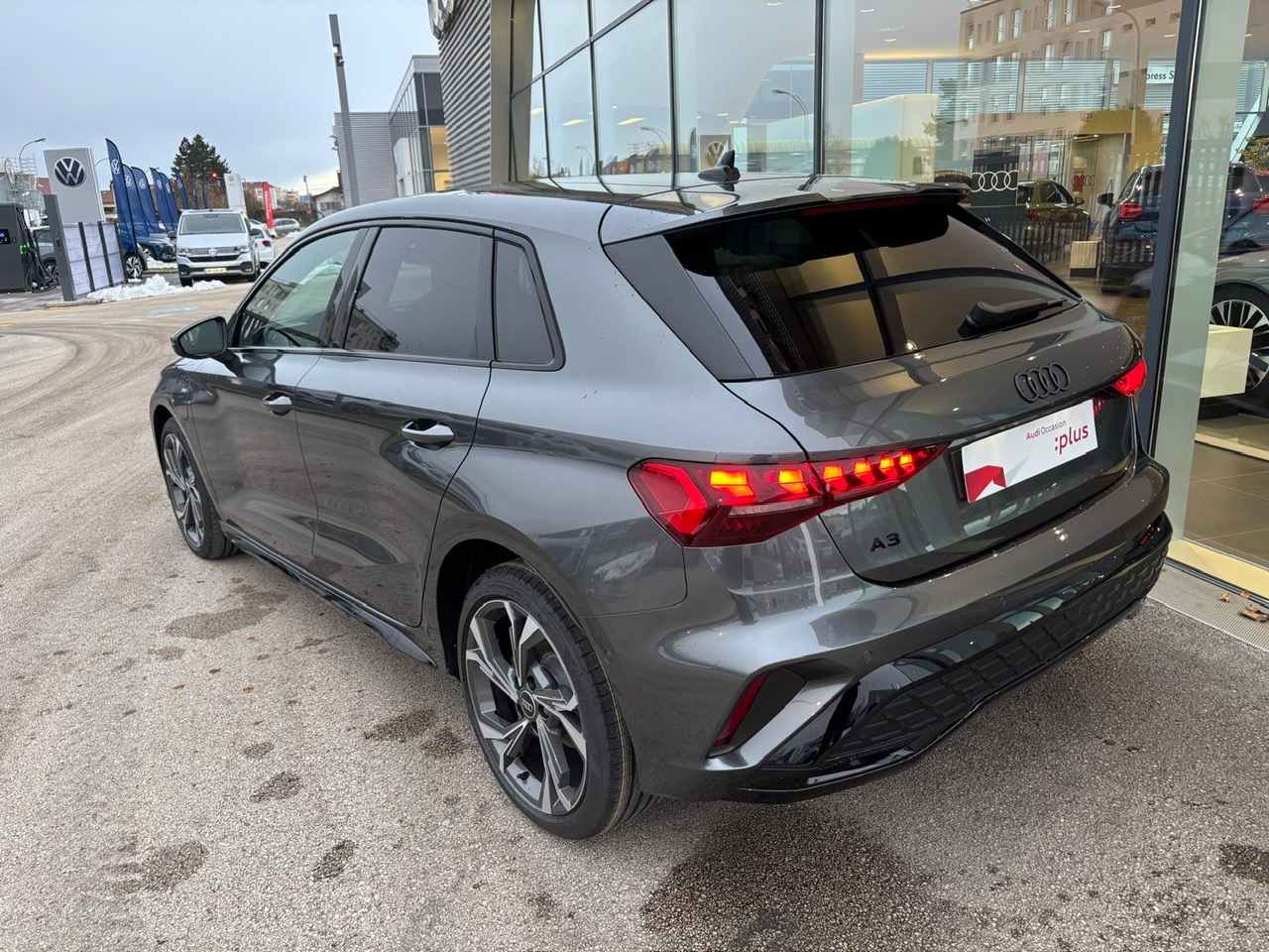 - Pack Esthétique Noir Plus Anneaux Audi en noir sur AV/AR du véhicule et identification du modèle/moteur en noir