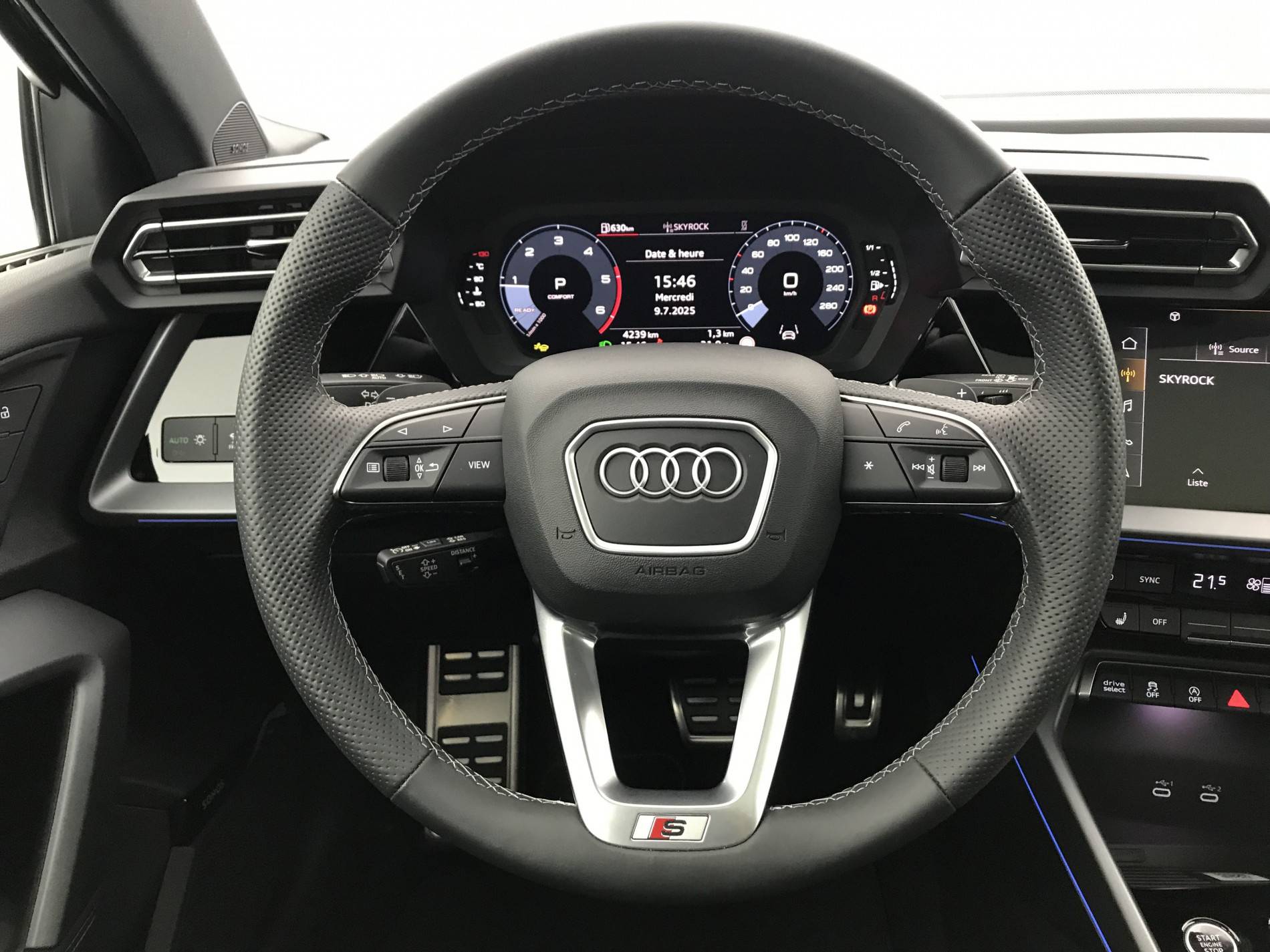 - Volant cuir Sport multifonctions Plus 3 branches avec méplat et palettes de commande au volant
