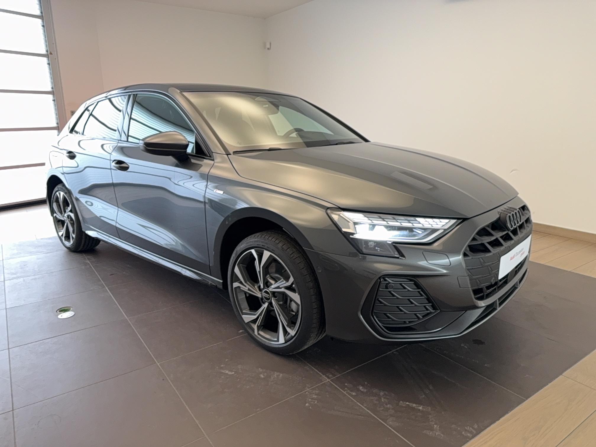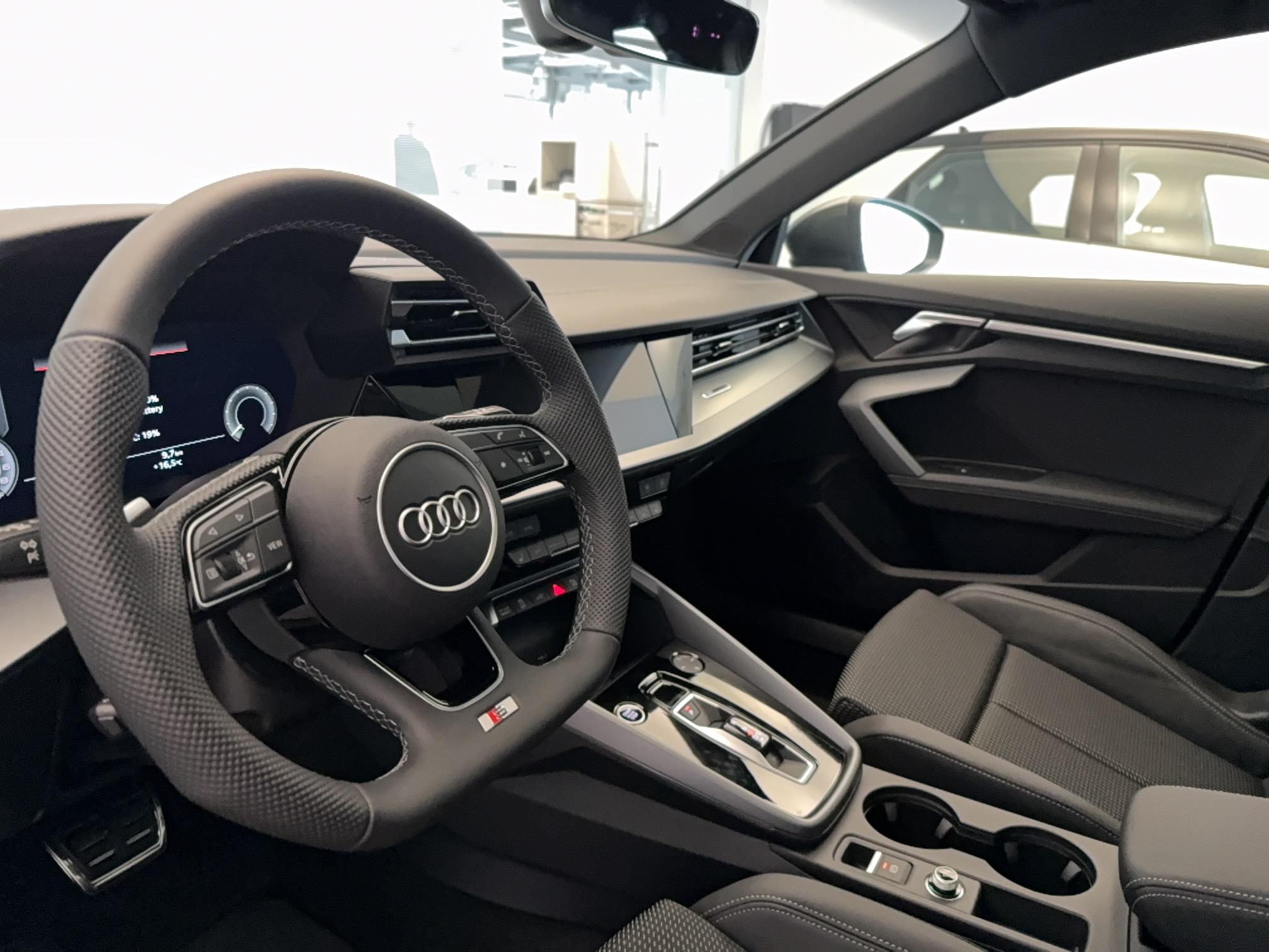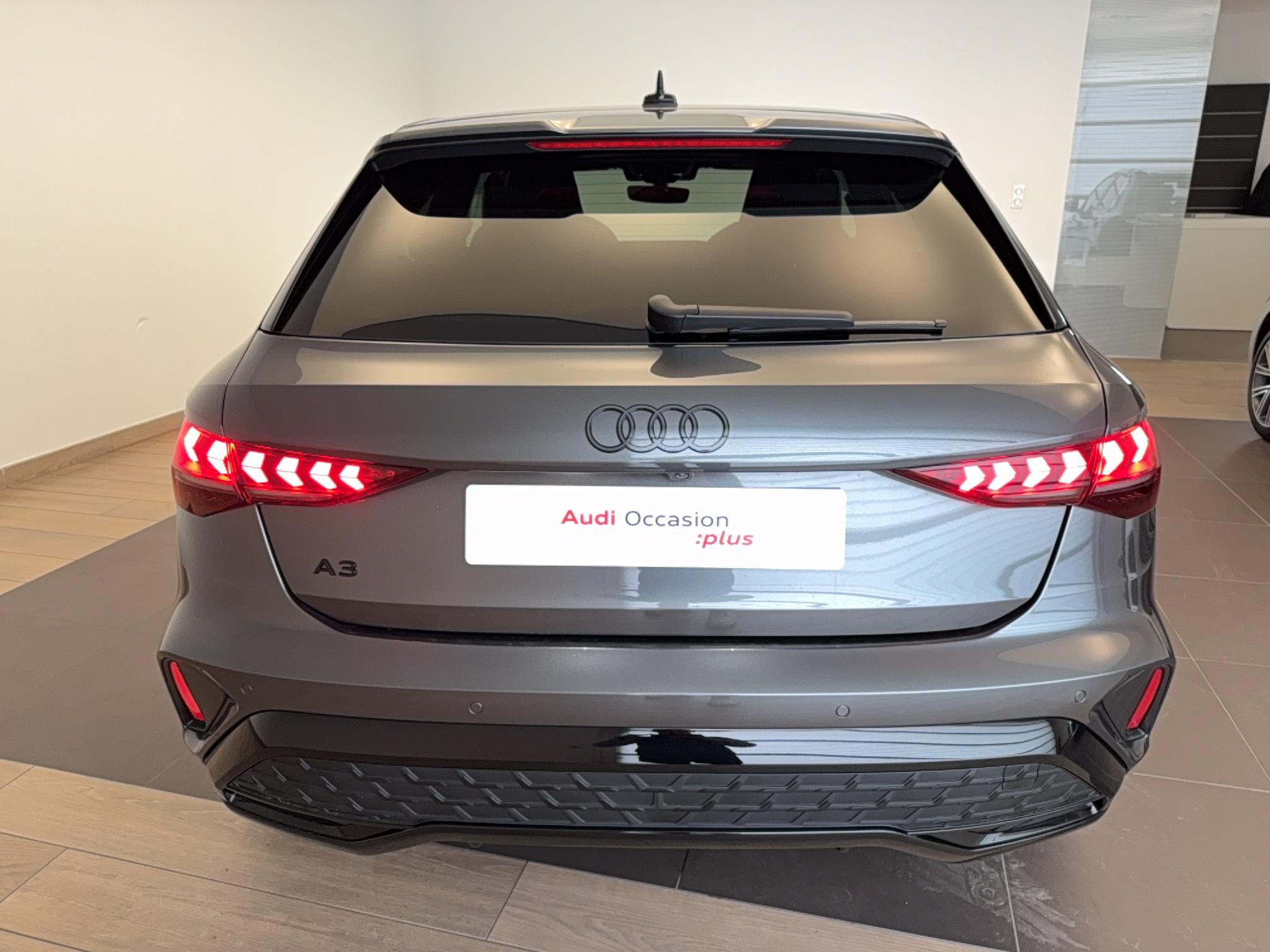- Pack Esthétique Noir Plus Anneaux Audi en noir sur AV/AR du véhicule et identification du modèle/moteur en noir