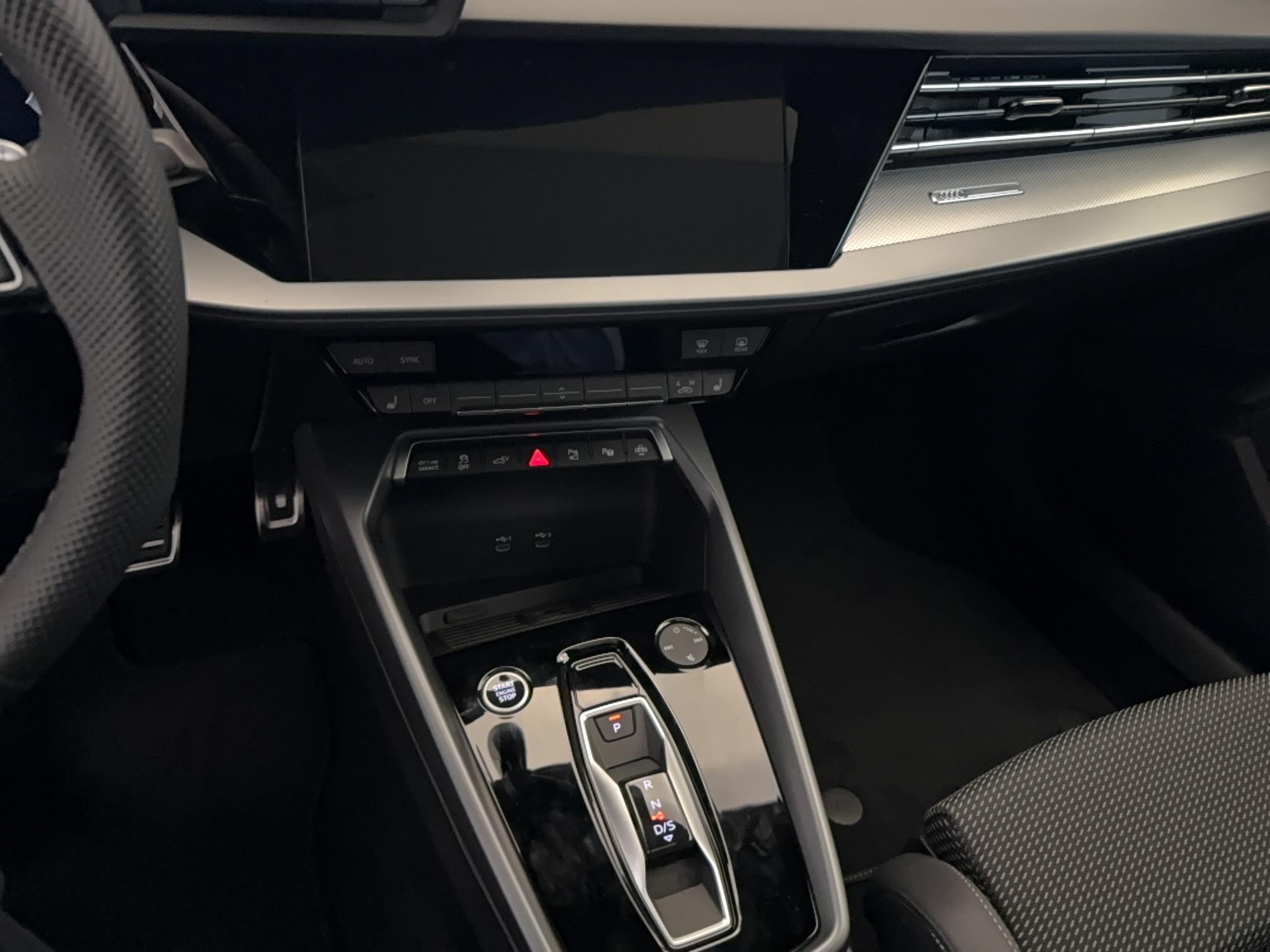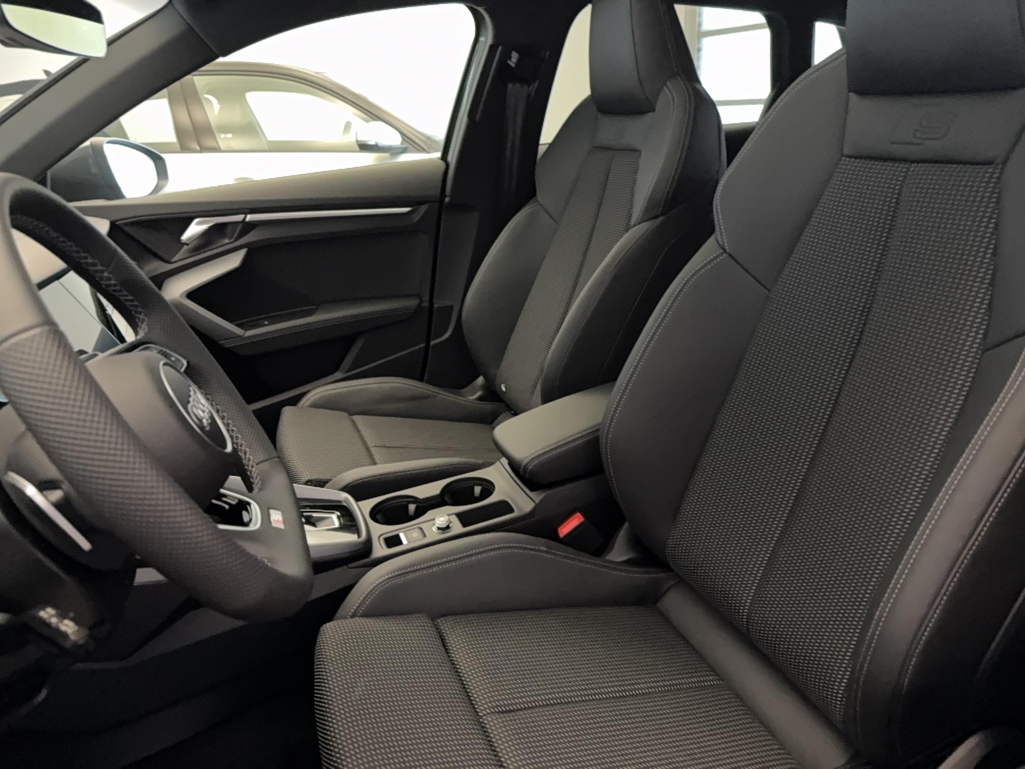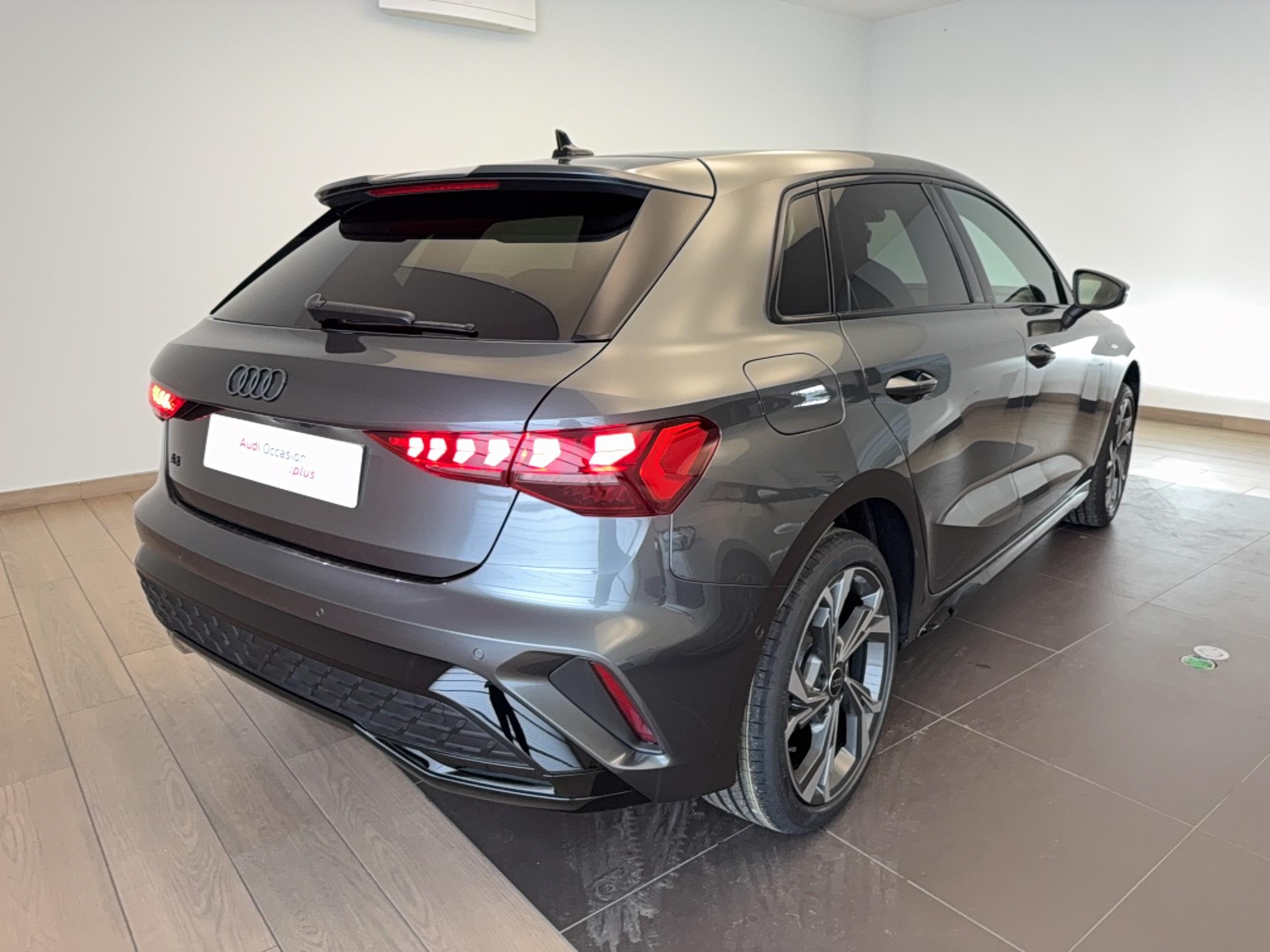 - Pack Esthétique Noir Plus Anneaux Audi en noir sur AV/AR du véhicule et identification du modèle/moteur en noir
