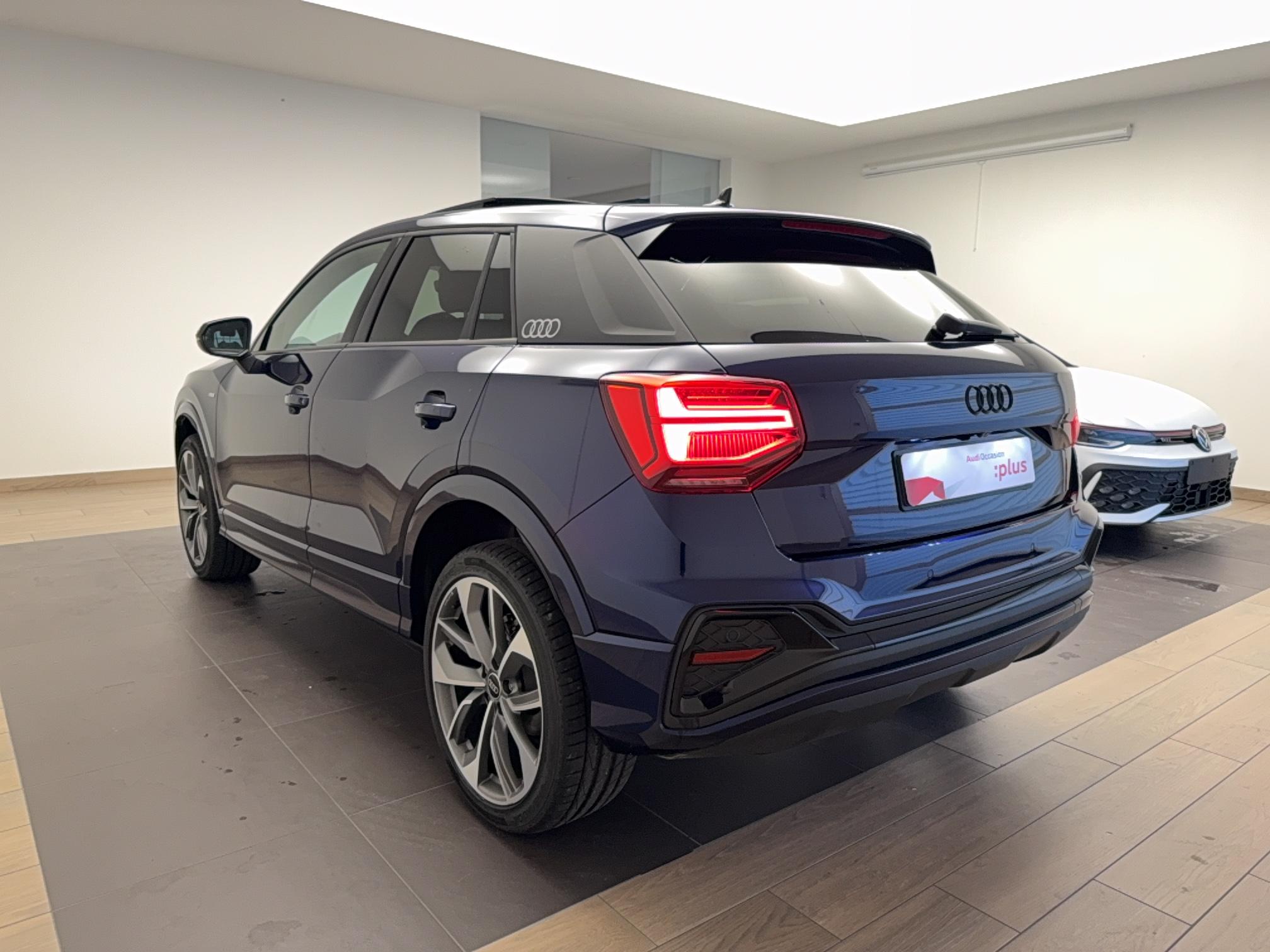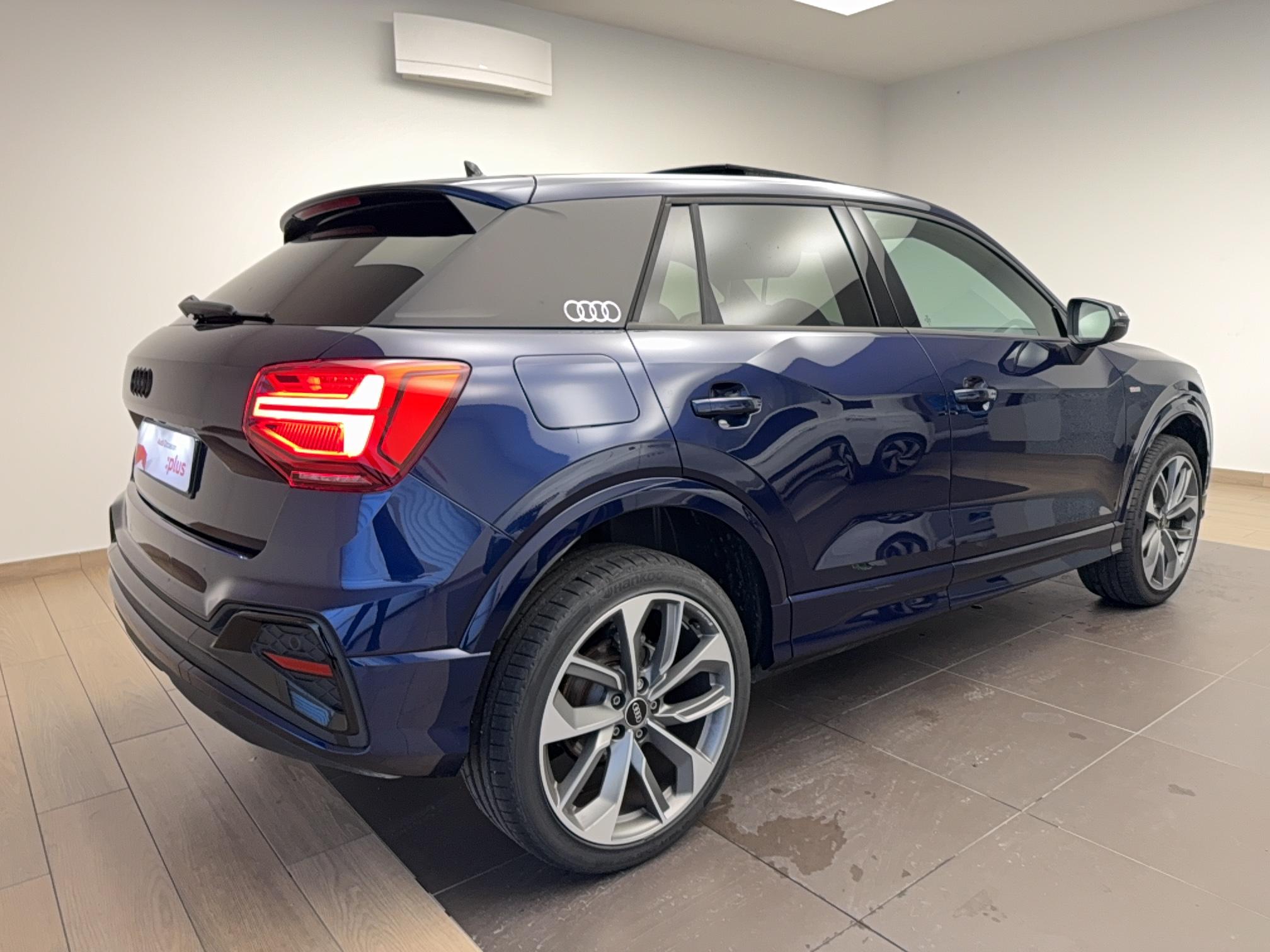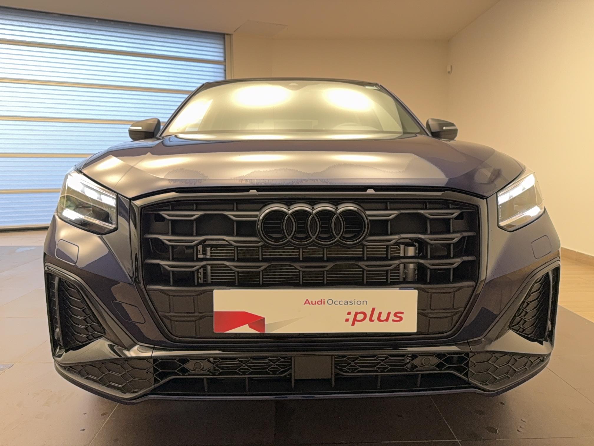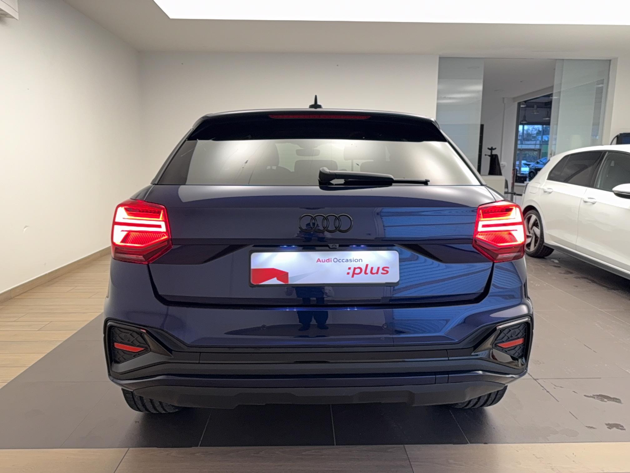 - Pack Esthétique Noir Plus Anneaux Audi en noir sur l'AV et l'AR du véhicule et identification du modèle/moteur en noir