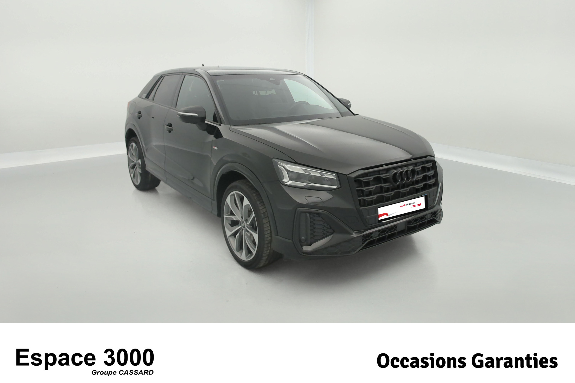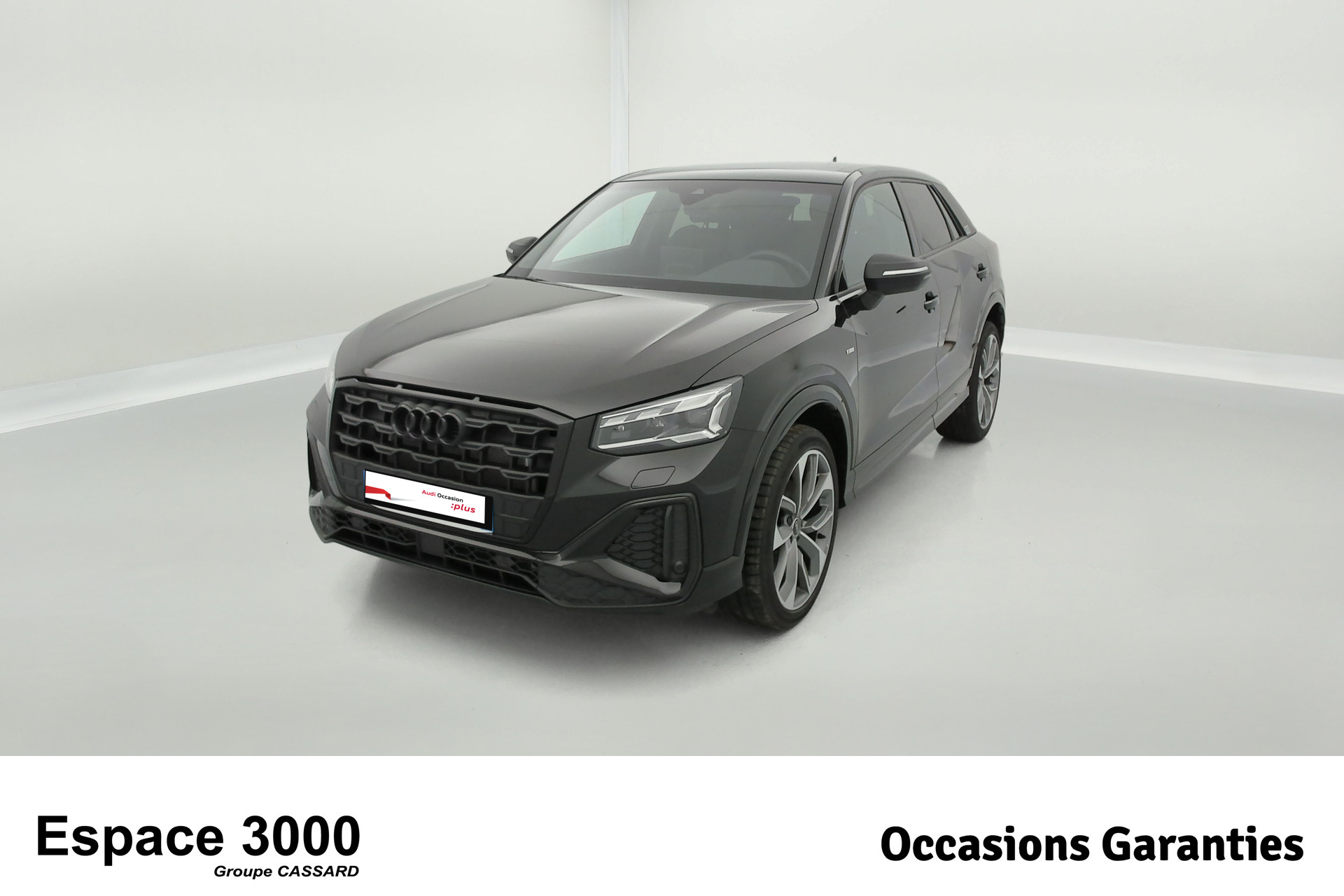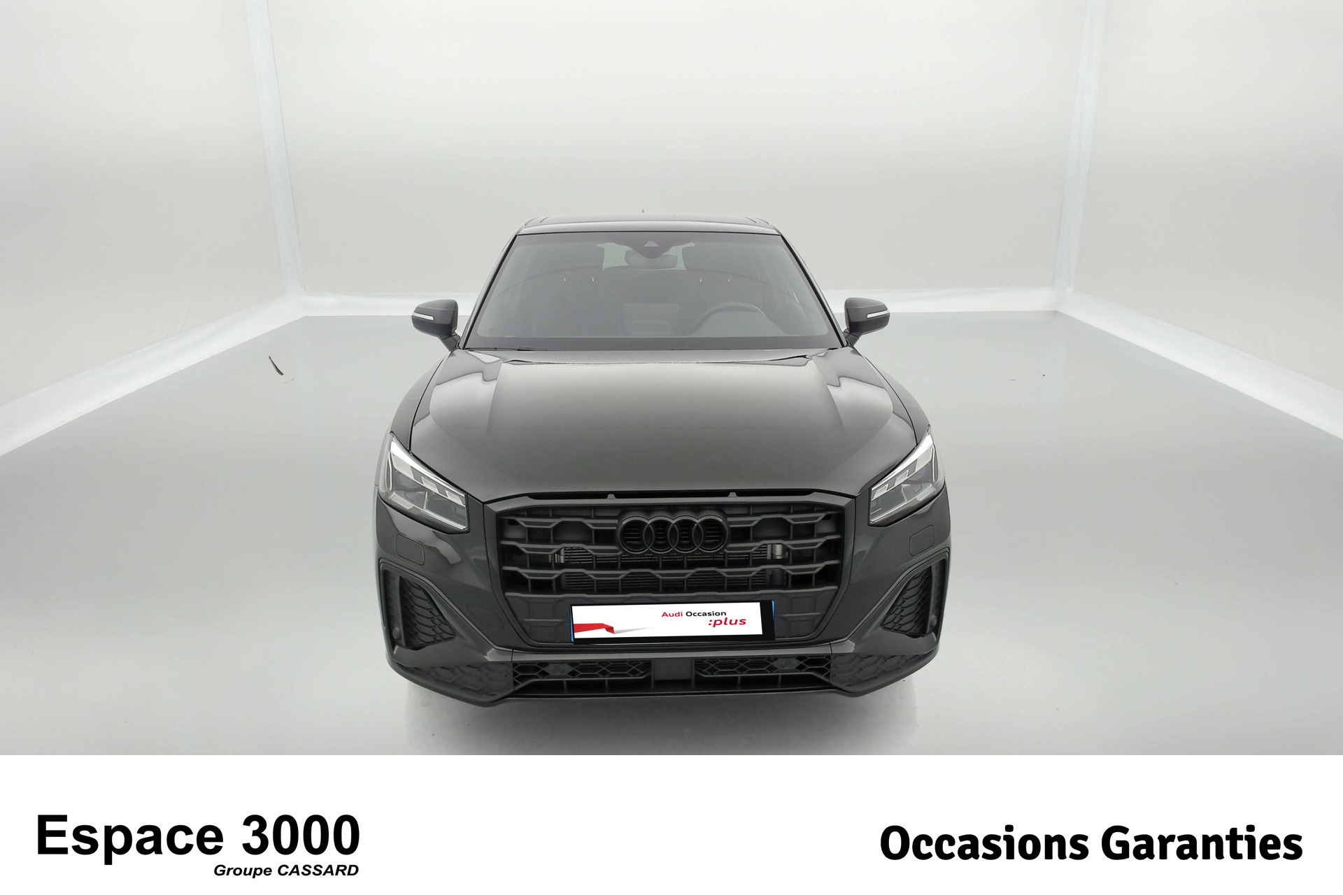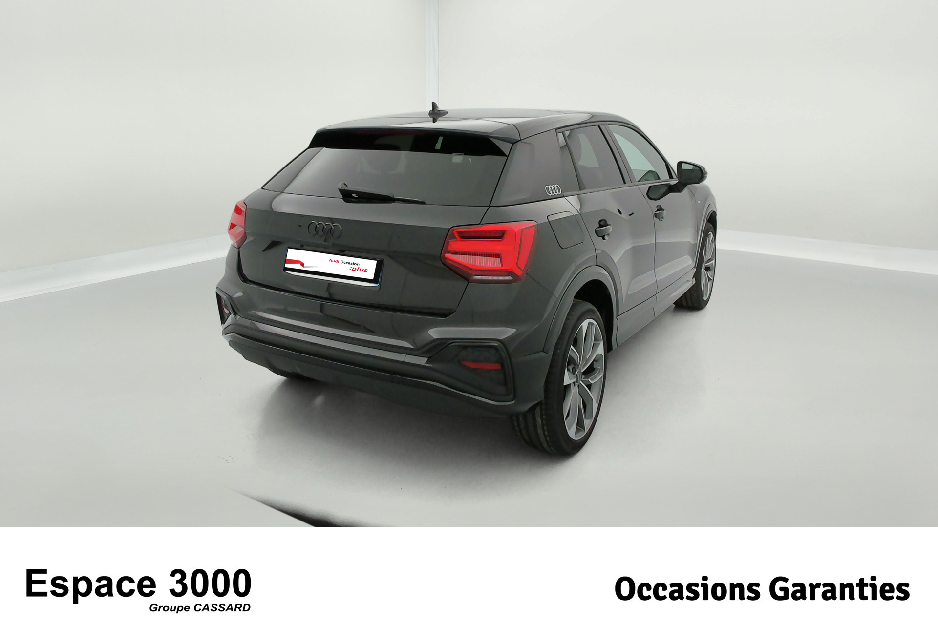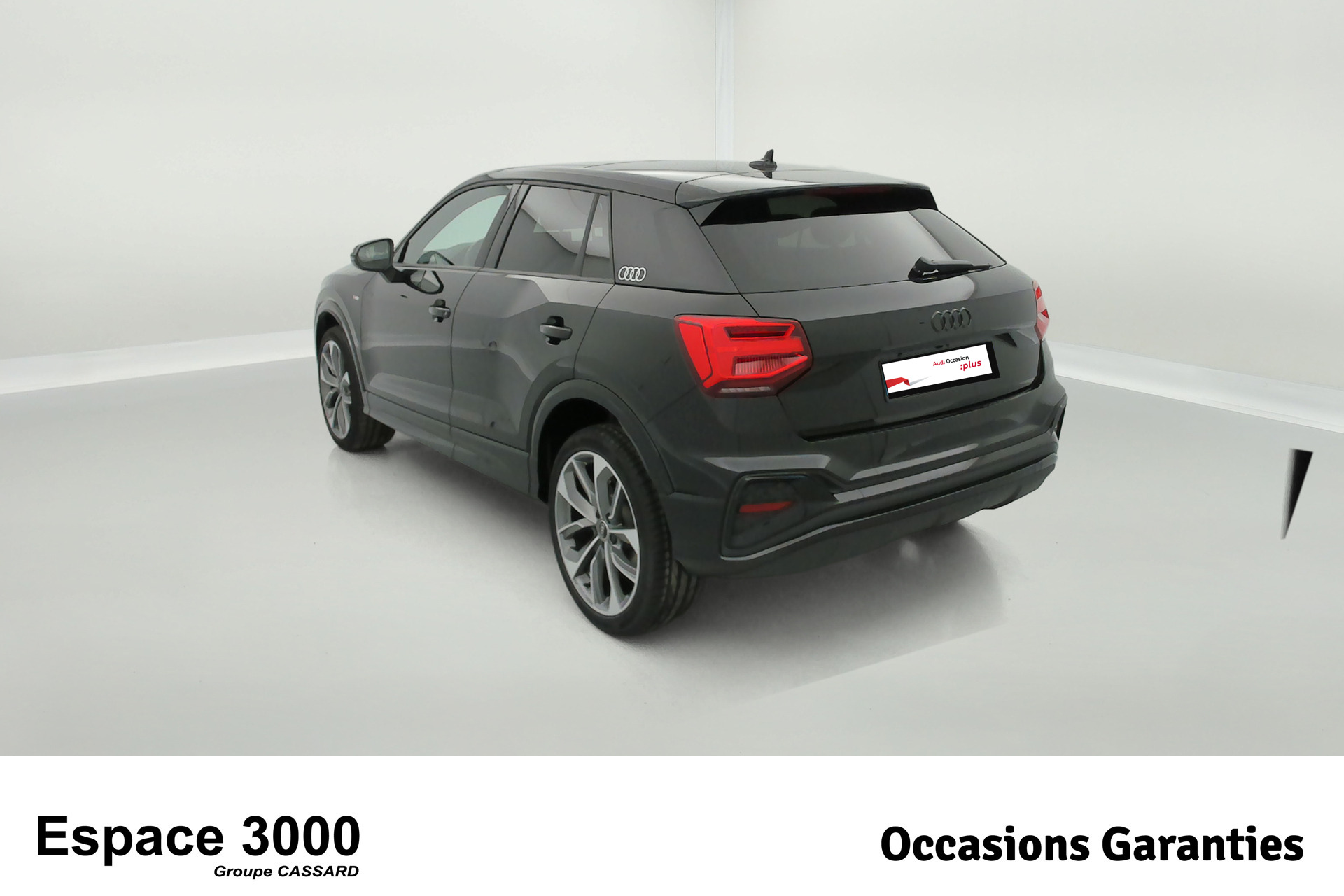 - Pack Esthétique Noir Plus Anneaux Audi en noir sur l'AV et l'AR du véhicule et identification du modèle/moteur en noir
