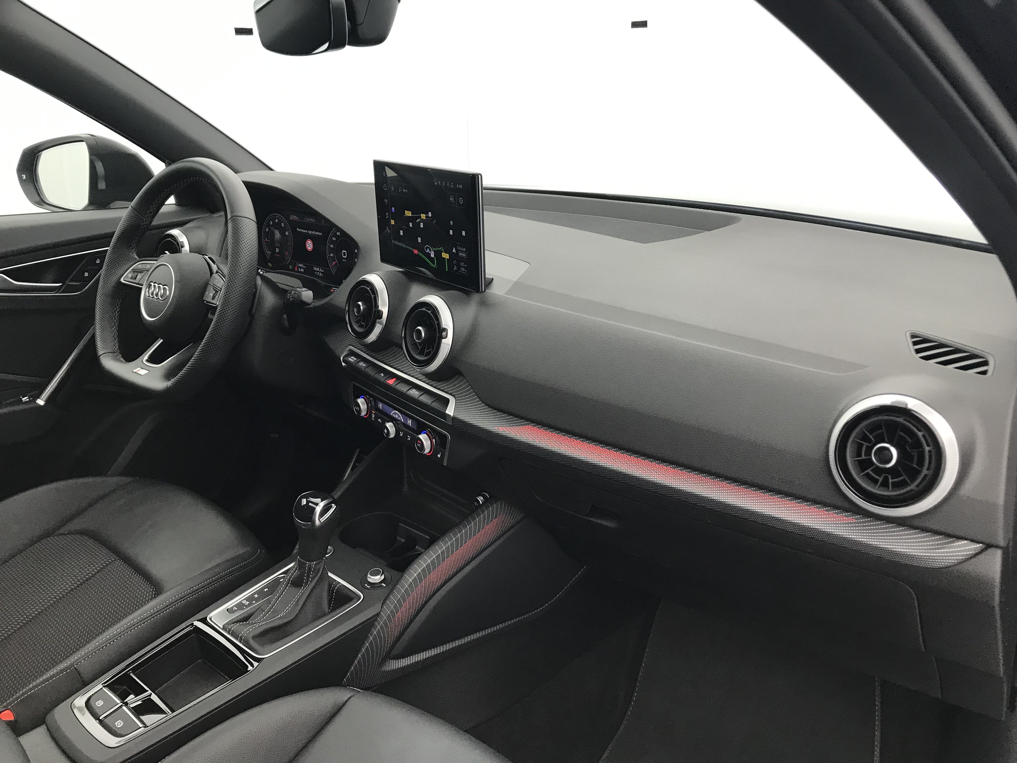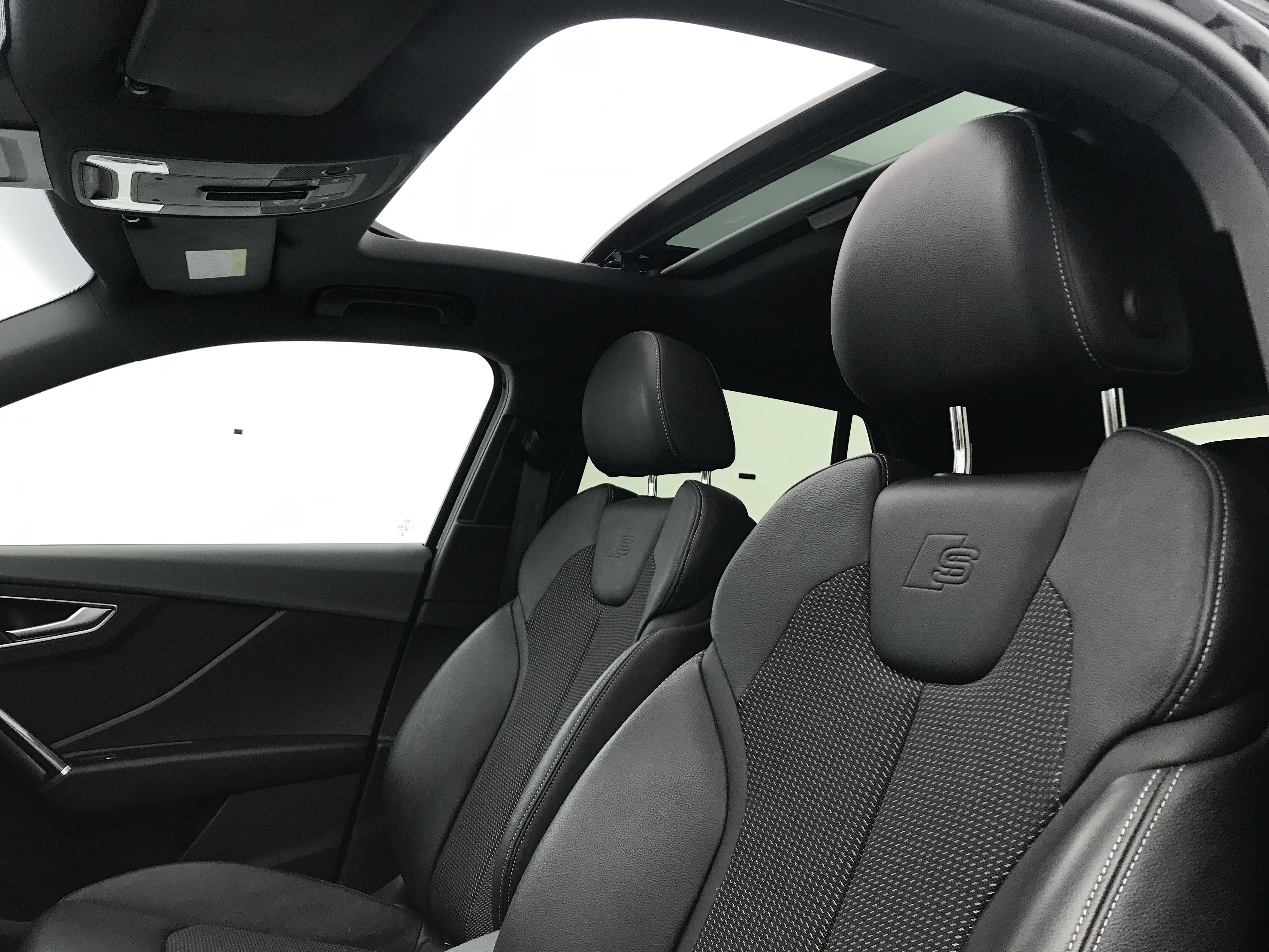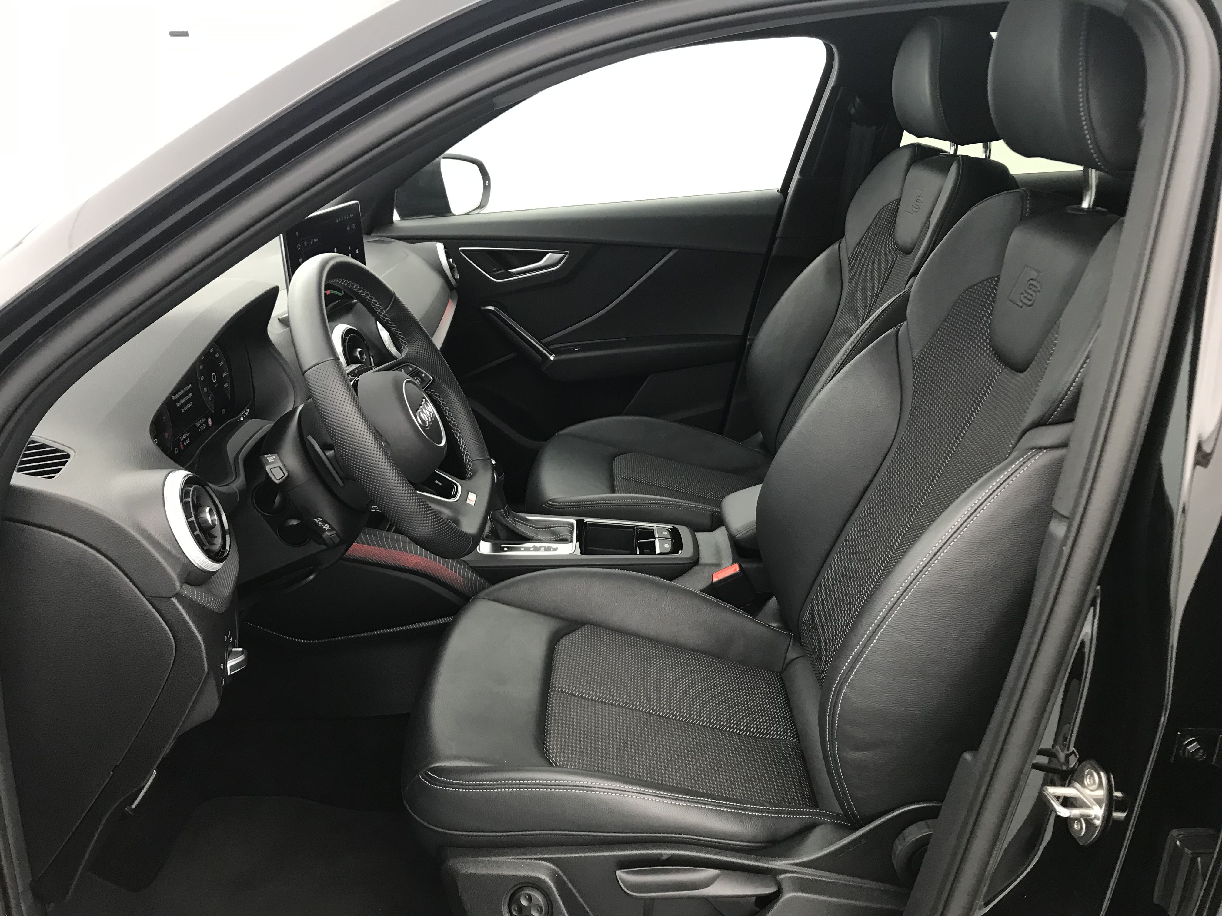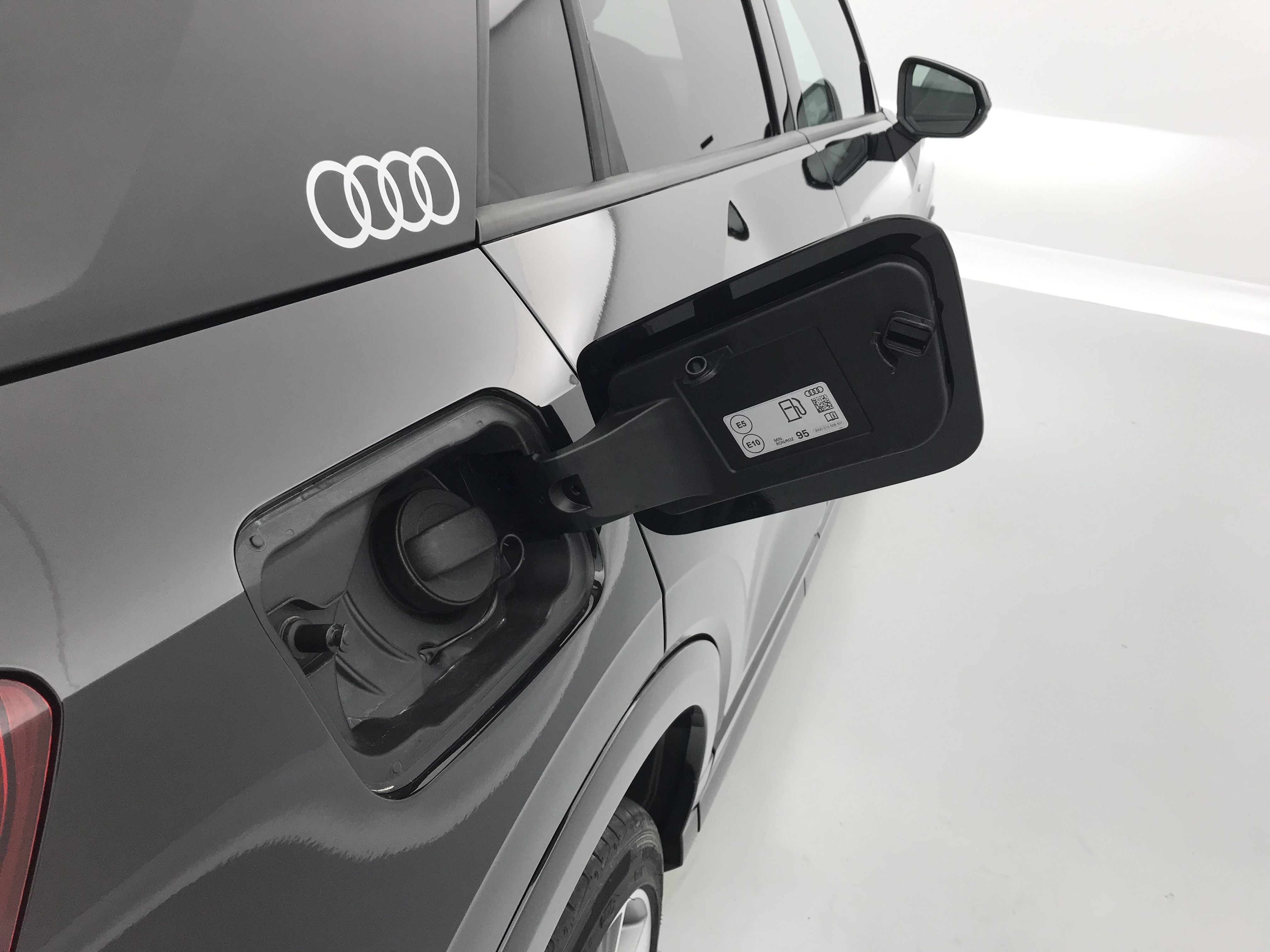 - Pack Style noir mat plus Boitiers de rétroviseurs extérieurs noir mat avec incrustation en argent sélénite, Sideblades en noir mat avec anneaux Audi, LED d'accès avec projection des anneaux Audi