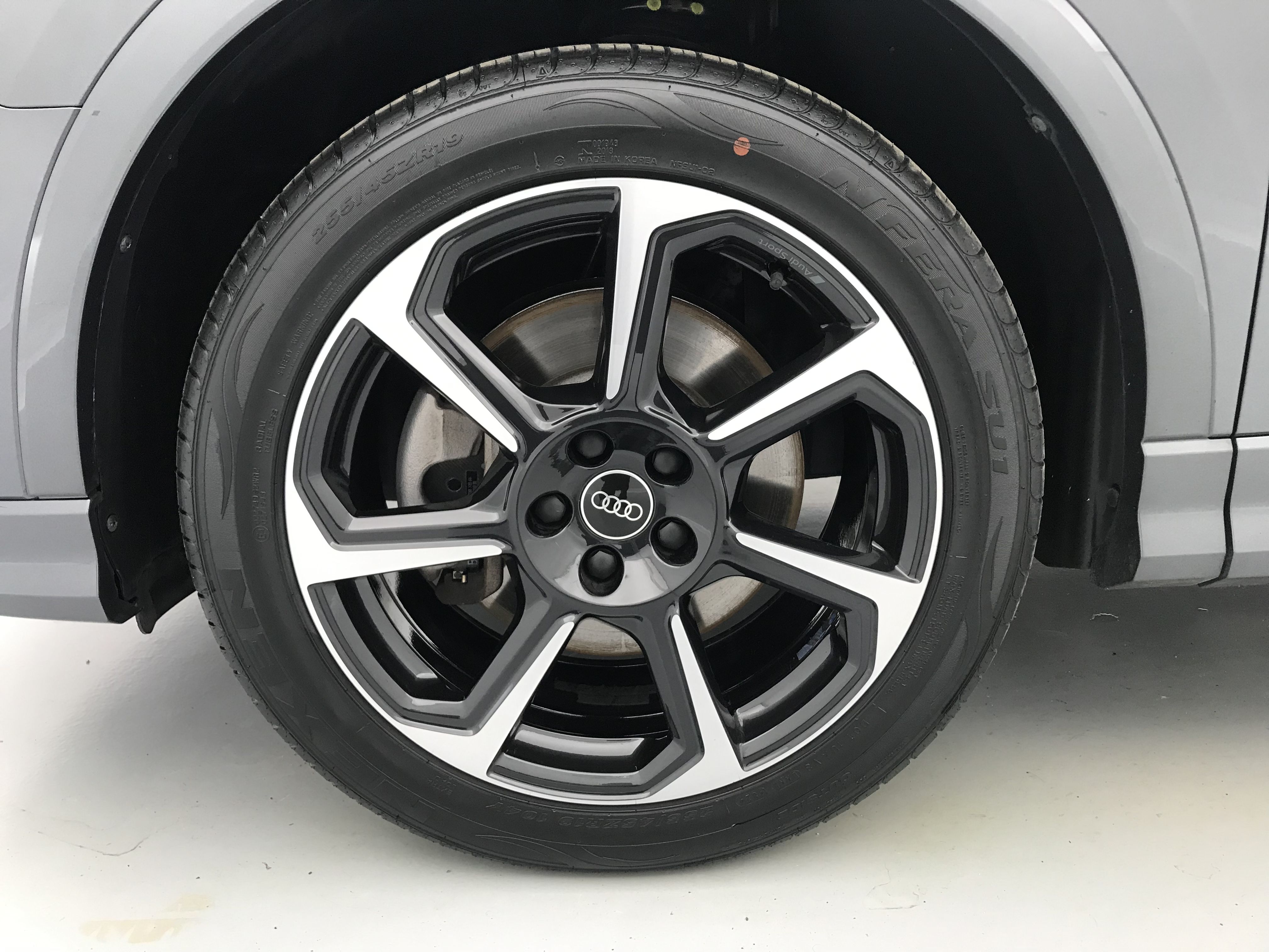 - Jantes en aluminium coulé 19" Audi Sport 7 branches en hélice noir anthracite brillant, polies 8.5Jx19", pneus 255/45 R19