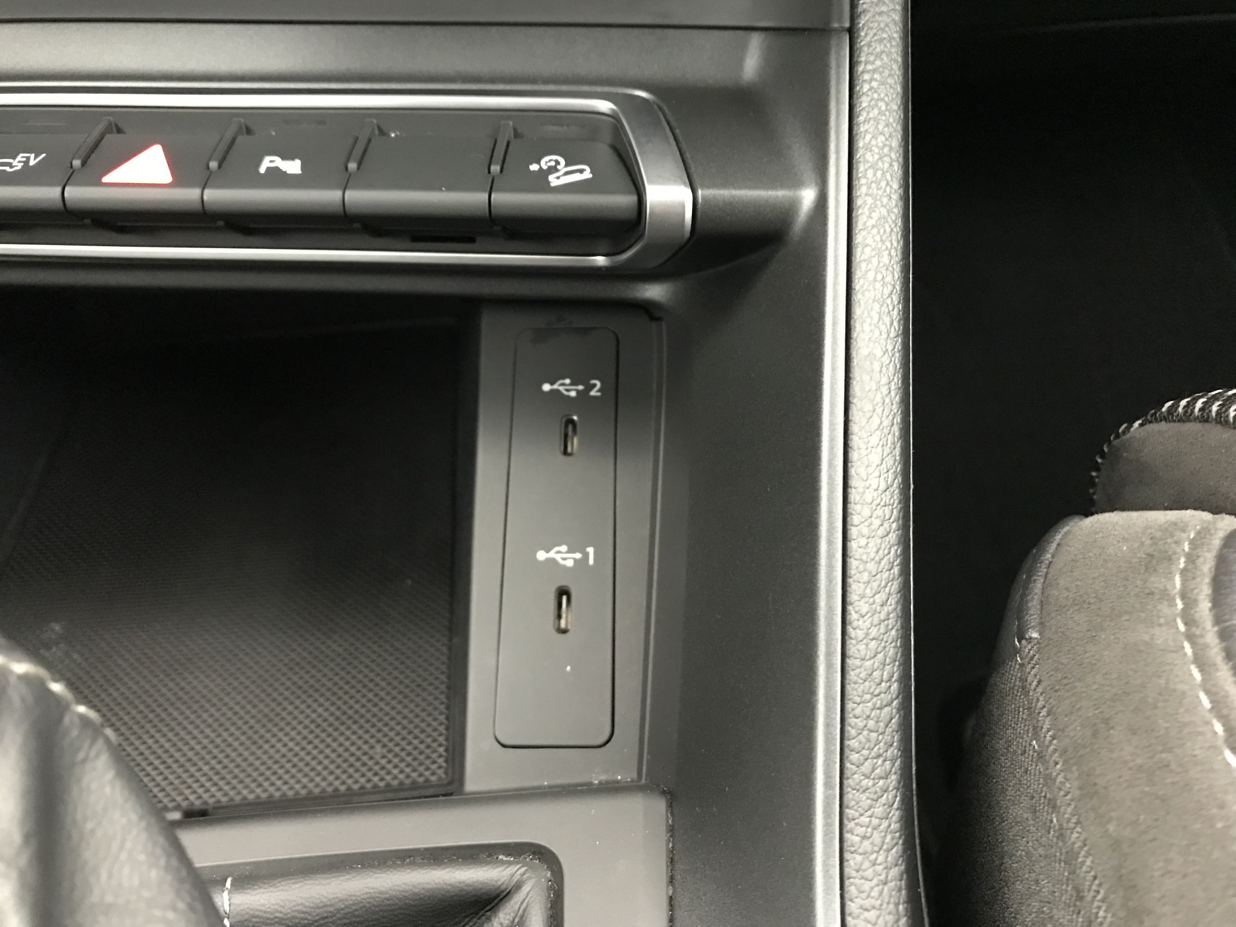 - 2 prises USB AR (type-C) et prise 12V dans la console centrale AR