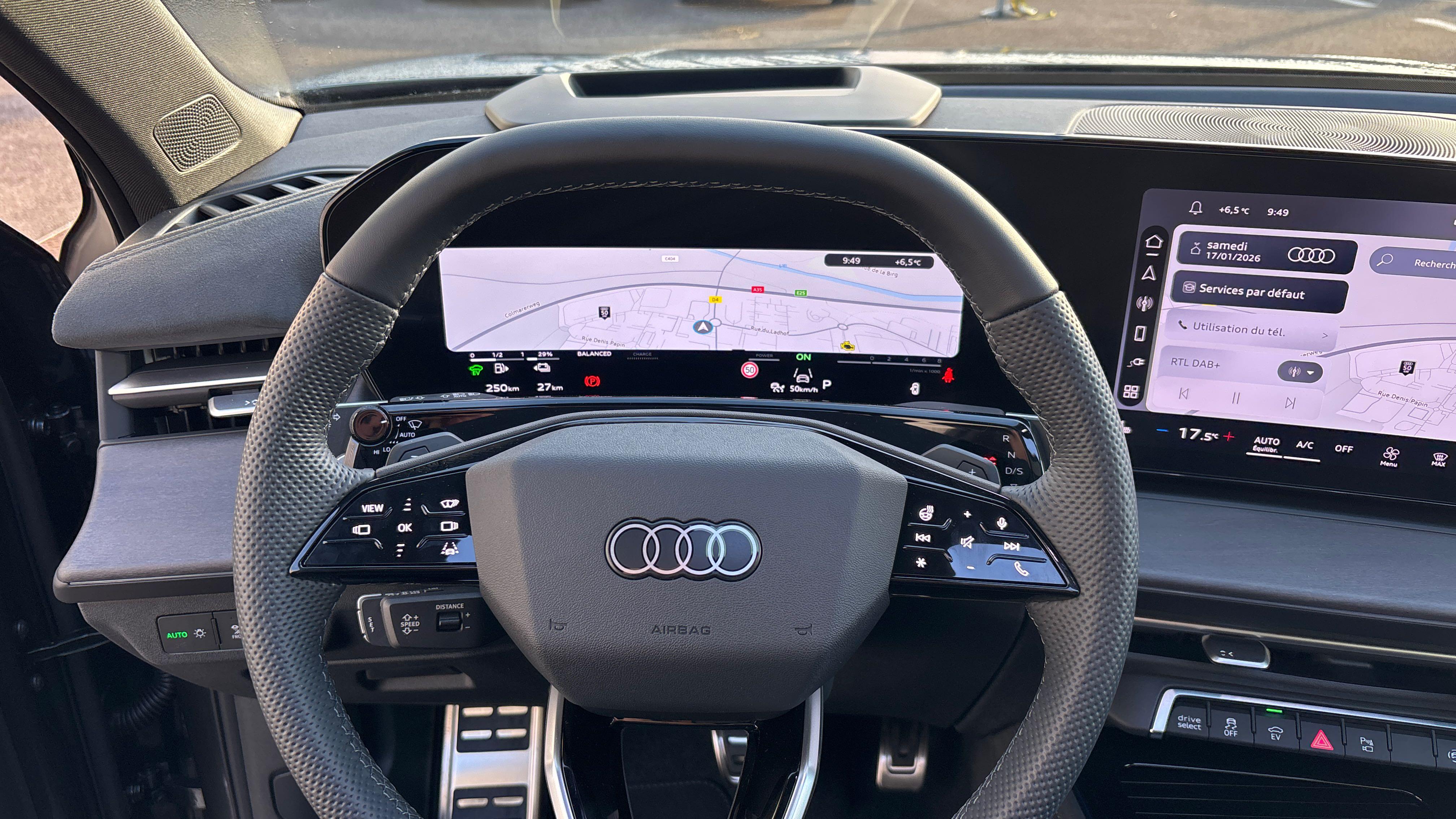 - Volant sport multifonction en cuir à 3 branches, aplati en haut et en bas, avec palettes et chauffage de volant