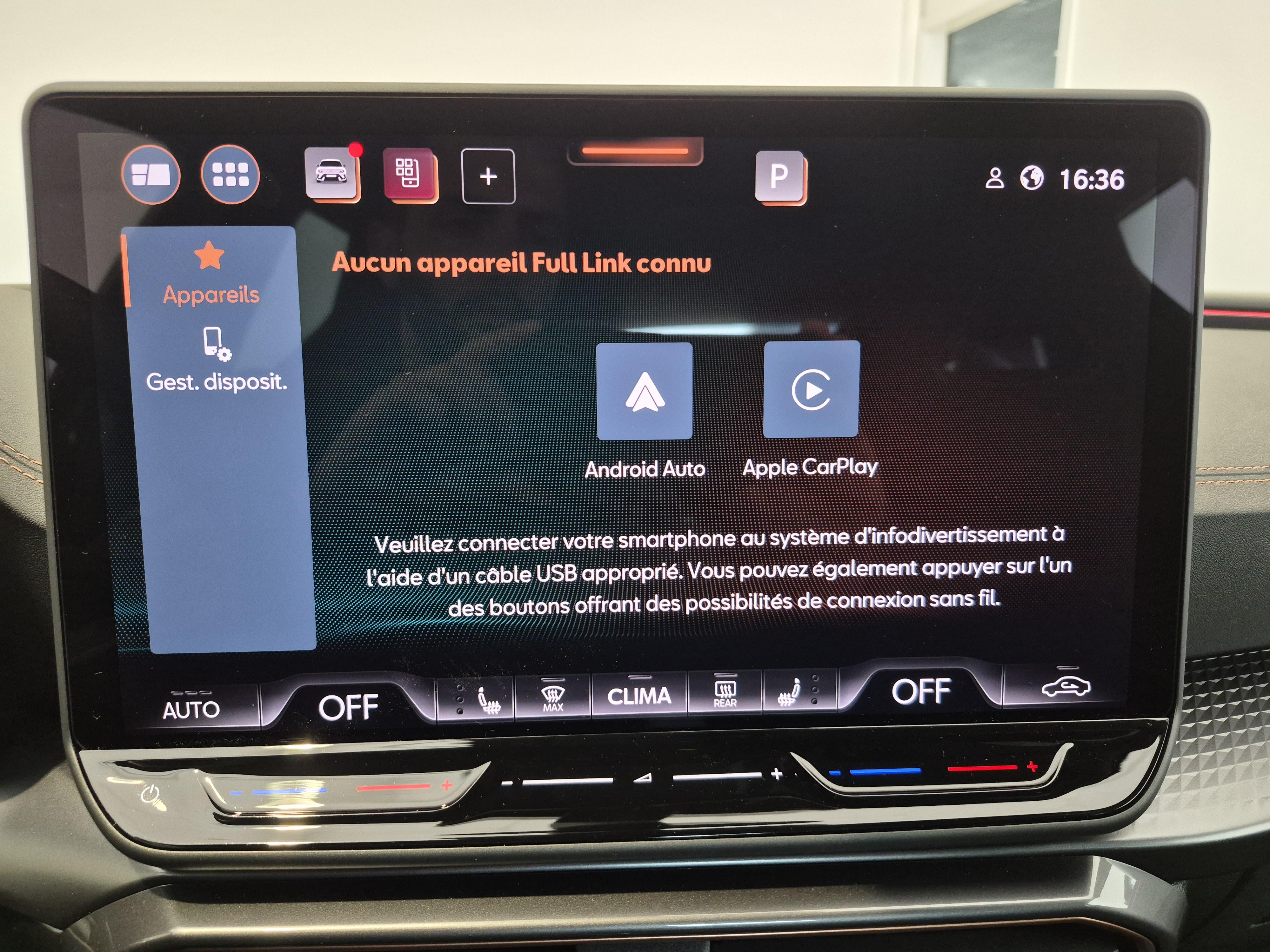 - Full Link avec CarPlay et Android Auto sans fil