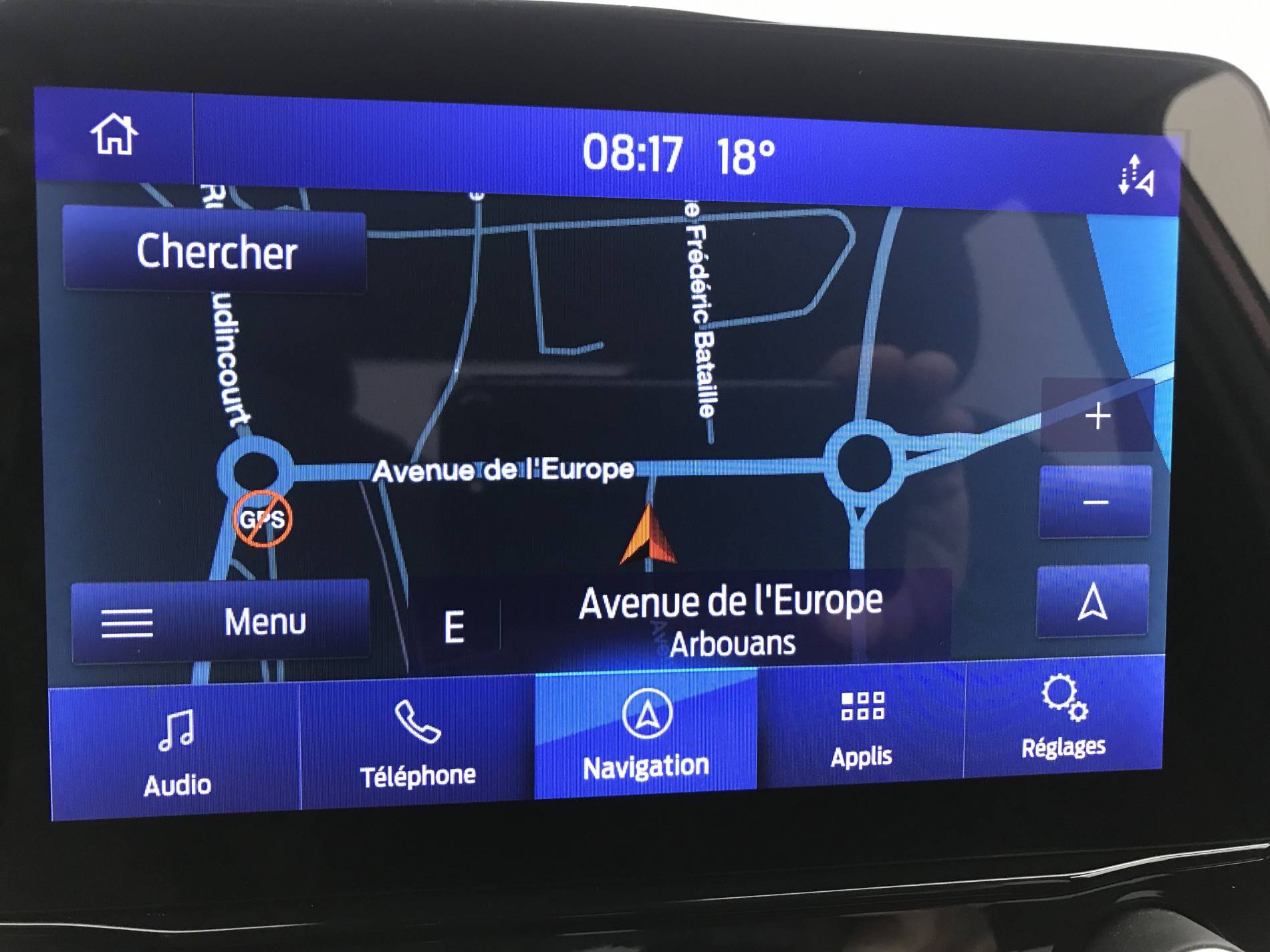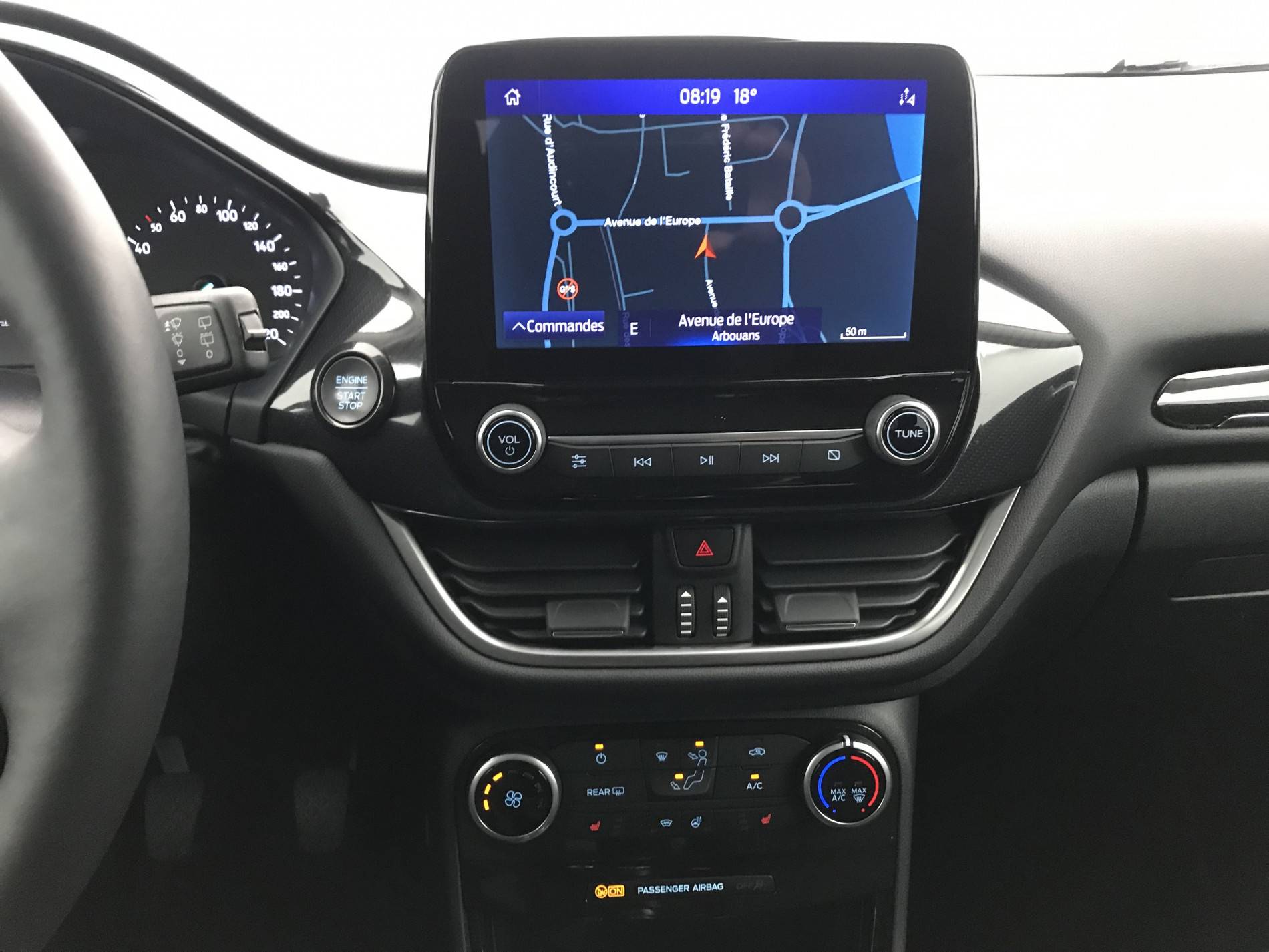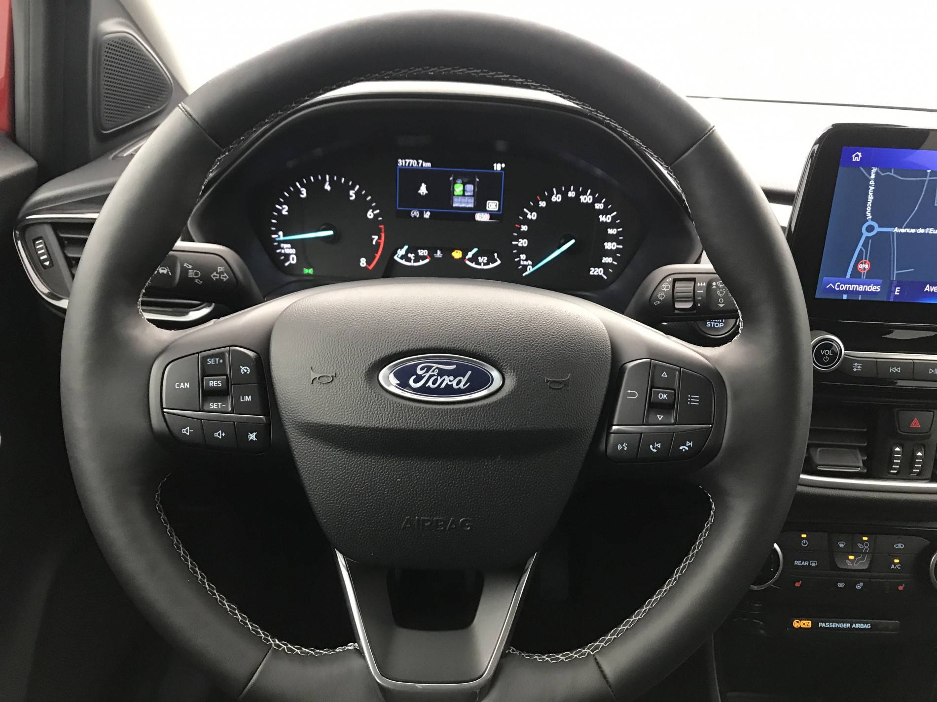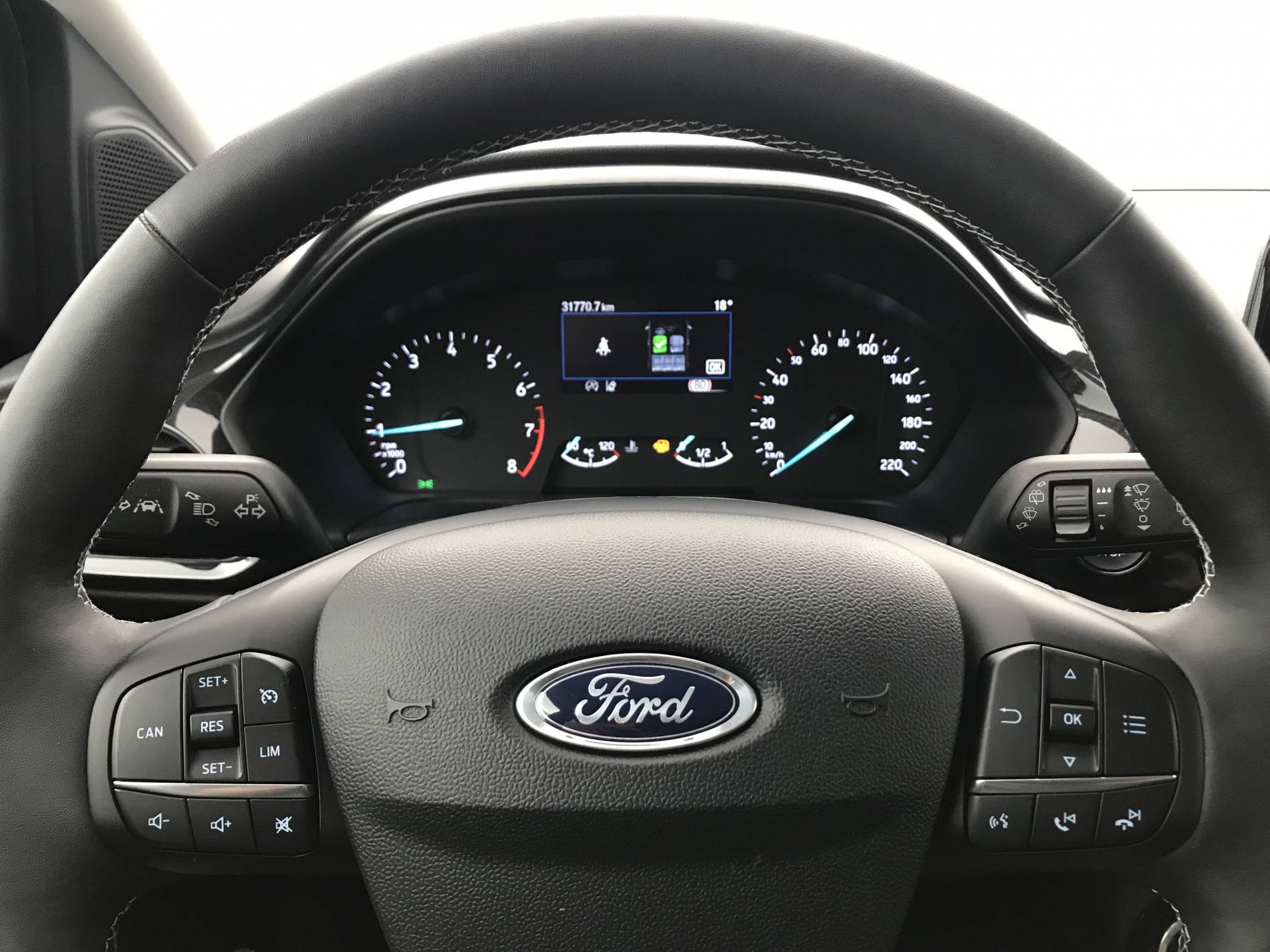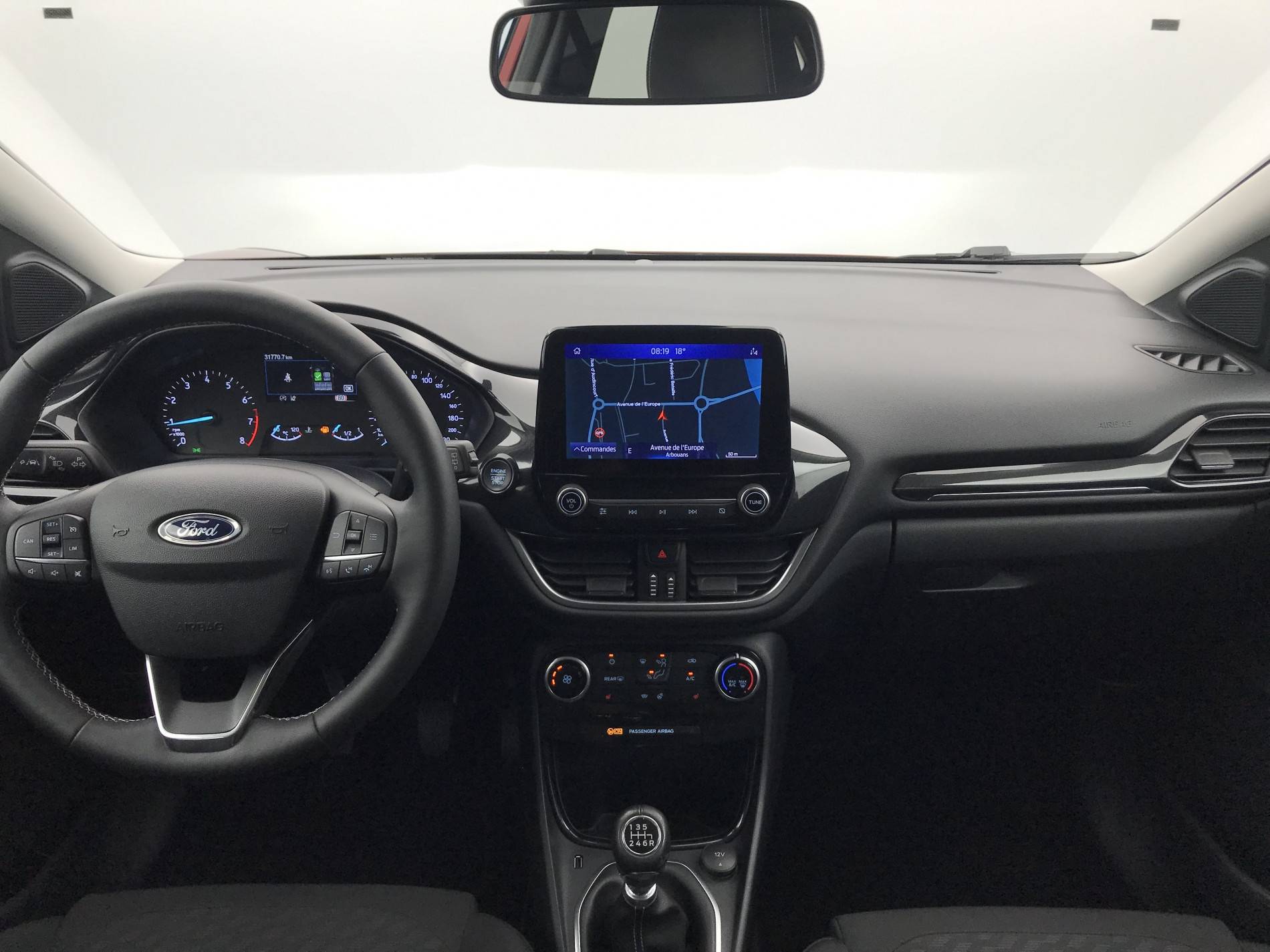 - Système audio Ford SYNC3 avec écran tactile 8", commandes vocales, 2 ports USB, alerte contresens, compatible AppLink, Apple CarPlay et Android auto, 6 HP