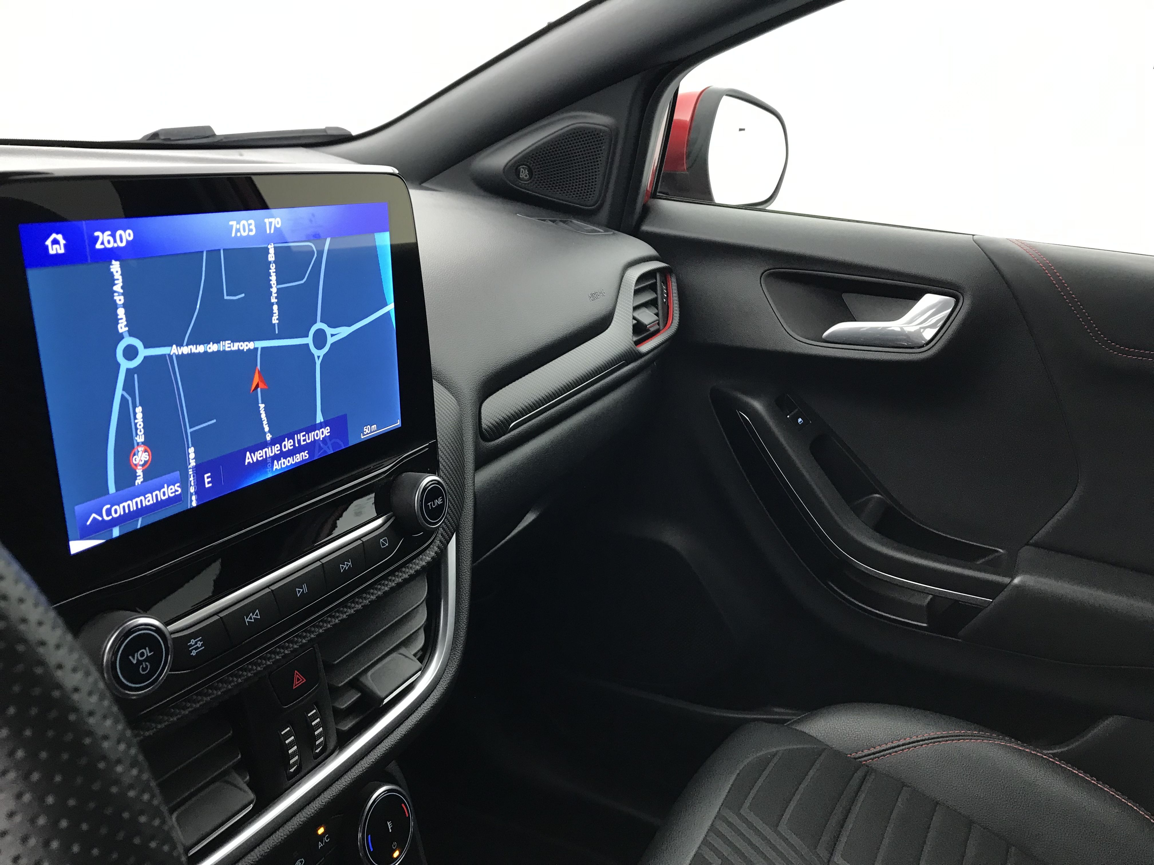 - Système audio B&O avec SYNC3 avec écran tactile 8", commandes vocales, 2 ports USB, AppLink, Apple CarPlay et Android auto, 10 HP