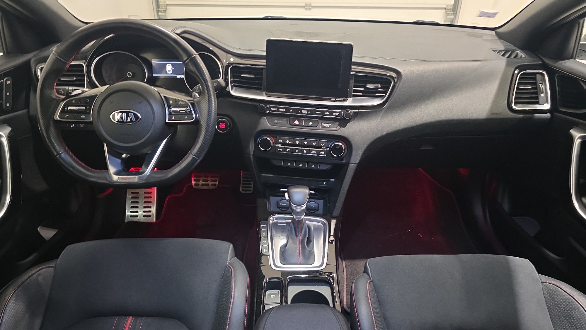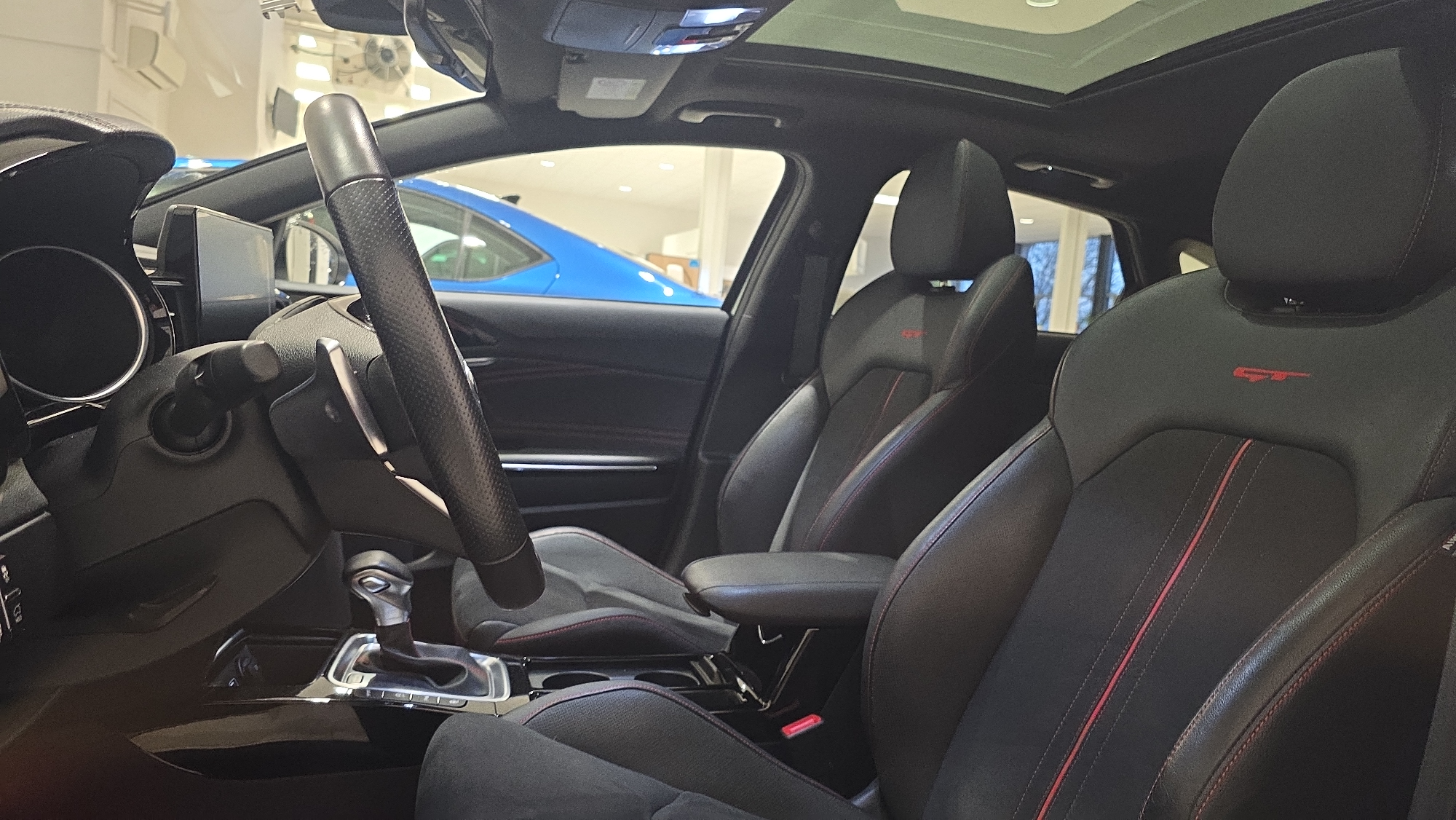 - Sellerie GT cuir/suédine noir avec surpiqûres rouges