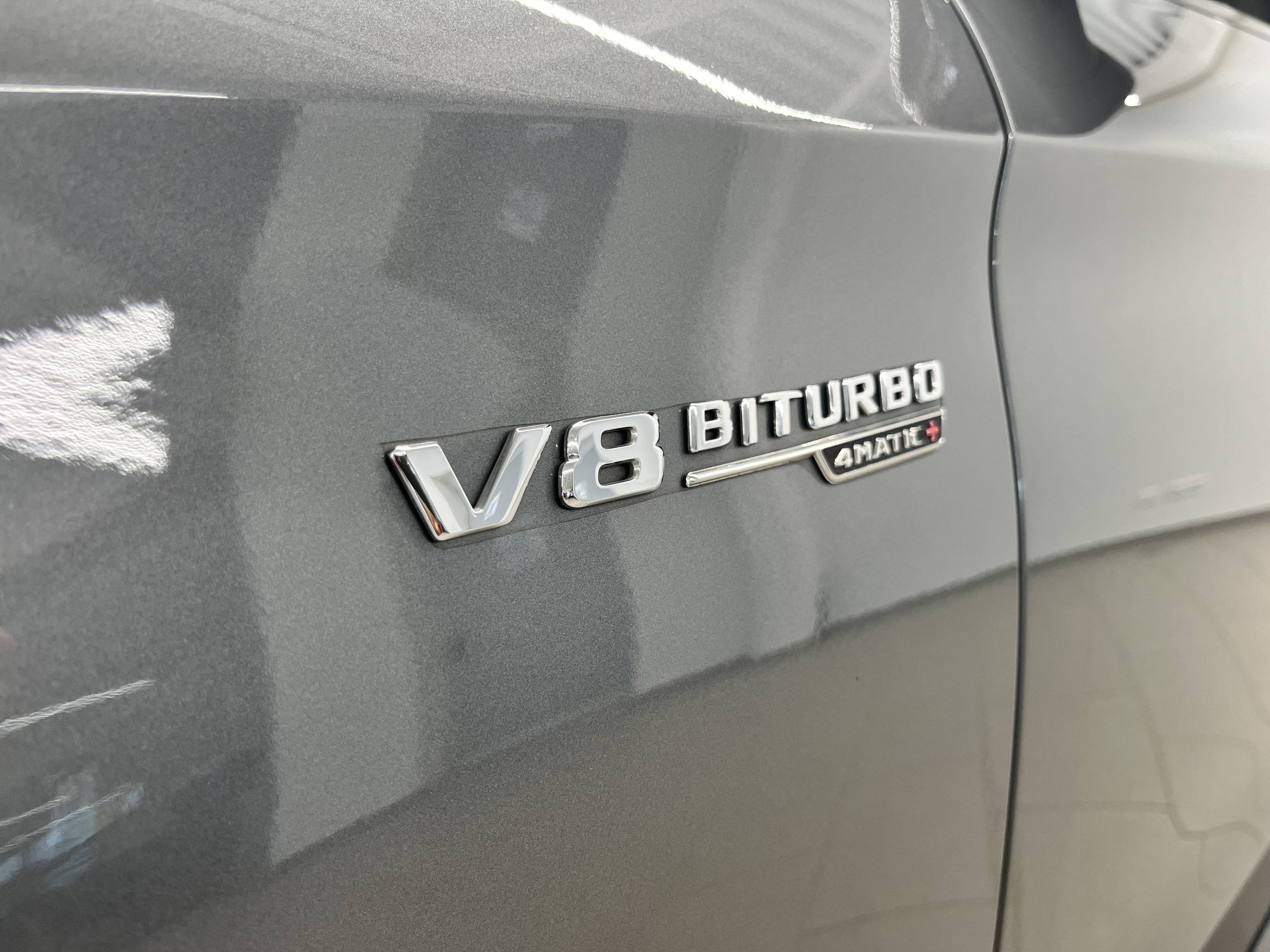 - Inscription "V8 Biturbo 4MATIC+" sur les ailes AV