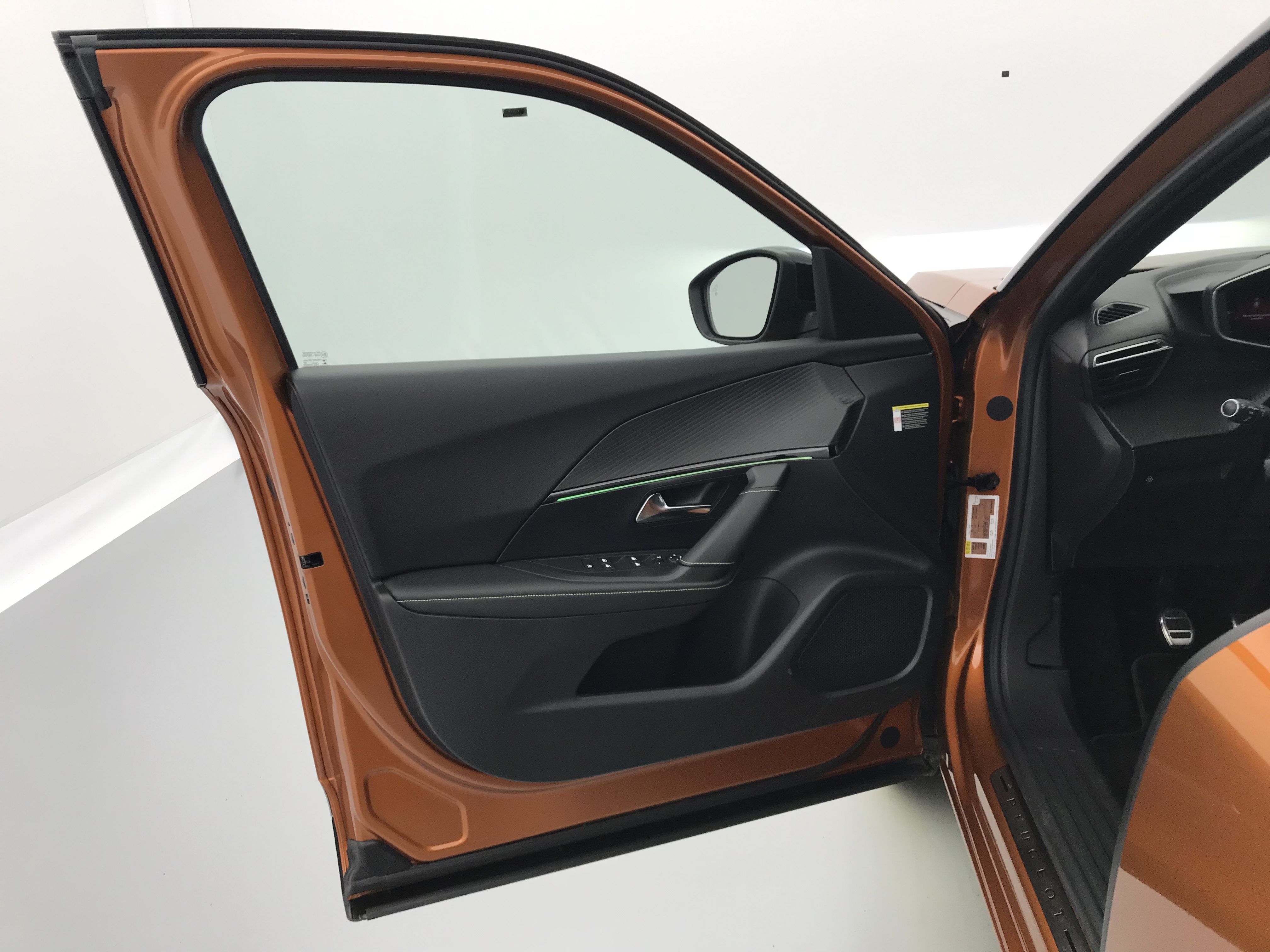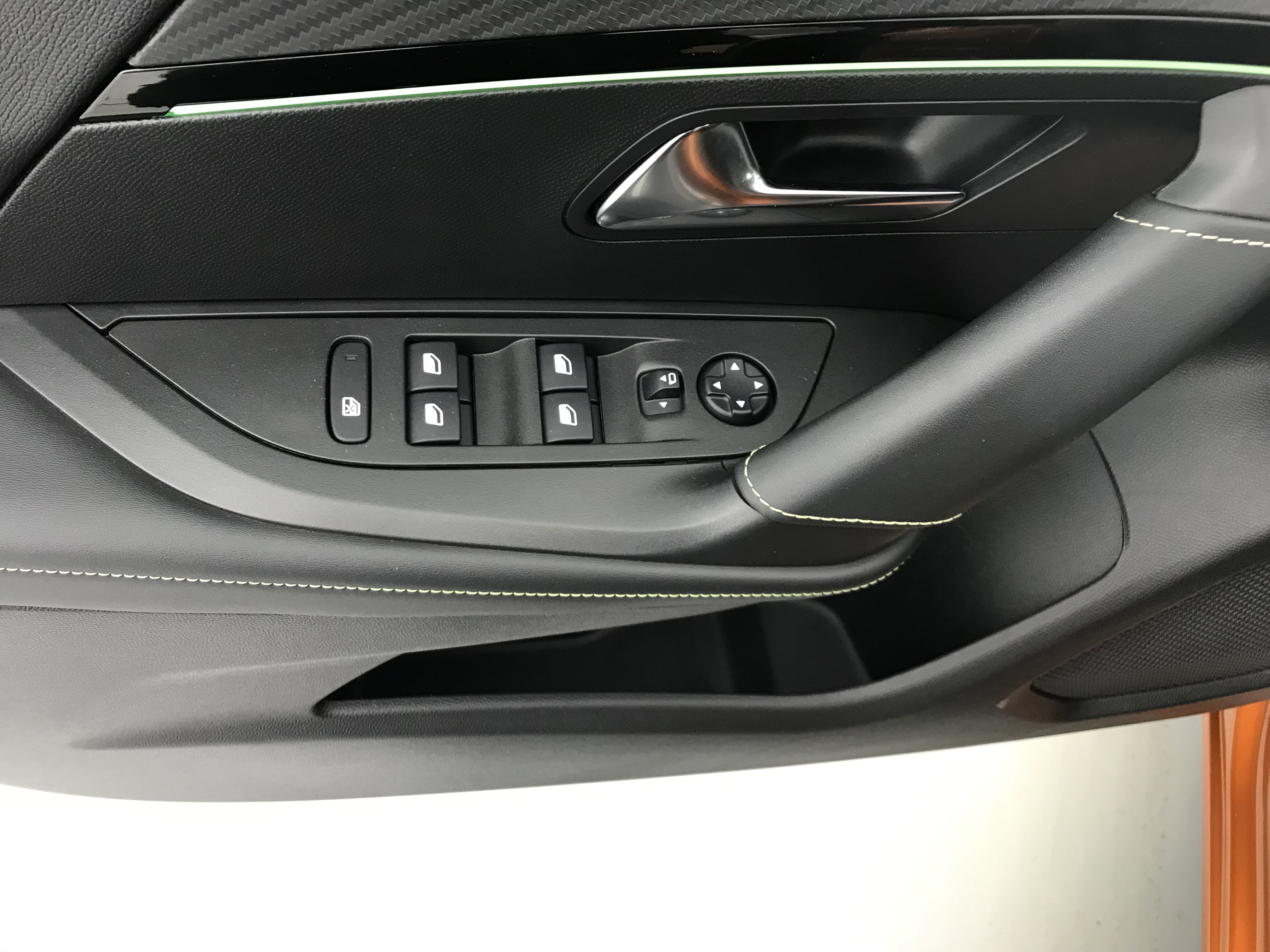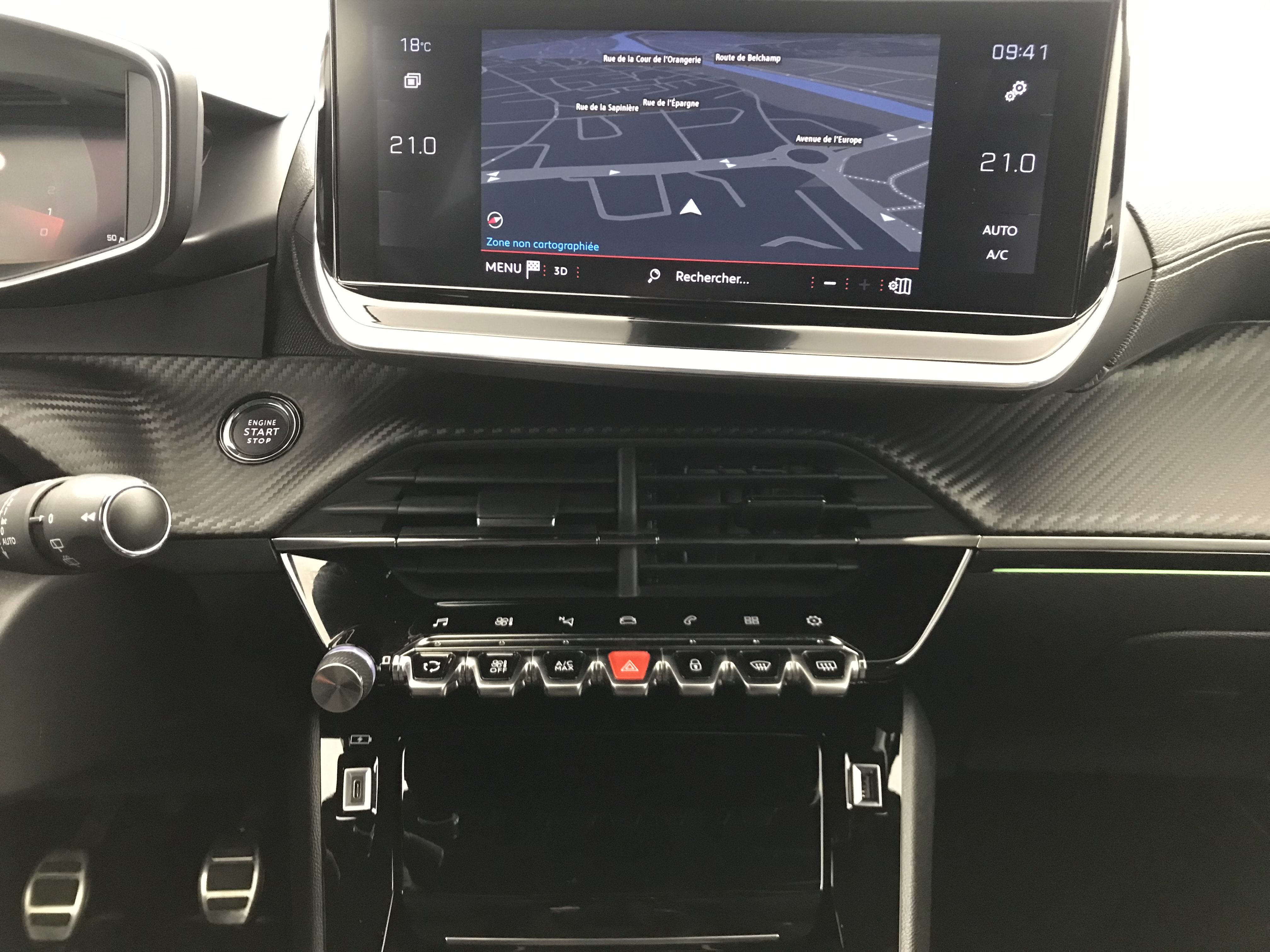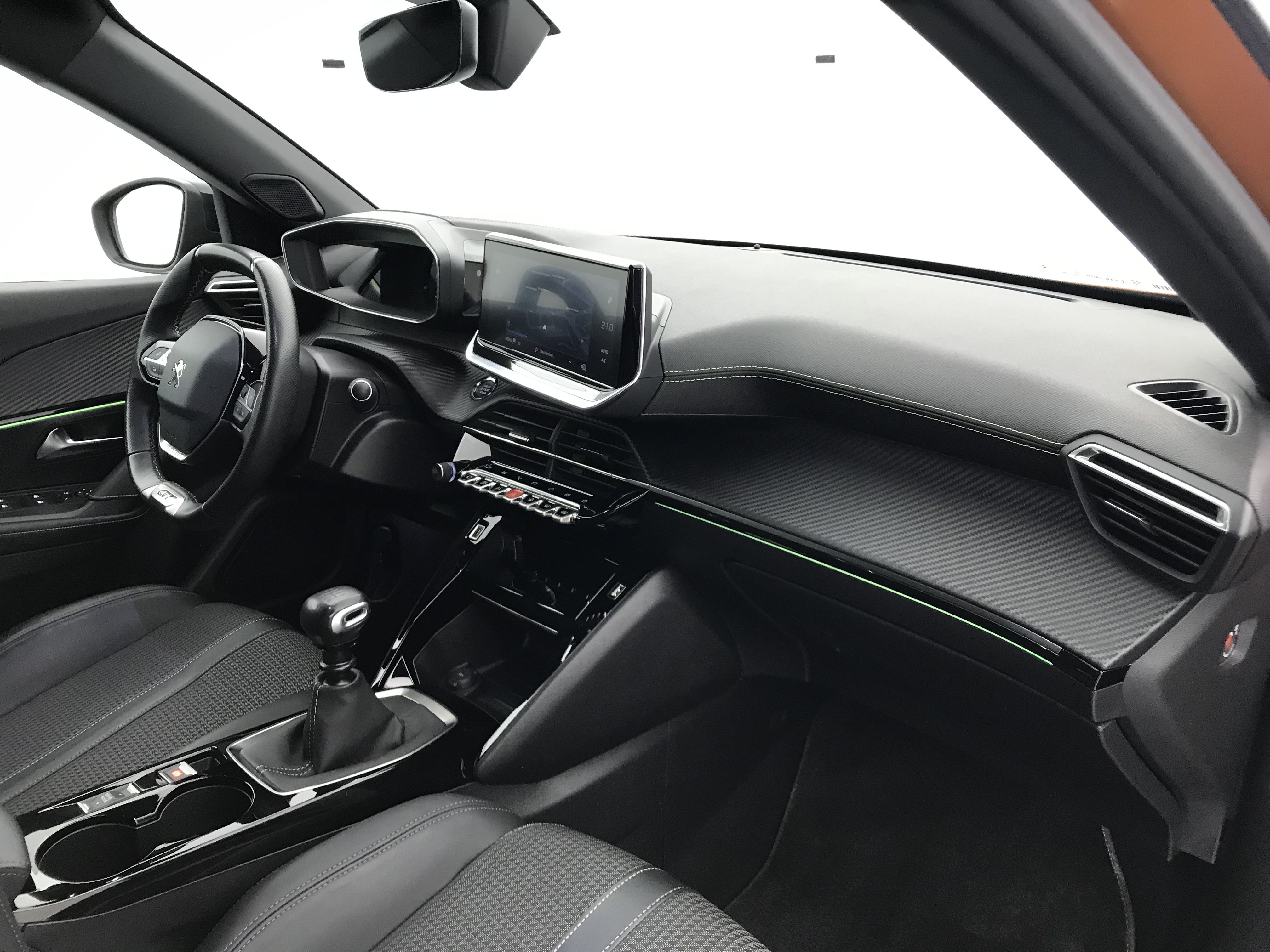 - Planche de bord slush surpiquée et panneaux de portes AV avec décors aspect carbone et éclairage polyambiant 8 couleurs