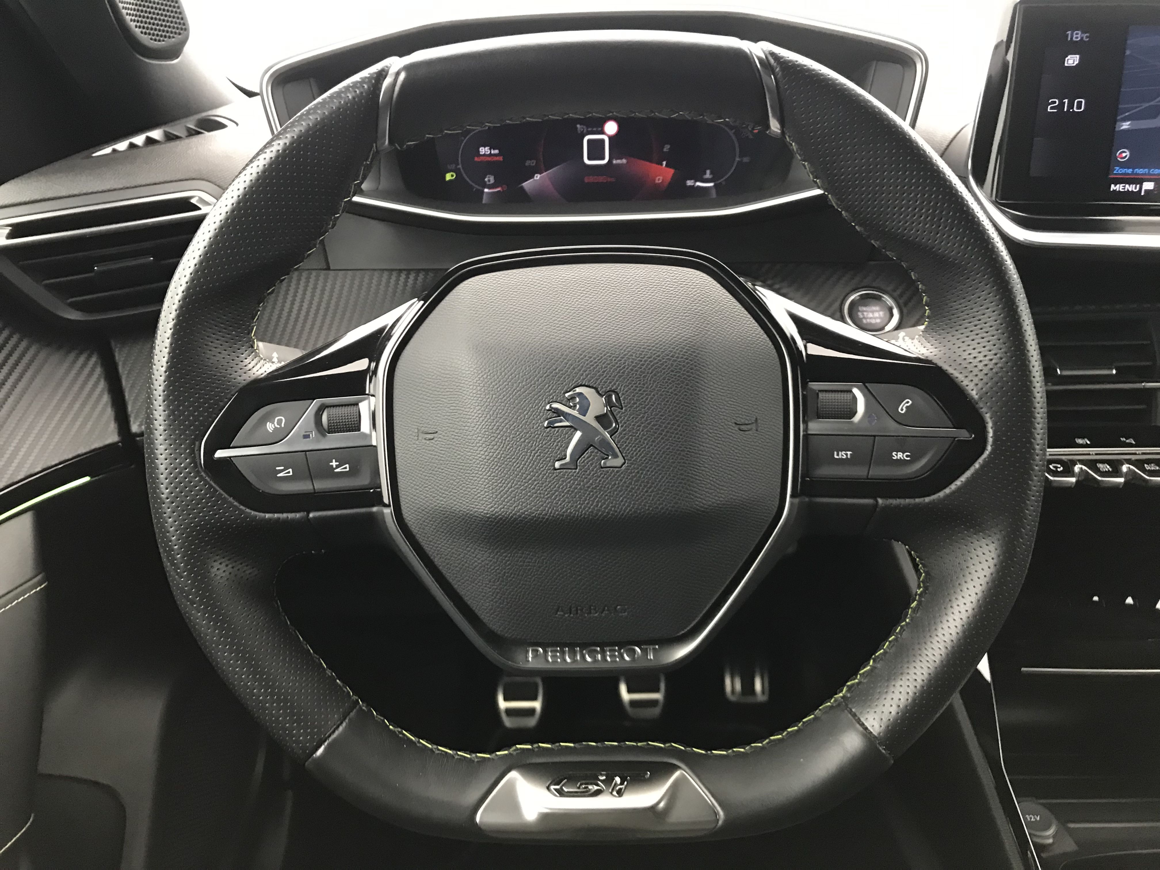 - Lion chromé et badge GT Line et commandes multimédia sur volant