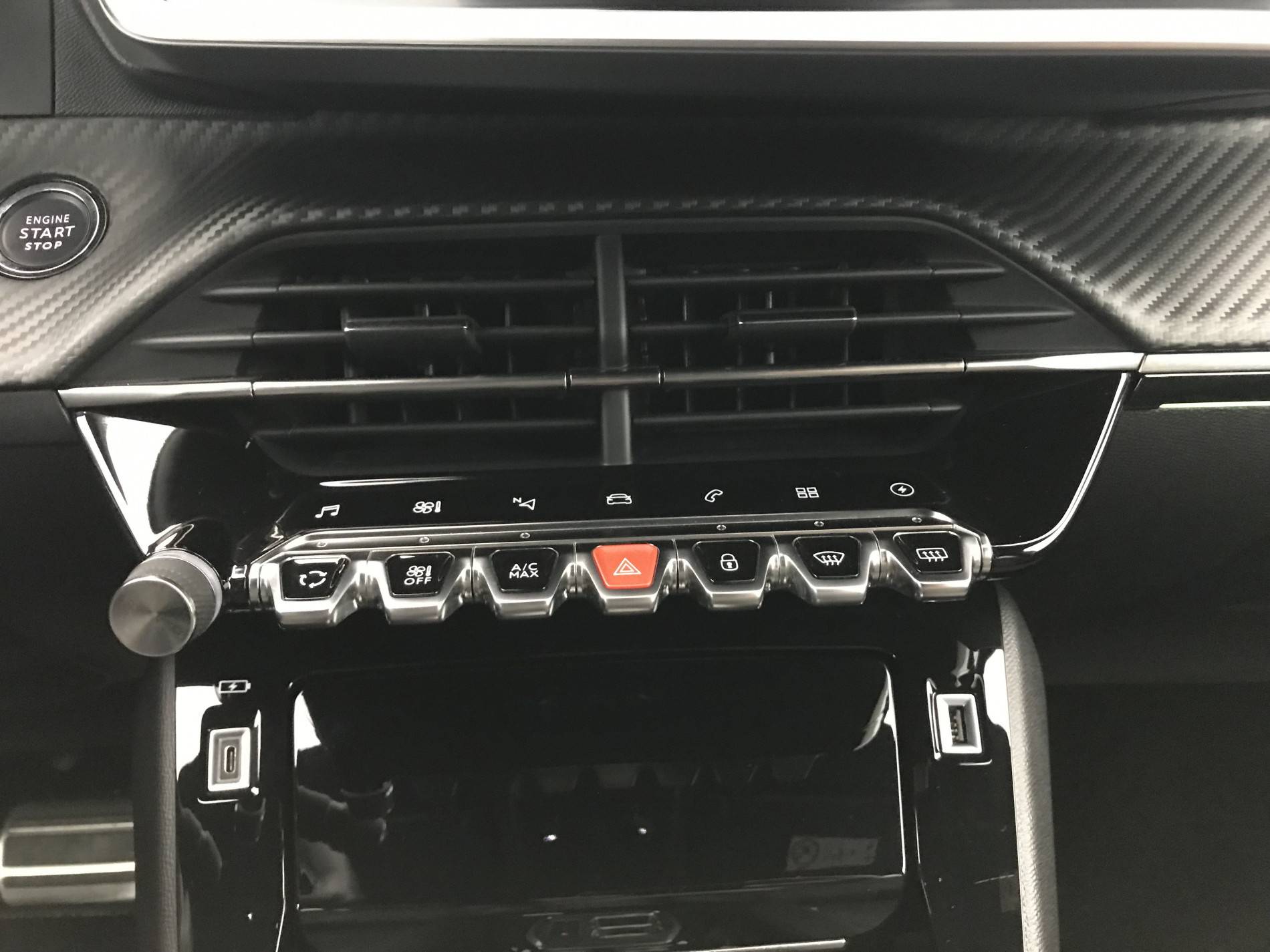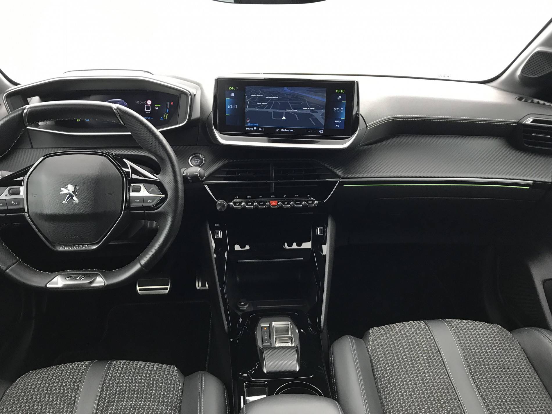 - Planche de bord slush surpiquée et panneaux de portes AV avec décors aspect carbone et éclairage polyambiant 8 couleurs