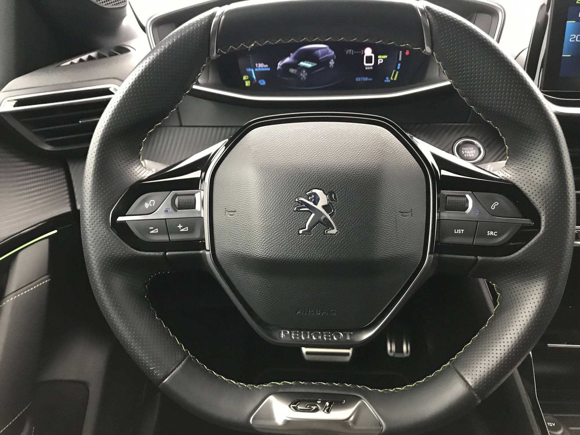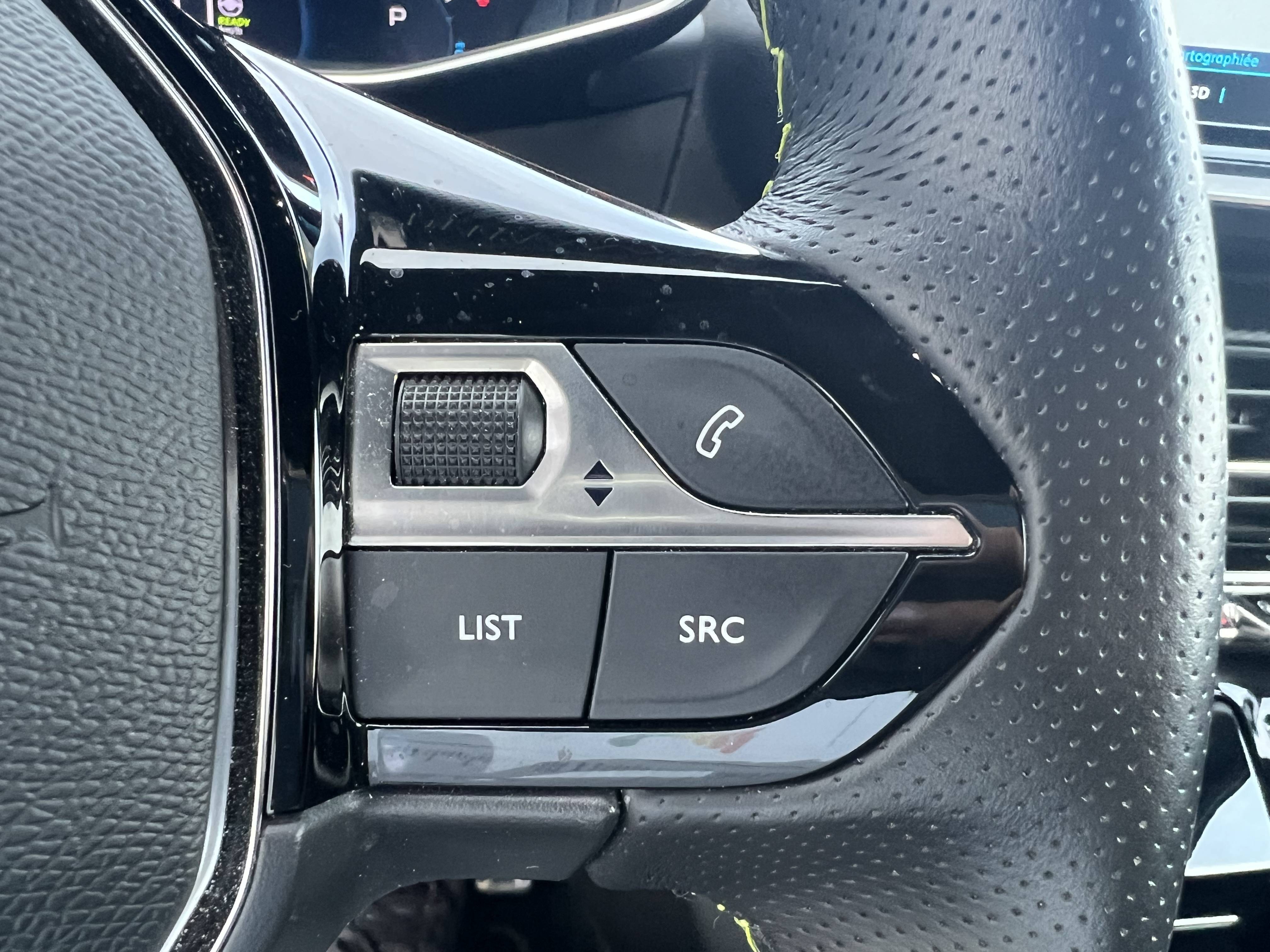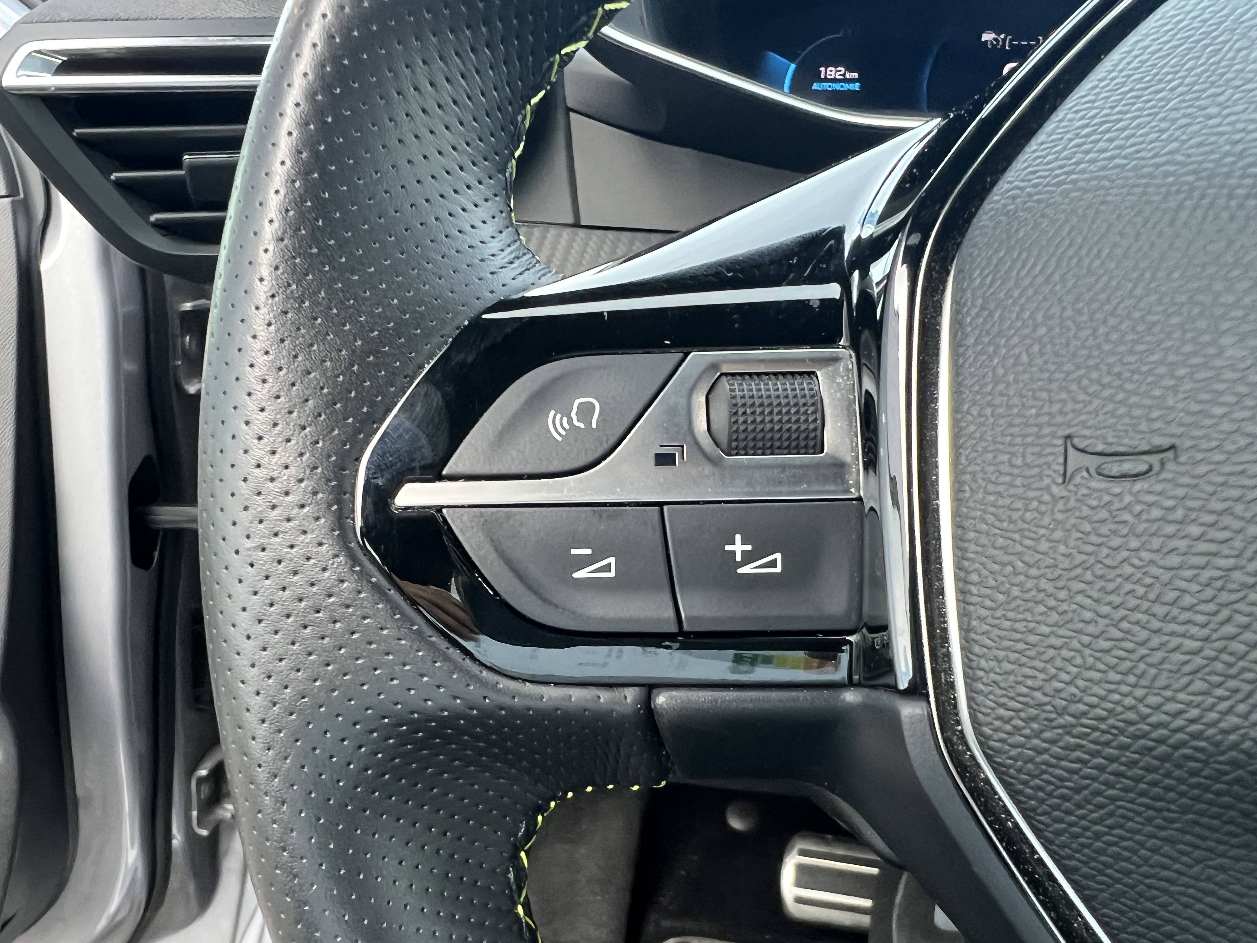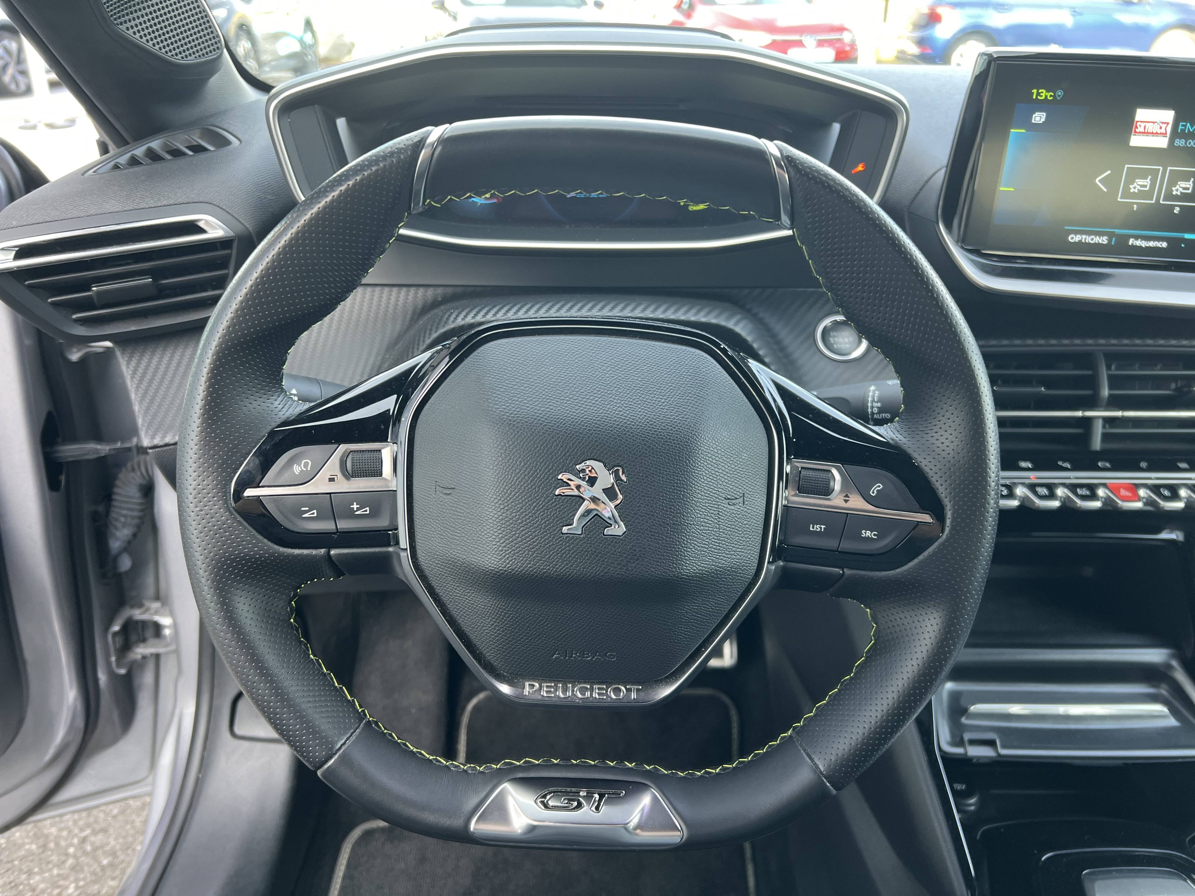 - Lion chromé et badge GT et commandes multimédia sur volant