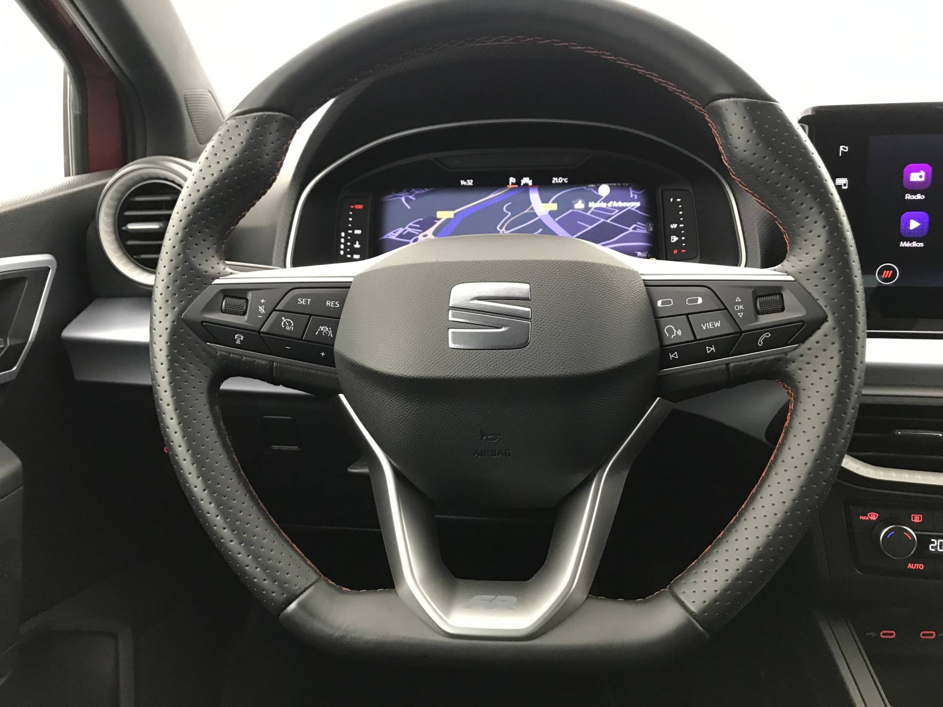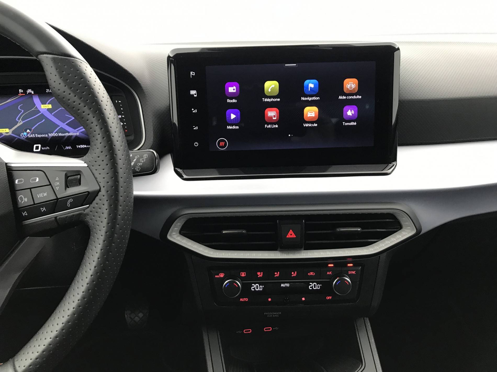 - Volant multifonctions et levier de vitesse en cuir