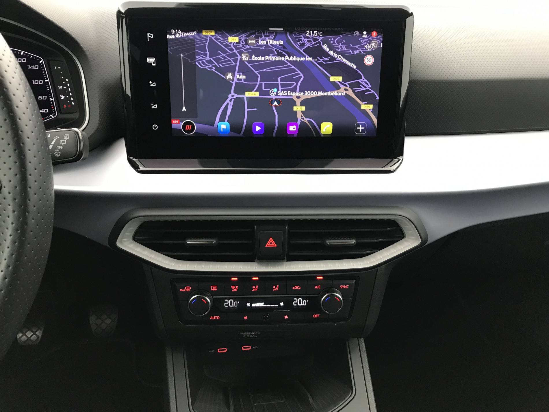 - Eclairage d'ambiance intérieur à LED blanc au niveau de la console centrale et du plancher AV