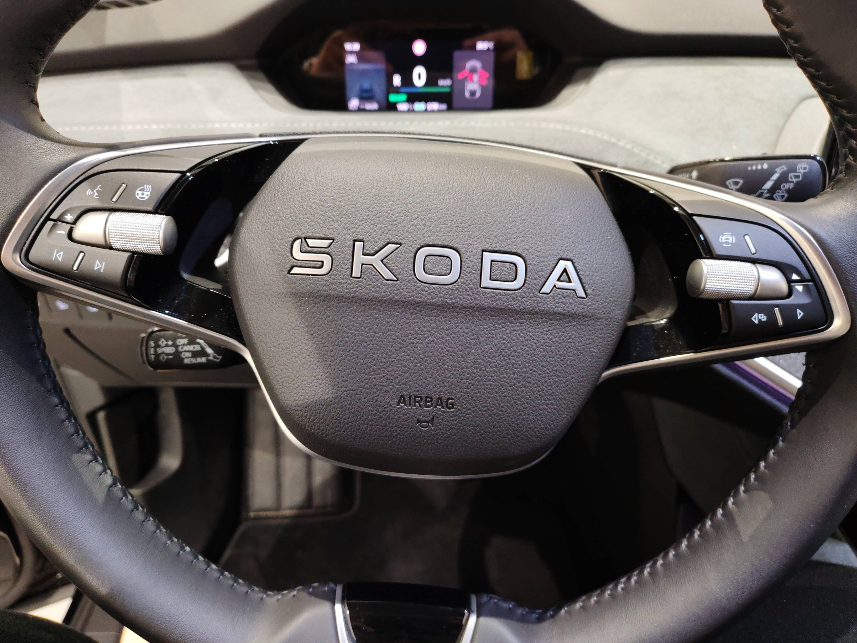 - Détails intérieur en Unique dark chrome (rendu alu mat) - buses de ventilation, poignées de portes, lettrage sur le volant