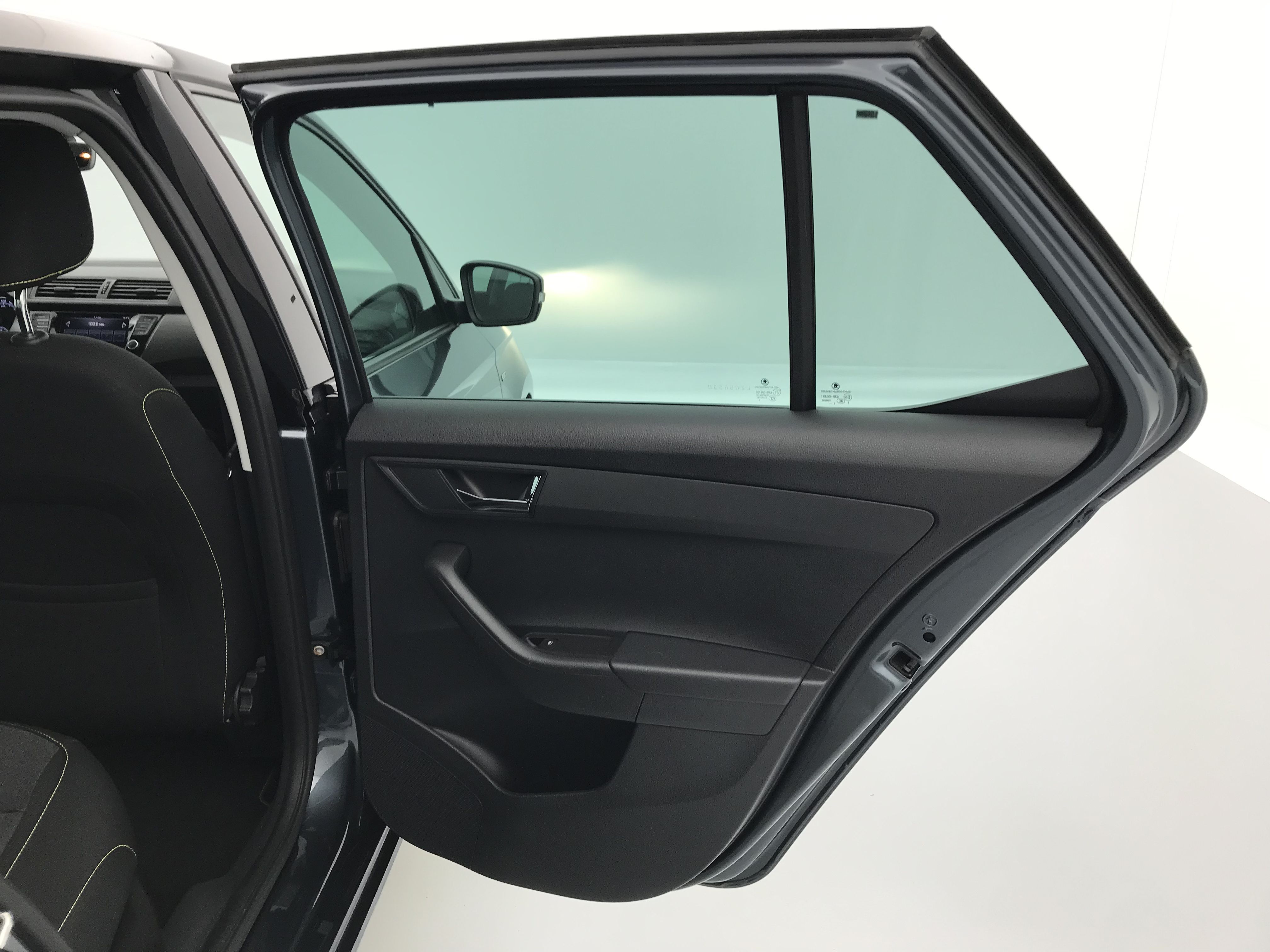 - Eléments couleur chrome/argent : poignées intérieurs de portes