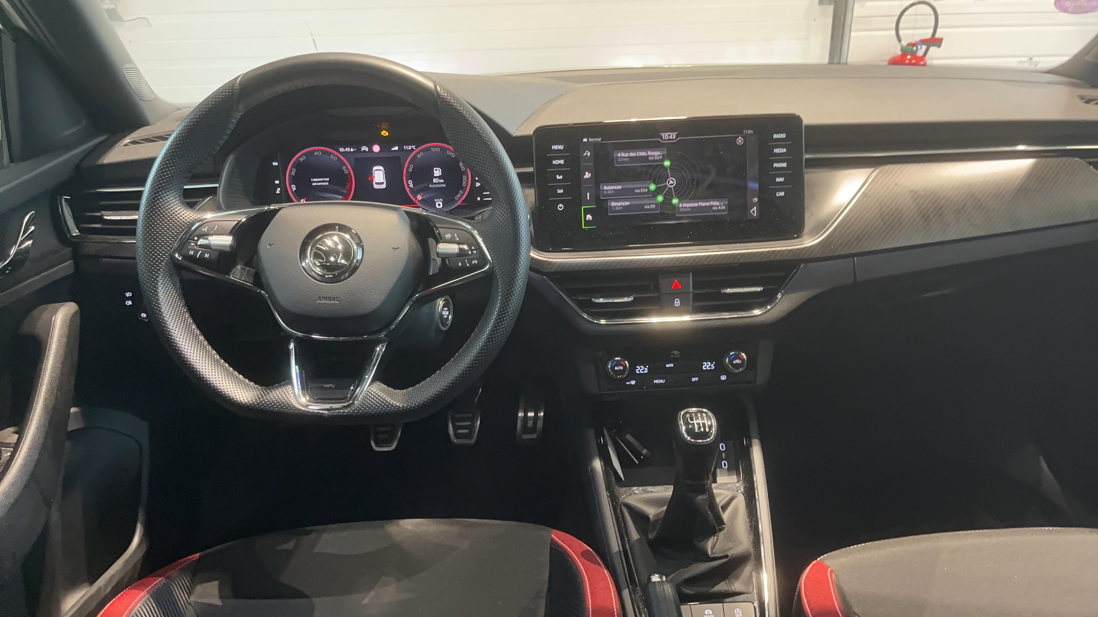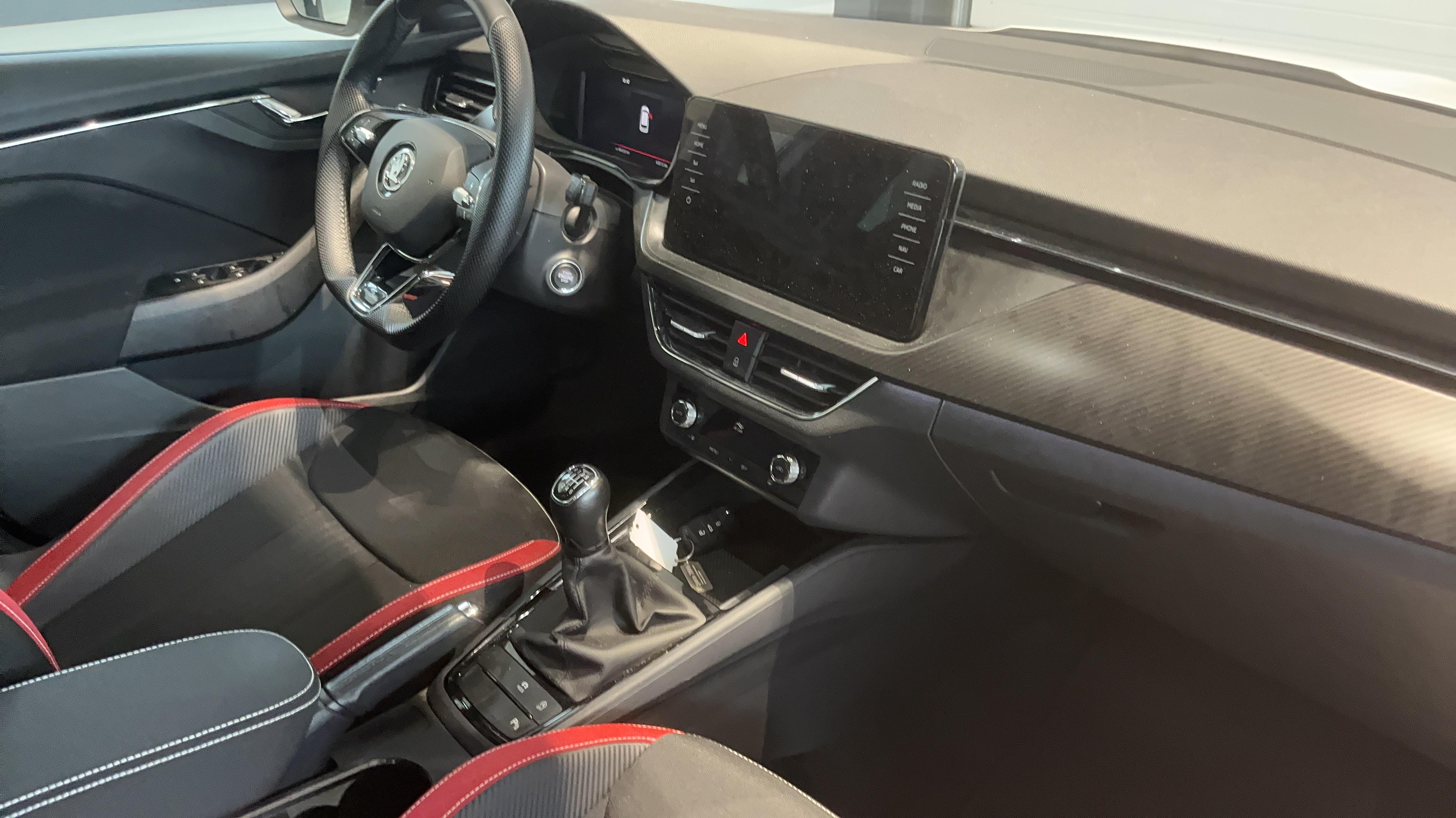 - Insert décoratif sur la planche de bord effet Carbone avec liseré rouge et inserts de porte matériau synthétique effet carbone