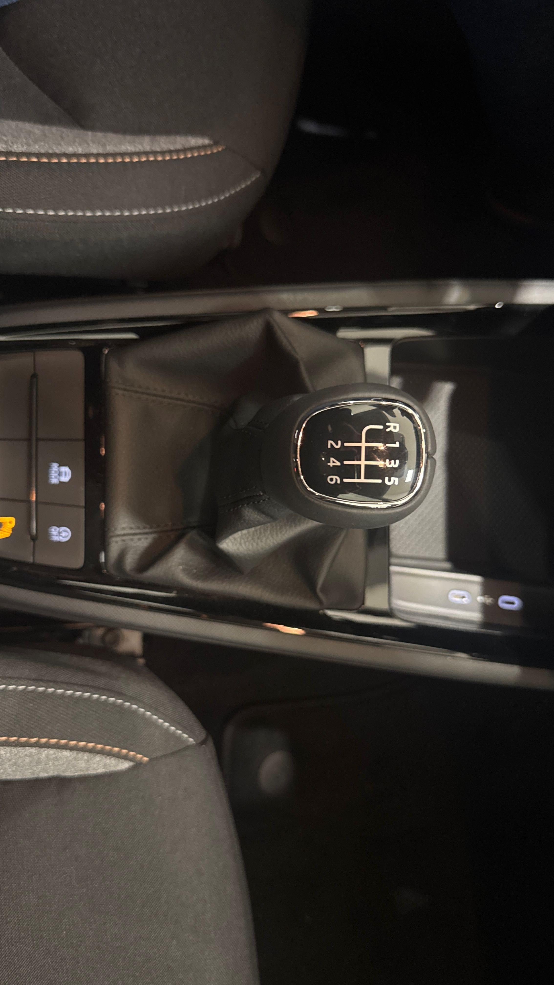 - Pommeau de levier de vitesse et poignée de frein de parking en cuir