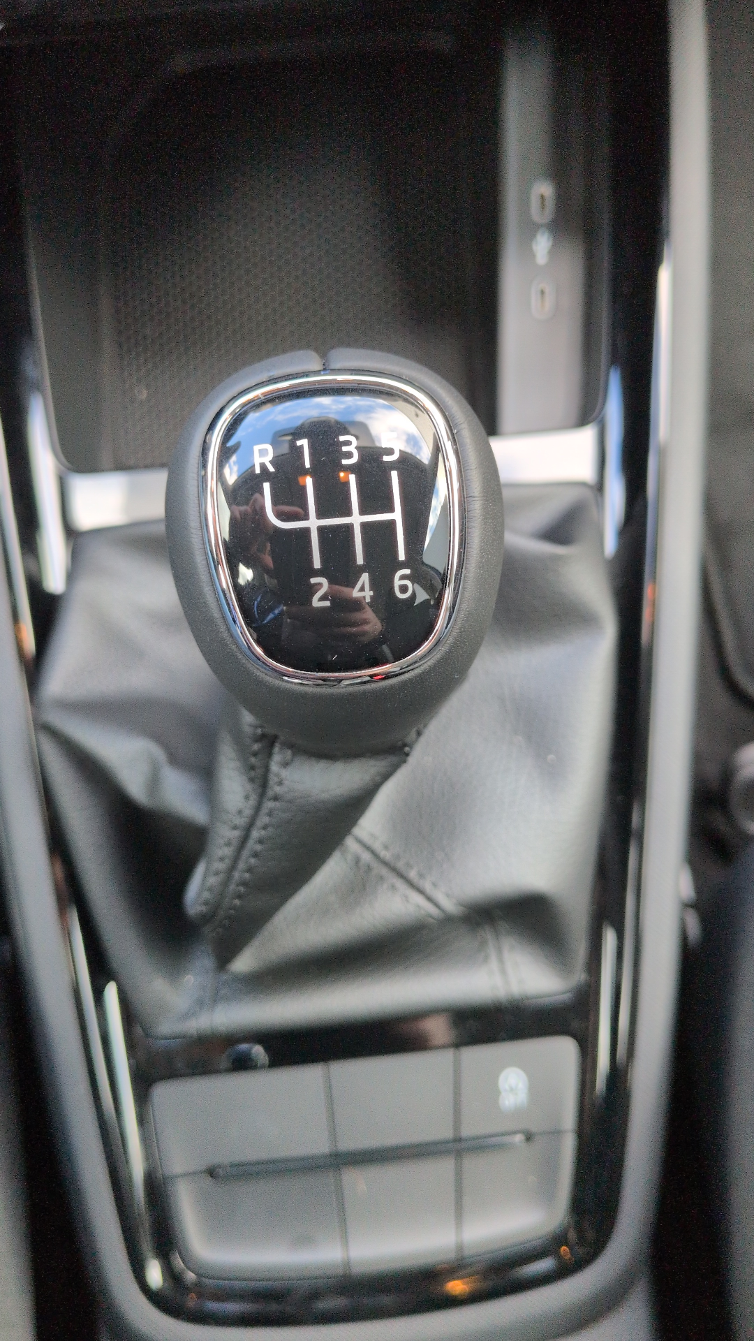 - Pommeau de levier de vitesse et poignée de frein de parking en cuir