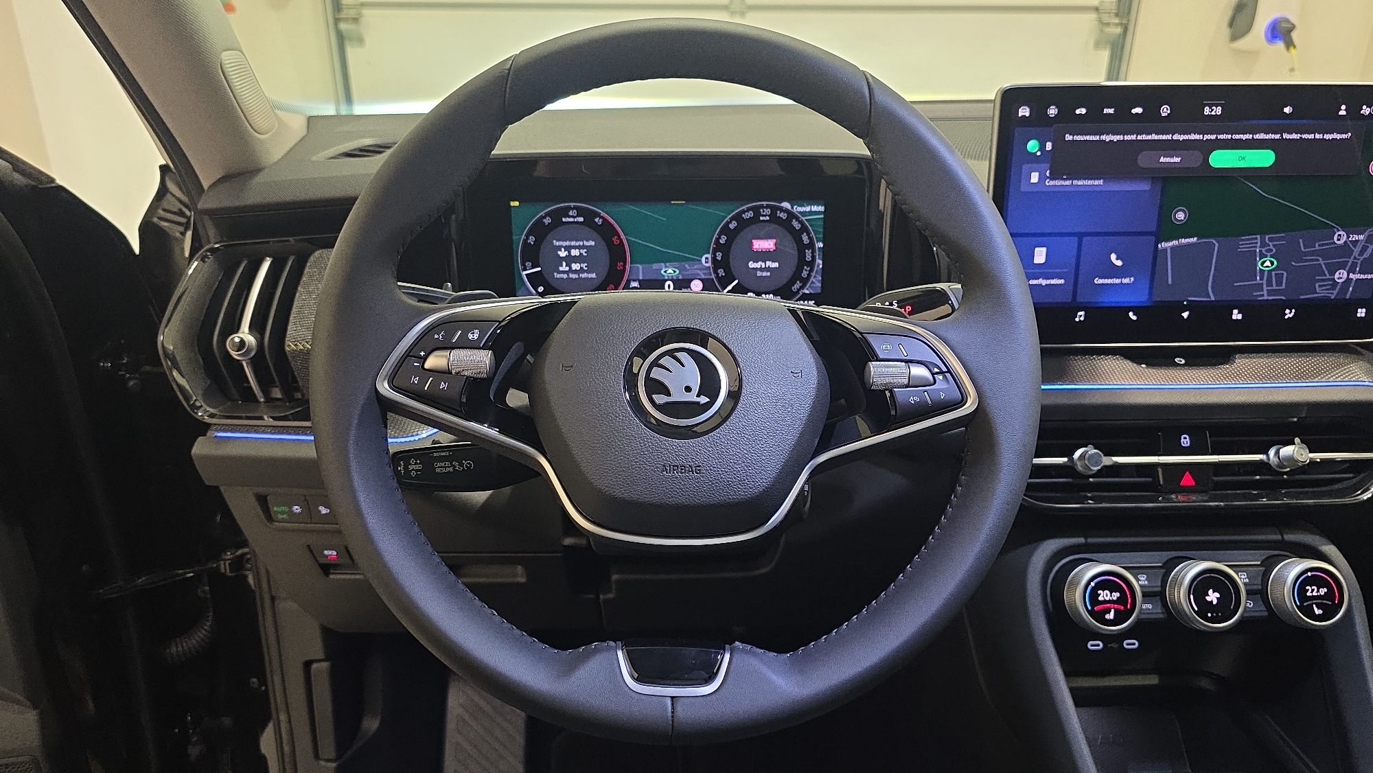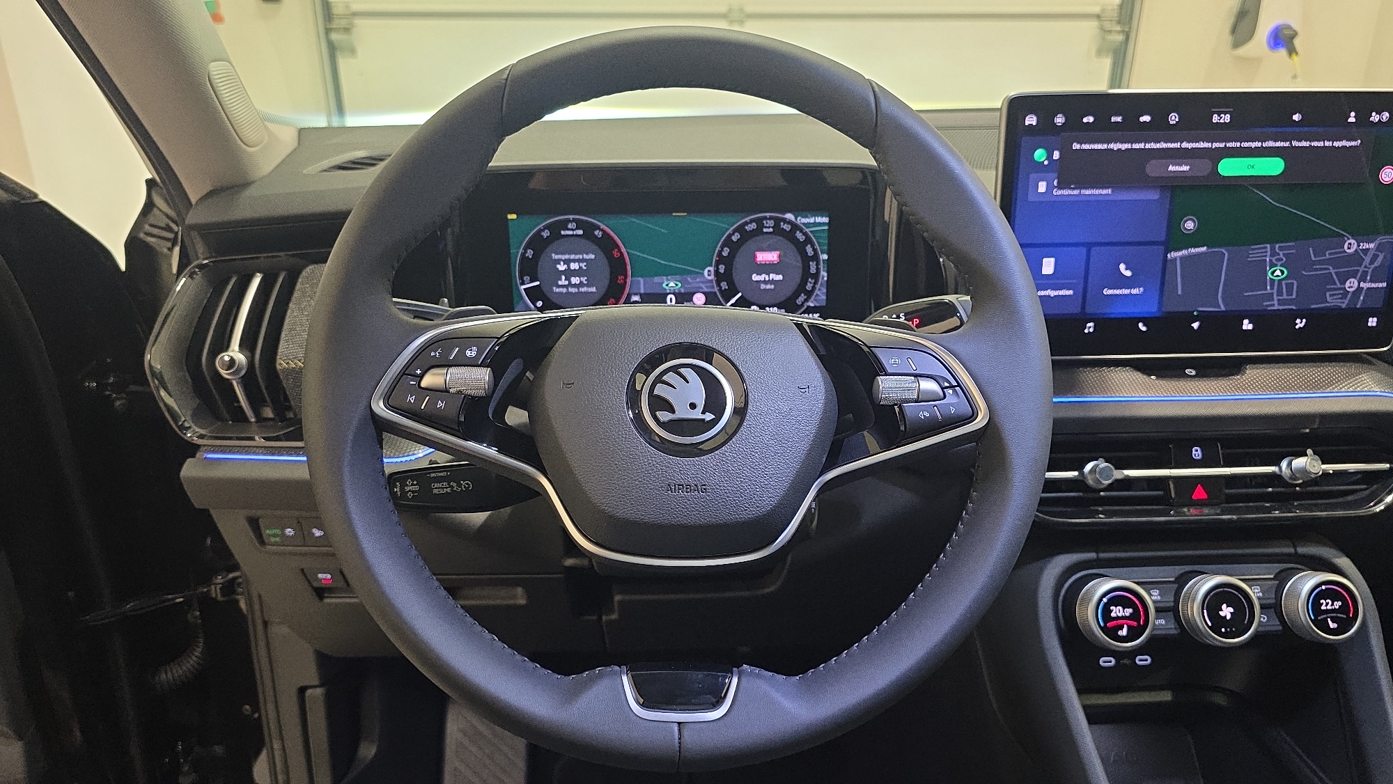 - Pack d'Ambiance Intérieur à LED incluant le logo d'accueil SKODA projeté sous les portes AV