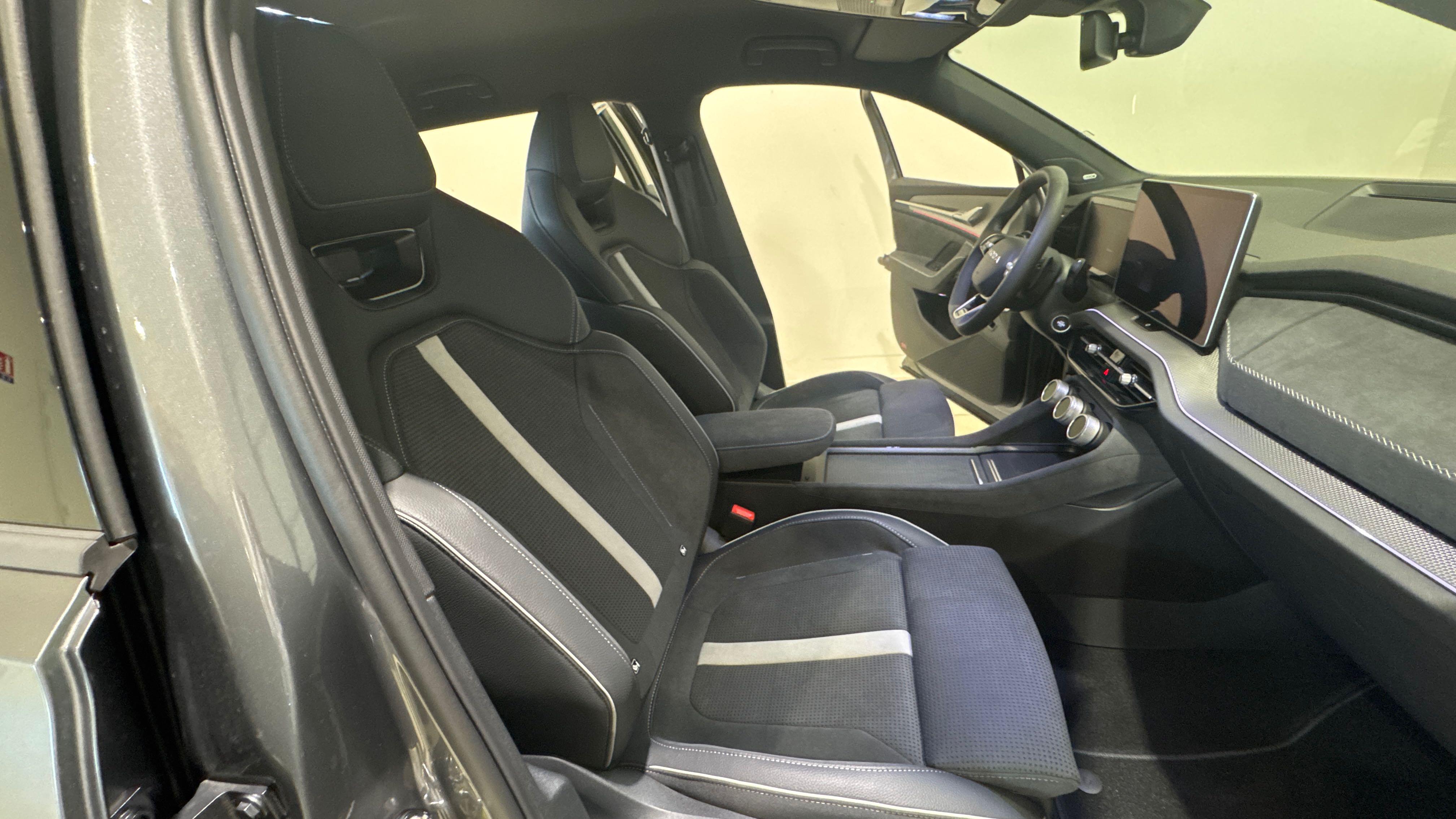 - Habillage tissu suédine noir sur planche de bord/contreportes/poignée de maintien de porte