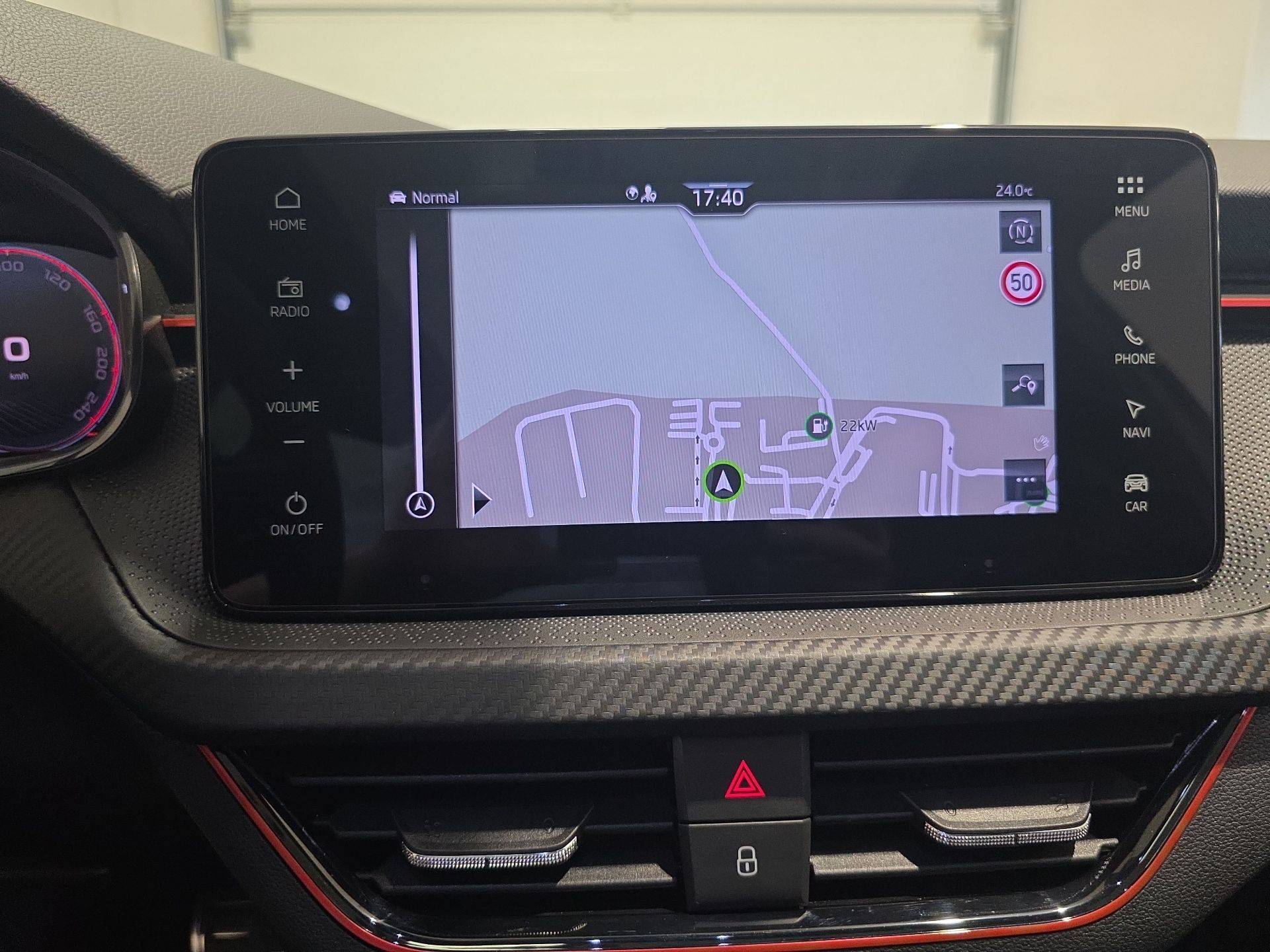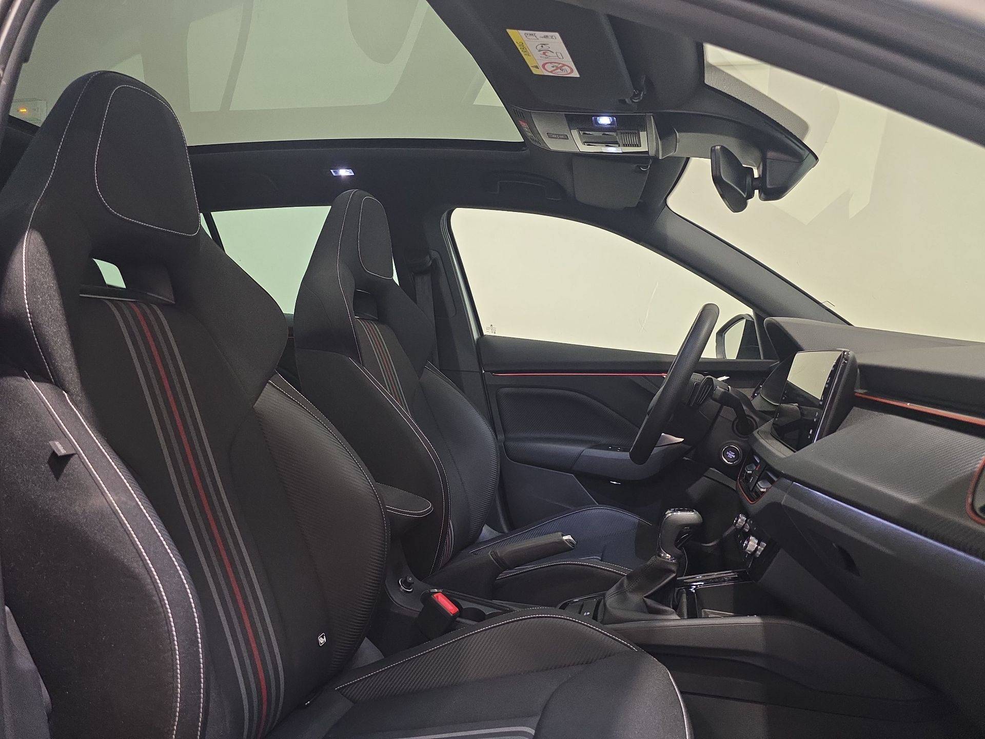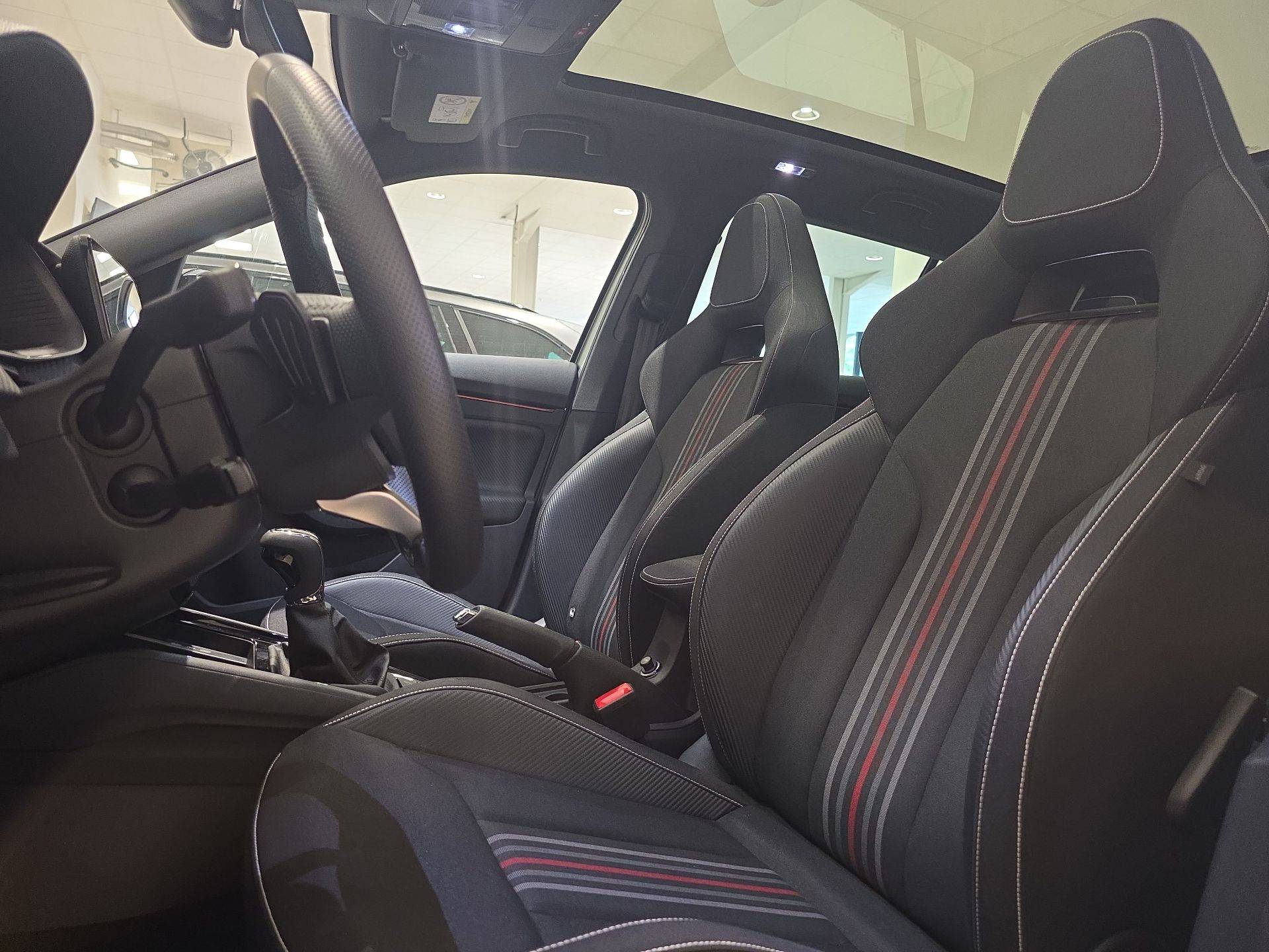 - Insert décoratif sur la planche de bord effet Carbone avec liseré rouge et inserts de porte matériau synthétique effet carbone