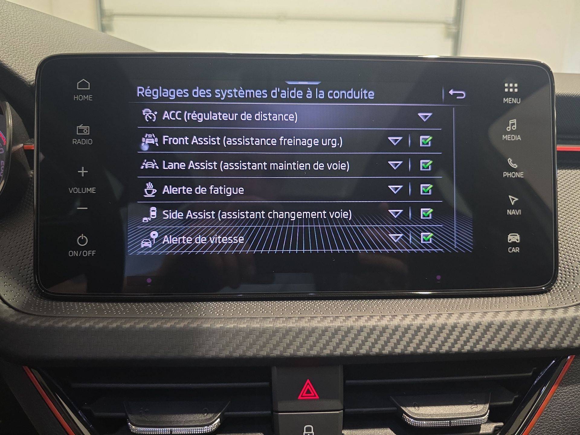 - Régulateur de vitesse adaptatif ACC (jusqu'à 210km/h) + limiteur de vitesse