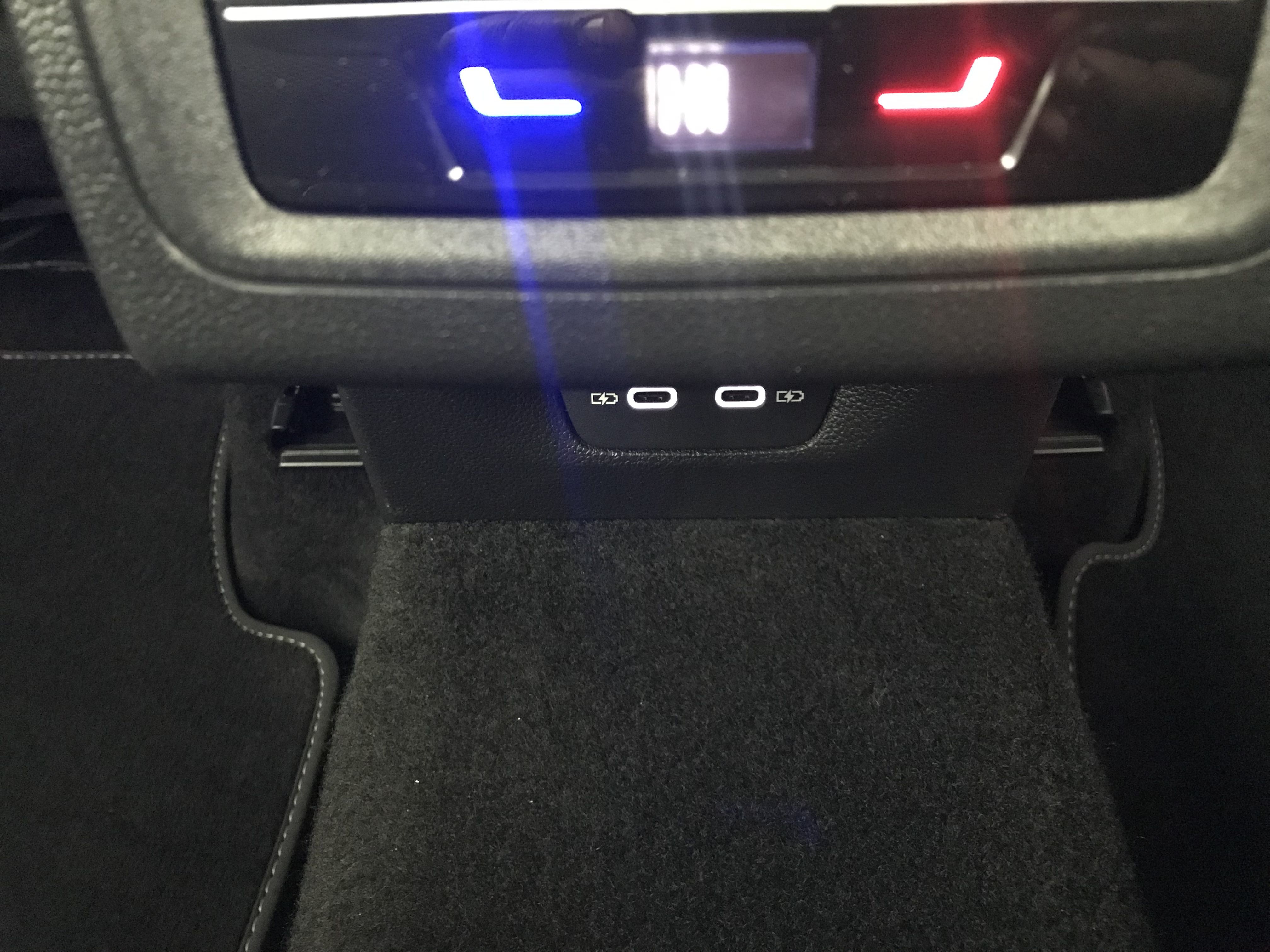 - 2 prises de chargement USB-C derrière l'accoudoir pour les passagers AR