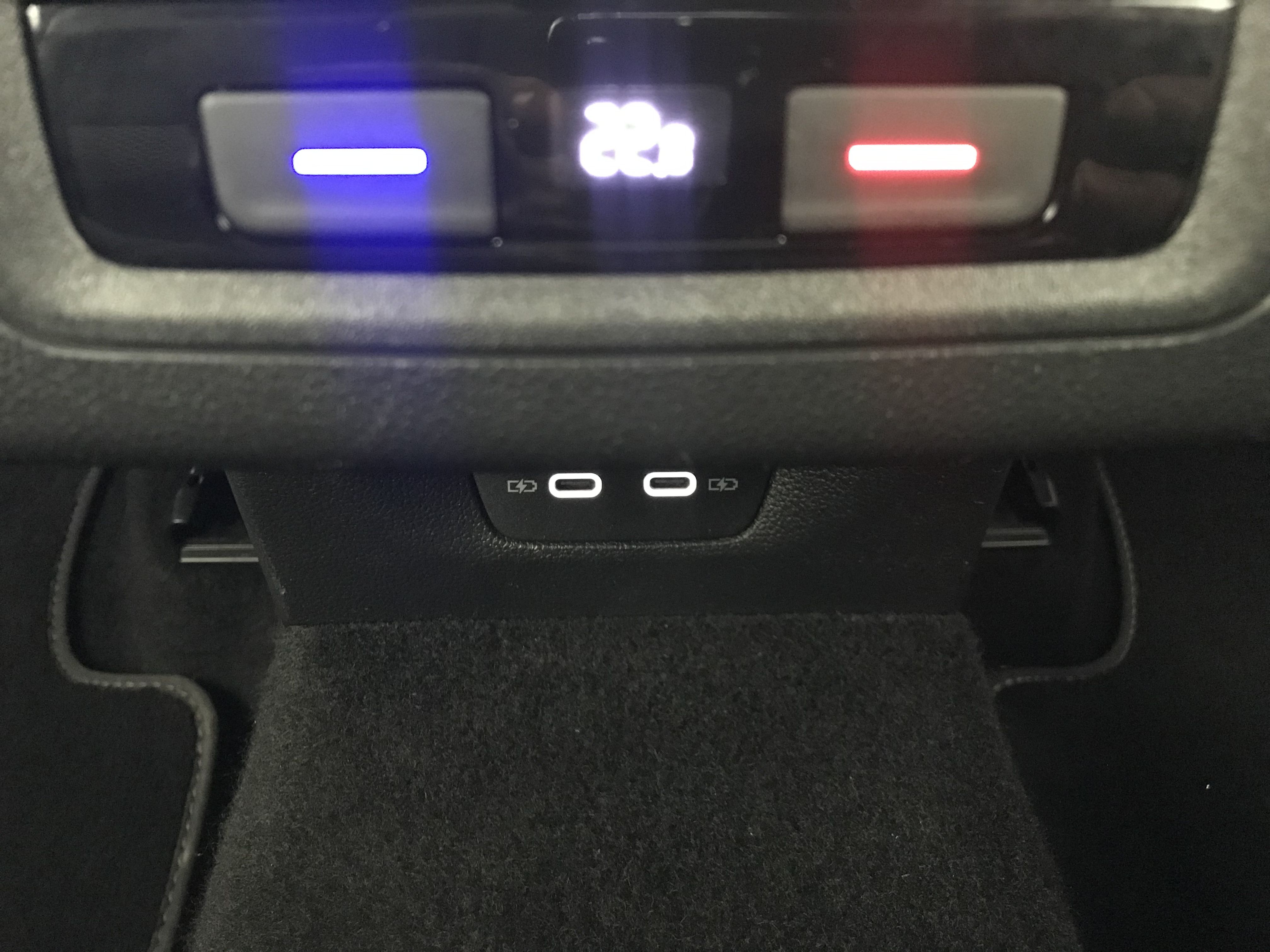 - 2 interfaces USB-C à l'AV et 2 prises de chargement USB-C derrière l'accoudoir pour les passagers AR