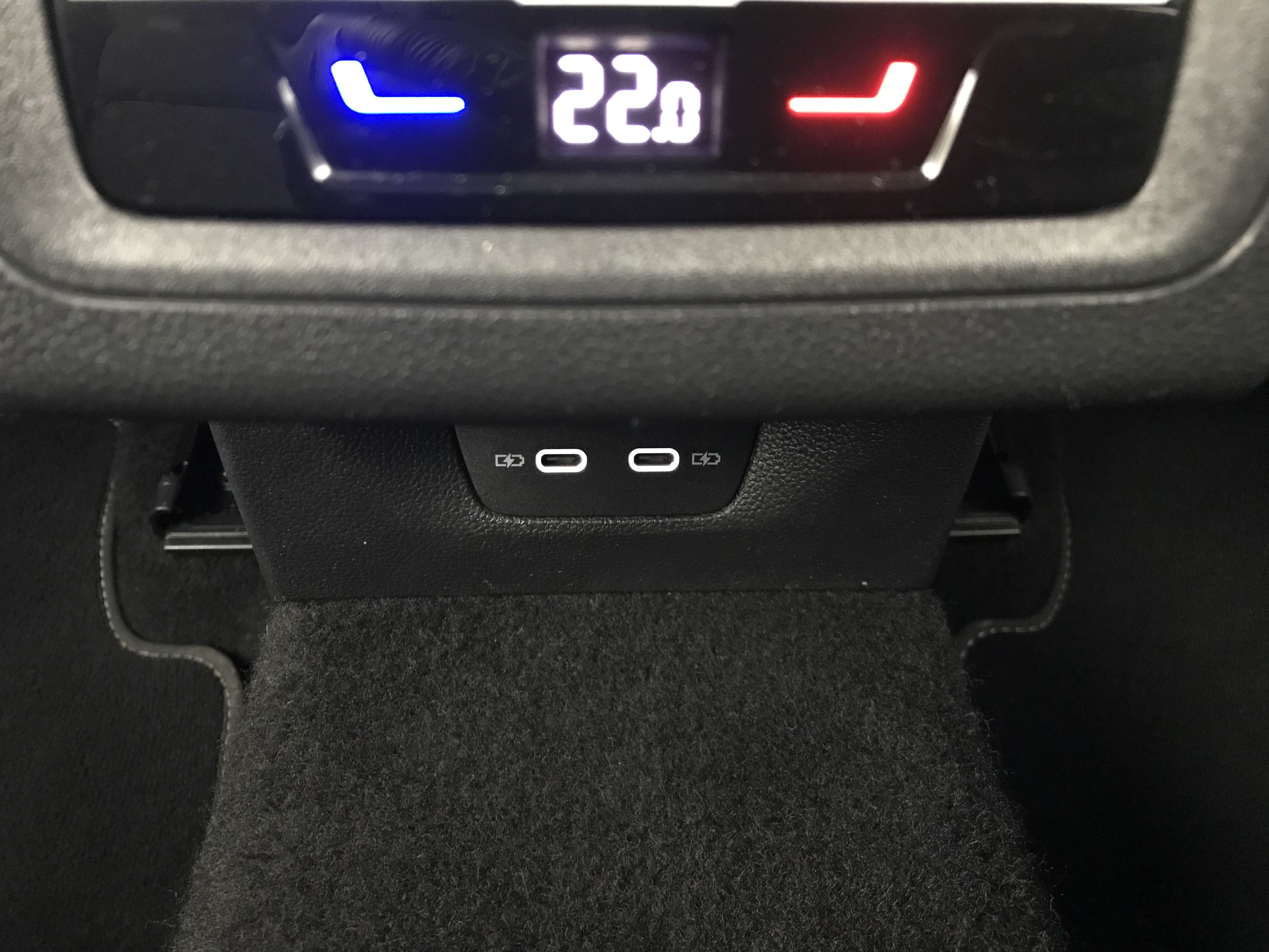 - 2 prises de chargement USB-C derrière l'accoudoir pour les passagers AR
