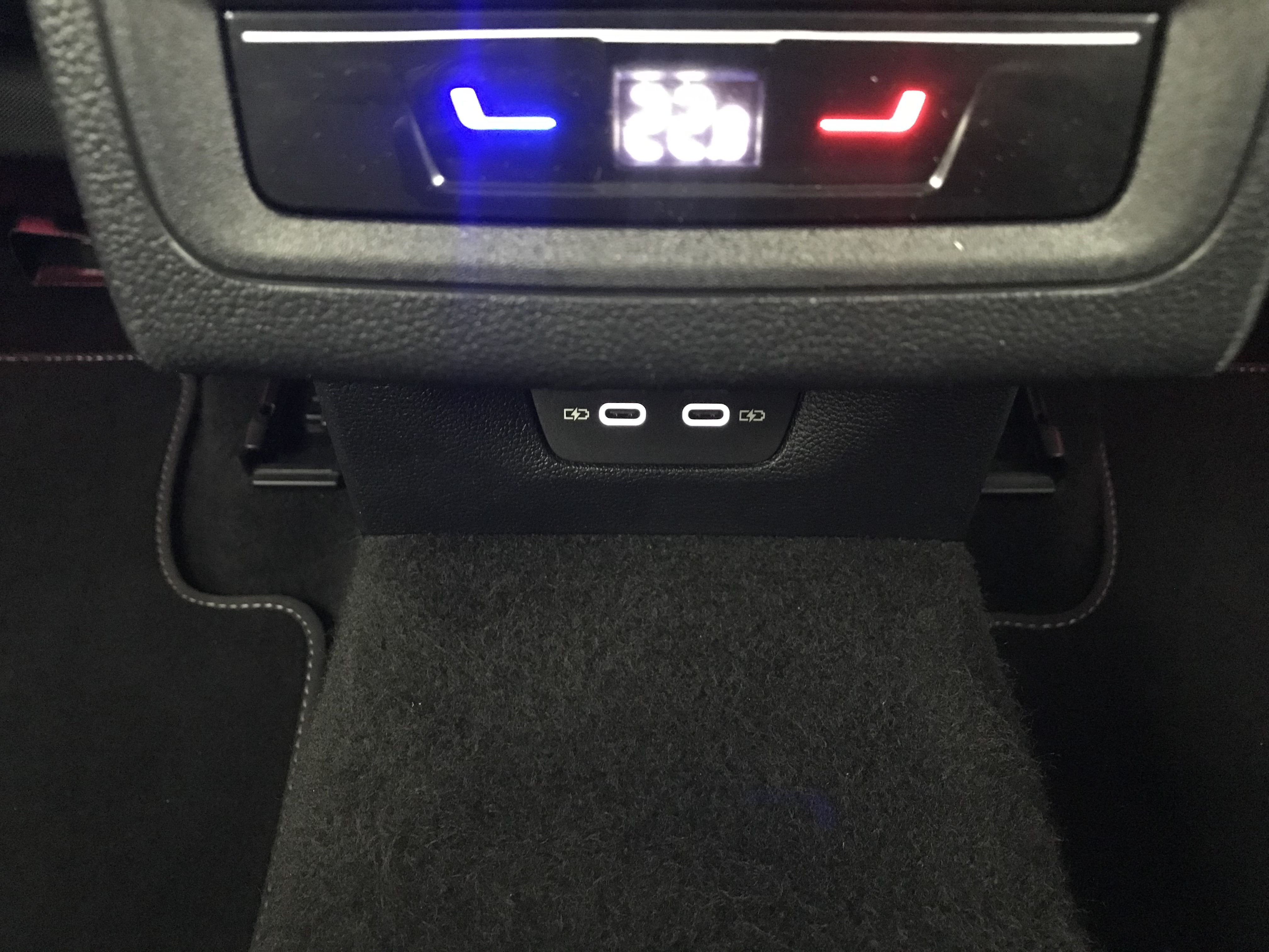 - 2 prises de chargement USB-C derrière l'accoudoir pour les passagers AR