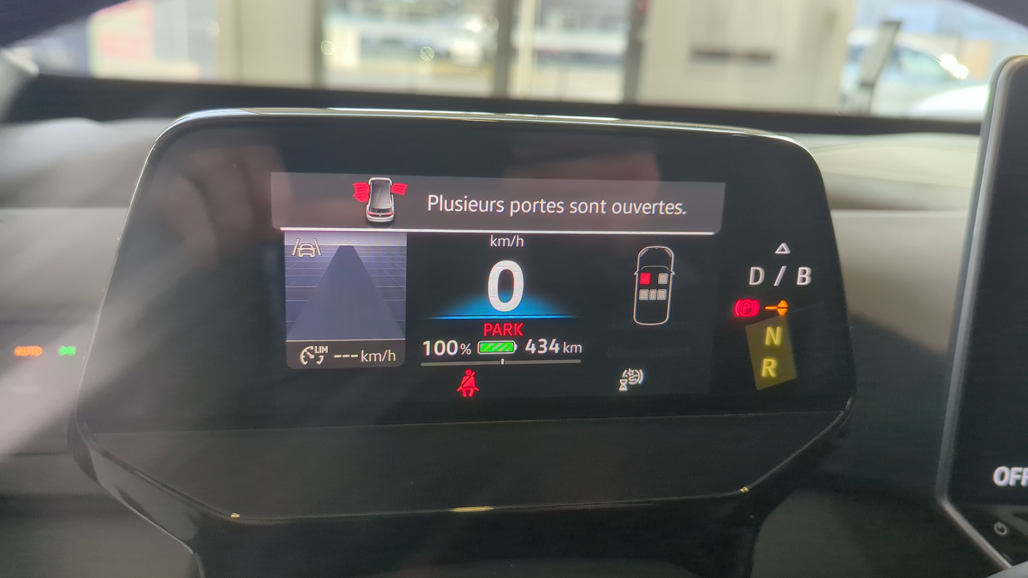 - la récupération d'énergie au freinage est en mode normal. En position (B)