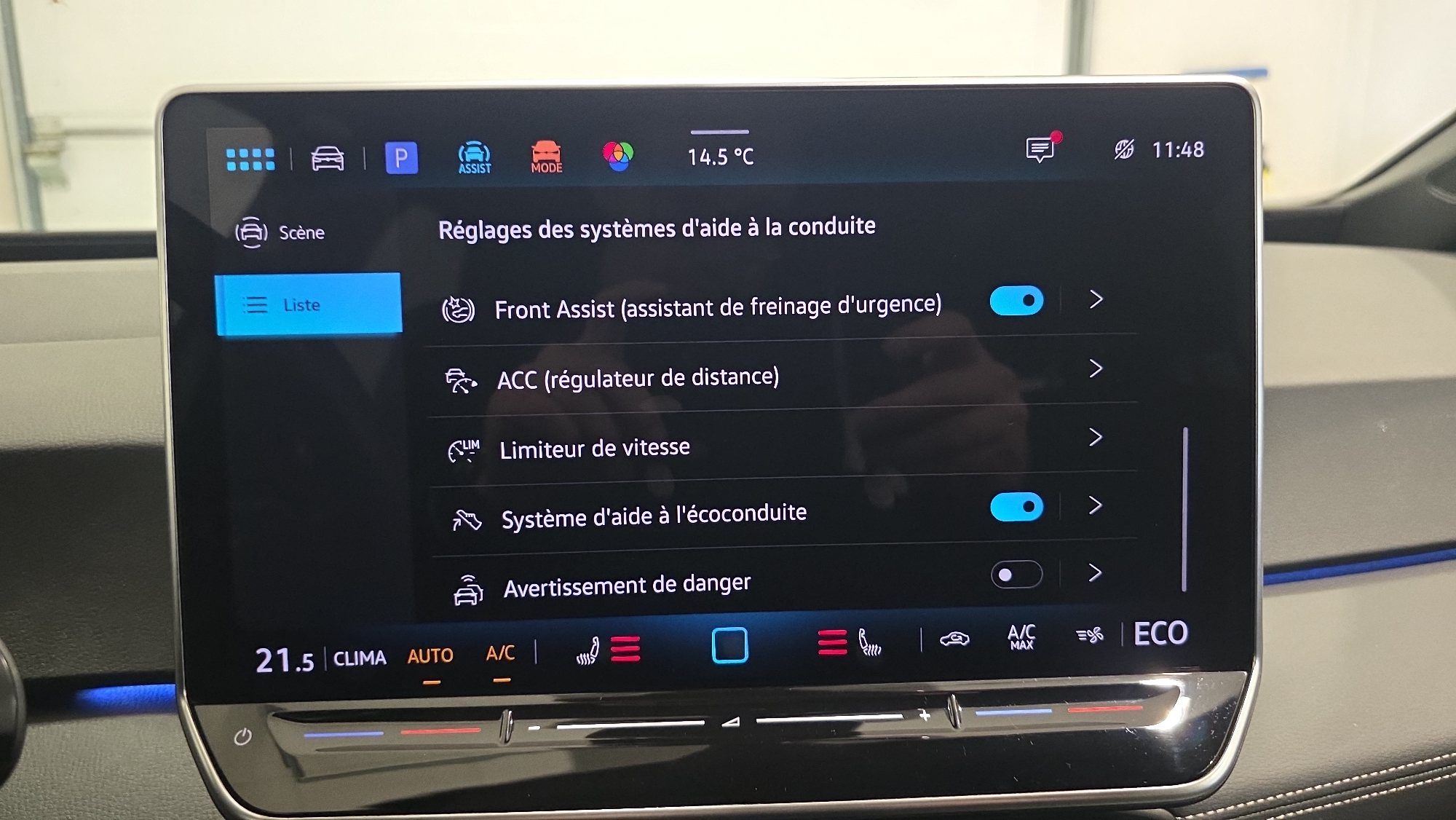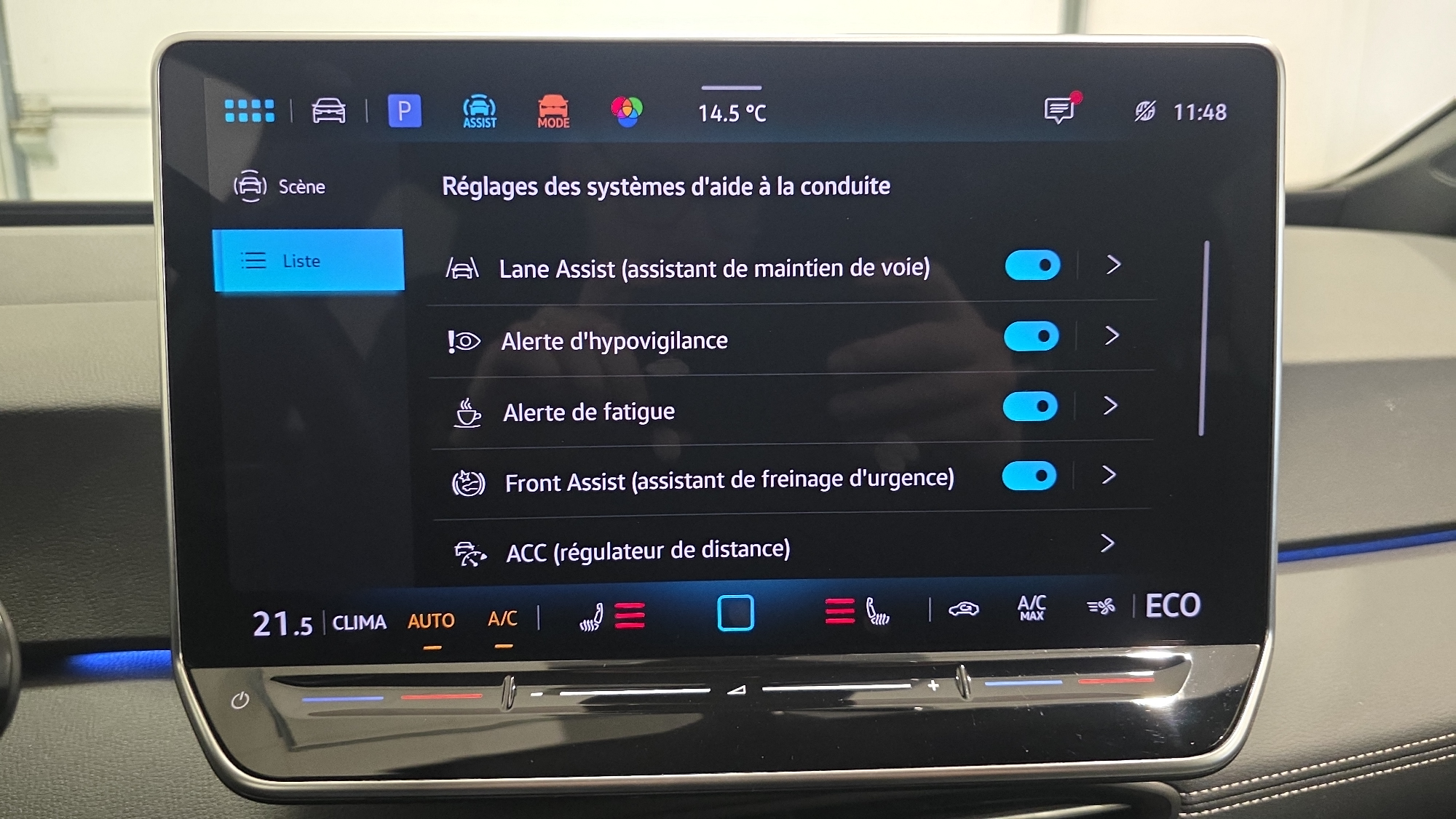 - ACC: Régulateur de vitesse adaptatif avec limiteur de vitesse adapte la vitesse en fonction des limitations de vitesse détectées