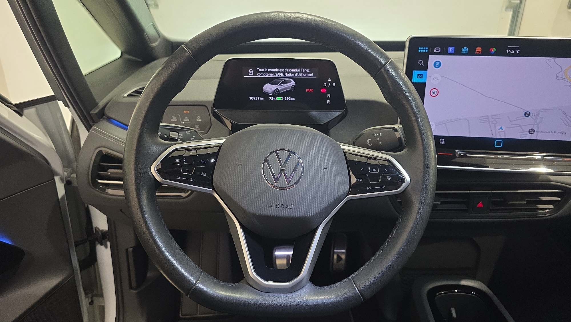 - Sélecteur de vitesse situé à droite derrière le volant avec frein de stationnement électronique Il dispose d'une marche AV (D/B)